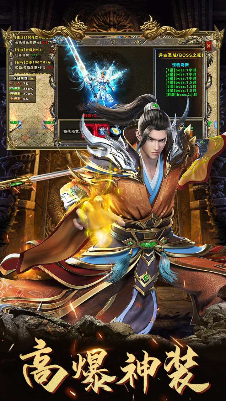 复古传奇,经典。vip也免费给,很不错,就喜欢这种攻速快的。