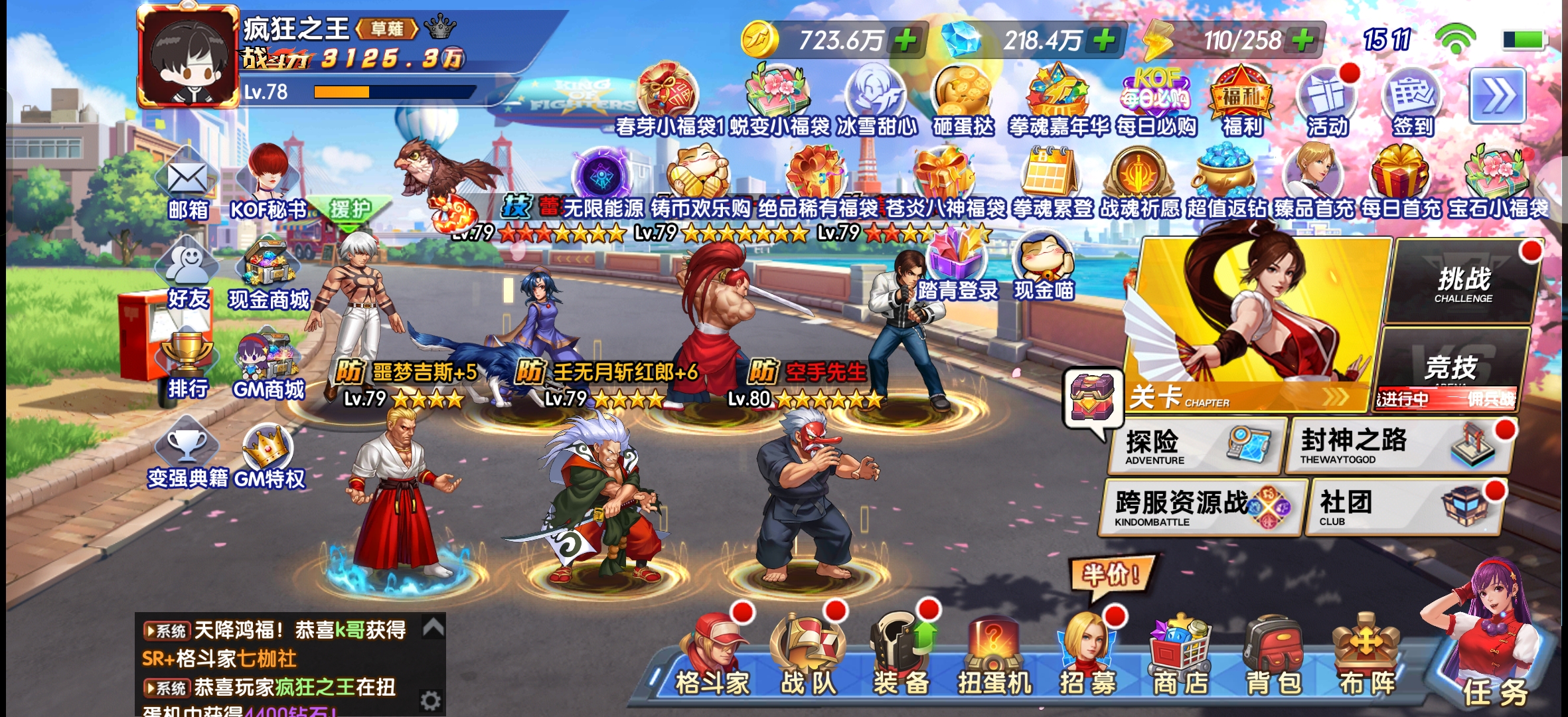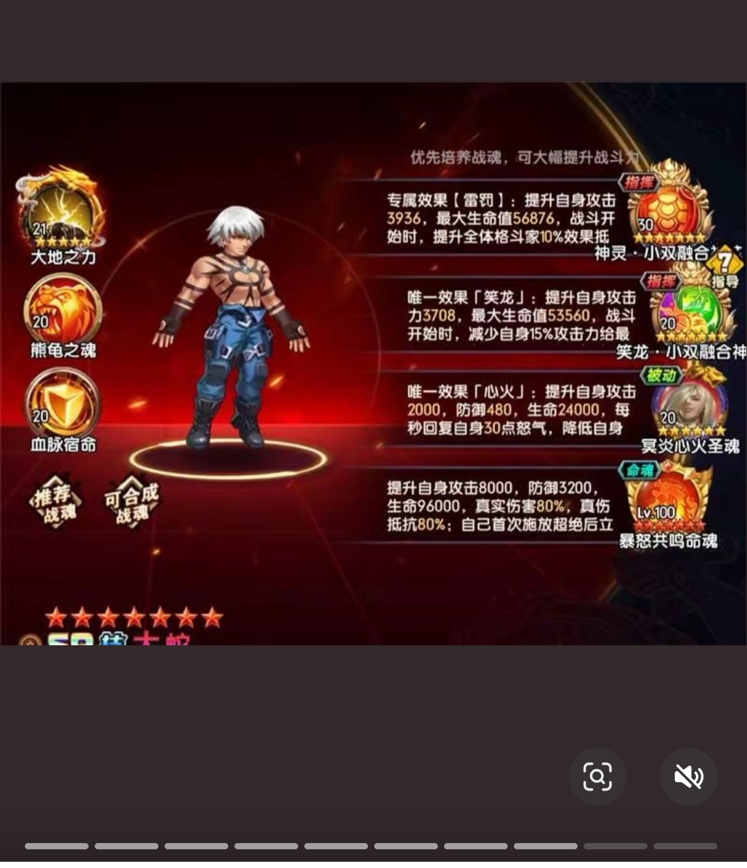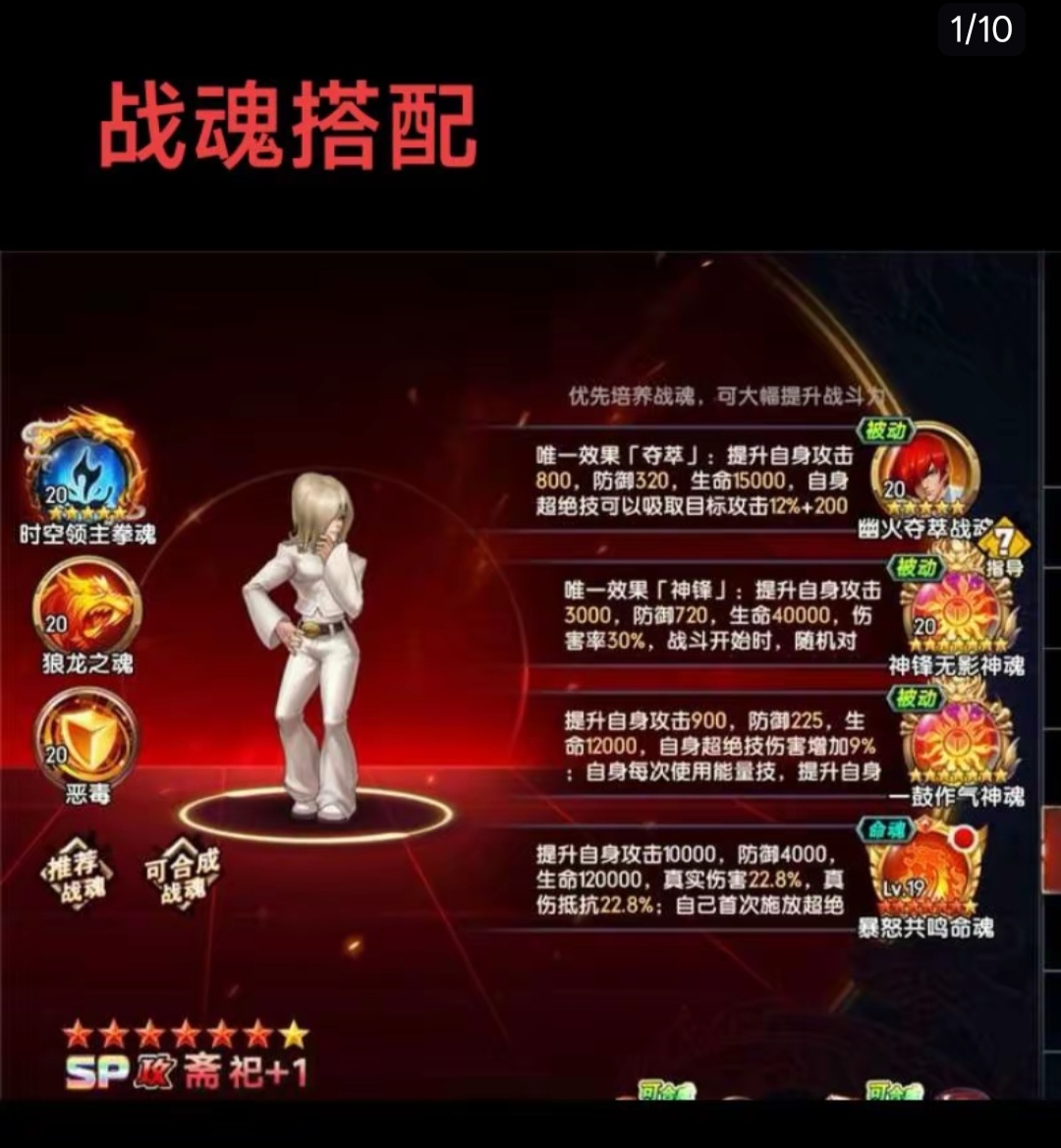 即时战斗,爽快连击,必杀技华丽且可战略打断,区别于传统卡牌回合制。 剧情背景:以三神器家族及大蛇恩怨为背景,侍魂人物穿越,拳皇大赛开启跨时空较量。 养成系统:多样养成线,丰富培养玩法,可自由组建最强战队。 系统融合:SLG玩法与卡牌结合,如抢夺资源、占领城池。