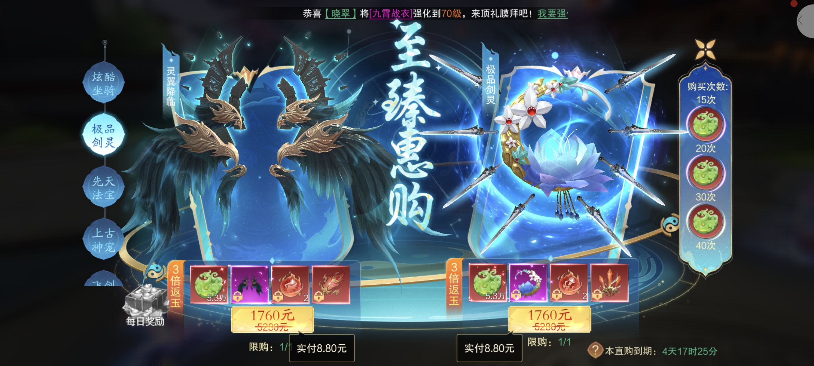 飞骑“七星龙渊”以烈焰飞剑为主体,周身环绕燃烧光刃,飞行时剑气纵横、火光炸裂,完美契合“得道万年,羽化而飞仙”的仙侠意境,颜值与气场拉满。 1级即可激活,初始属性与满级属性都堪称天花板: 初始属性:生命250000、攻击25000、防御12500、破甲12500、攻击加成2.2%,激活即战力+1,431,580。 满级属性:战力高达444,505,514,攻防破甲全面碾压常规飞骑,是后期冲榜、PK的核心战力。 外观技能:自带4个被动外观技能,战斗中触发专属剑气特效,在战场中脱颖而出。 仅通过运营活动限时投放,属于顶级绝版飞骑。烈焰飞剑+万剑归宗特效,飞行时气场全开,是身份与实力的终极象征。激活“七星龙渊”,御剑飞仙,横扫仙界,成为最耀眼的存在!