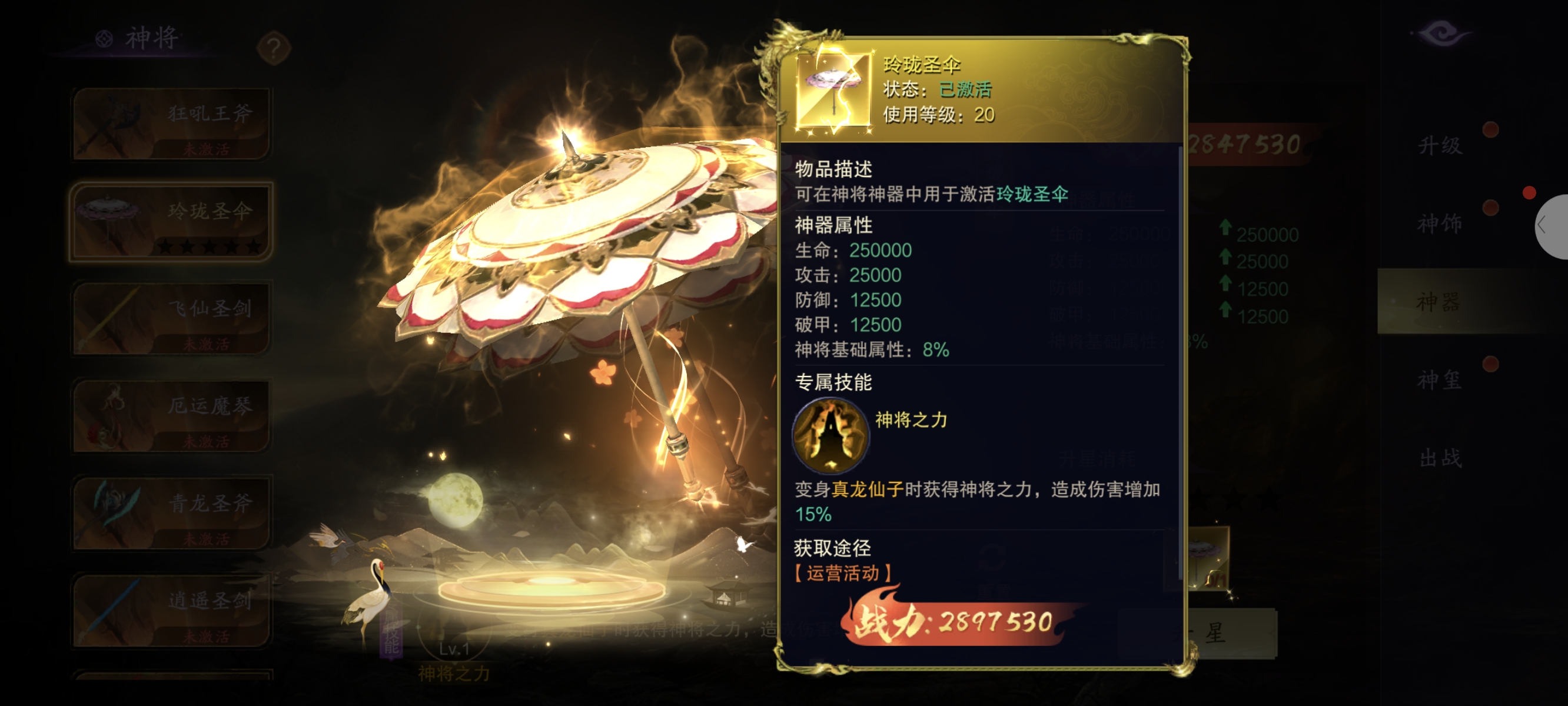 “玄天斩灵”的外观设计极具视觉冲击力,双刃镰刀造型搭配火焰特效,符合“斩灵”之名,象征其在战斗中具备高爆发与压制力。其核心属性包括攻击33750、破甲33750、暴击450000,暴击几率与暴击加成均为2%,整体偏向高输出定位。轻松提升1,775,500战力,在仙途征战中无往不利!神兵技能“精准强化”在攻击时有15%几率提升自身命中率与暴击率各6%,持续5秒,适合在PVP或高难度副本中增强输出稳定性。这一技能完美弥补了高输出职业的命中短板,让每一次攻击都更加致命,输出稳定性大幅提升。 “玄天斩灵”仅可通过当前运营活动获取,属于110级限定毕业神兵。