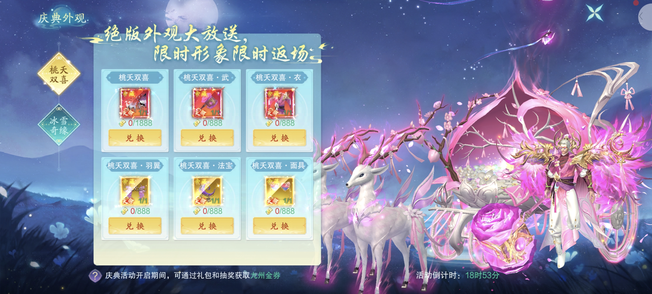 “庆典抽奖”活动以“庆典”为核心,整体采用梦幻星空与粉色樱花树的结合,营造出浪漫而神秘的氛围。左侧的樱花树与飞鸟动态效果,右侧的抽奖机与奖励展示区,视觉冲击力强,吸引注意力。抽奖机中的奖励图标清晰可见,可直观了解可能获得的道具。 活动期间,每次抽奖都可获得超值奖励,一次性抽取50次还可享受9折优惠,性价比拉满。当抽奖次数达到一定进度时,还能领取进度奖励,累计抽取200次更可必得神秘大奖,累计75000次即可锁定欧皇大奖,让每一次投入都有回报。 奖池中的珍稀道具更是令人心动:至尊·仙界论道、百炼玄机等顶级道具概率为0.1%,怒焰麒麟、展翅萌卫、魔魇光翼等稀有外观概率为0.2%,每一件都能让角色战力与颜值双双飙升。 根据自身经济实力选择抽奖次数,避免过度投入。若追求稀有道具,可考虑参与“抽200次”活动,利用保底机制确保获得神秘大奖。抽奖过程中注意进度奖励,及时领取阶段性奖励,最大化收益。