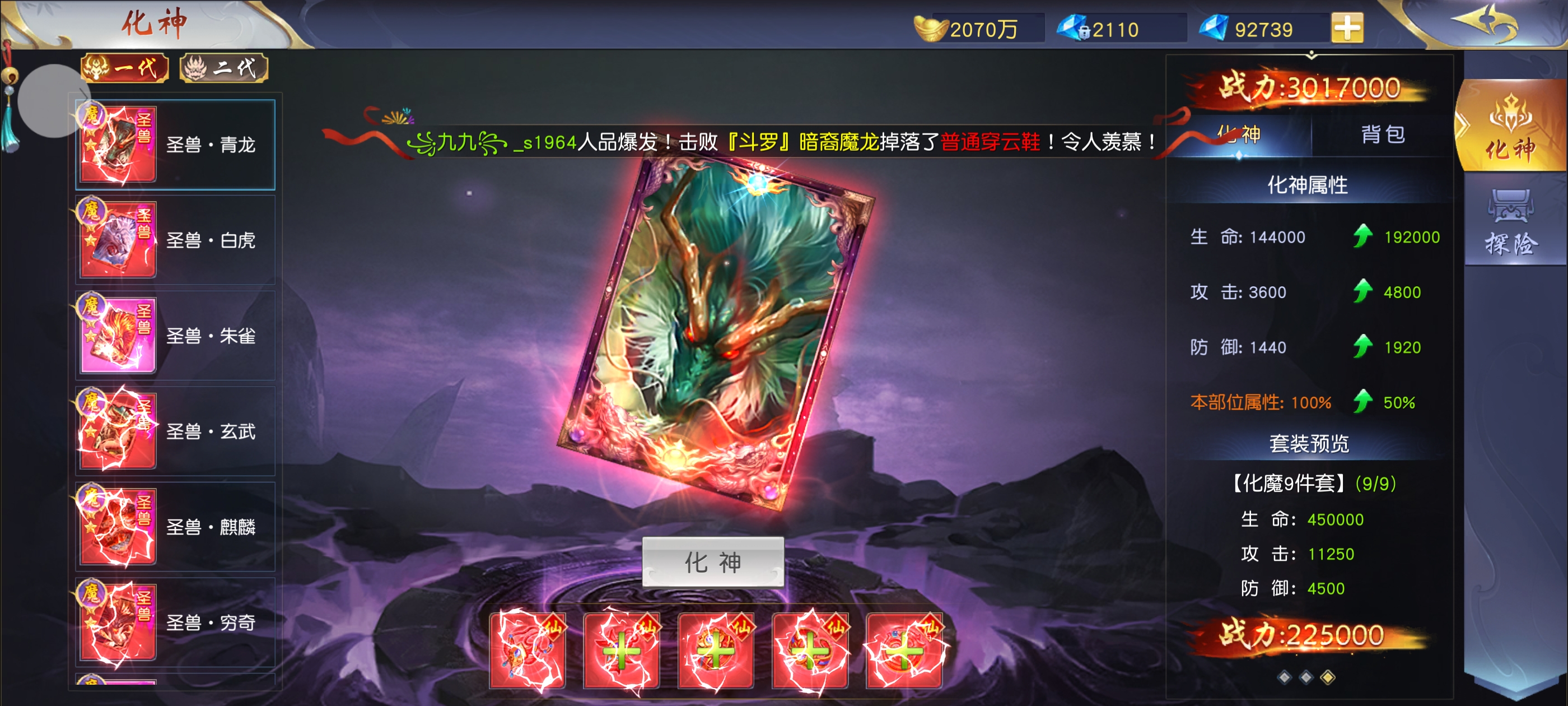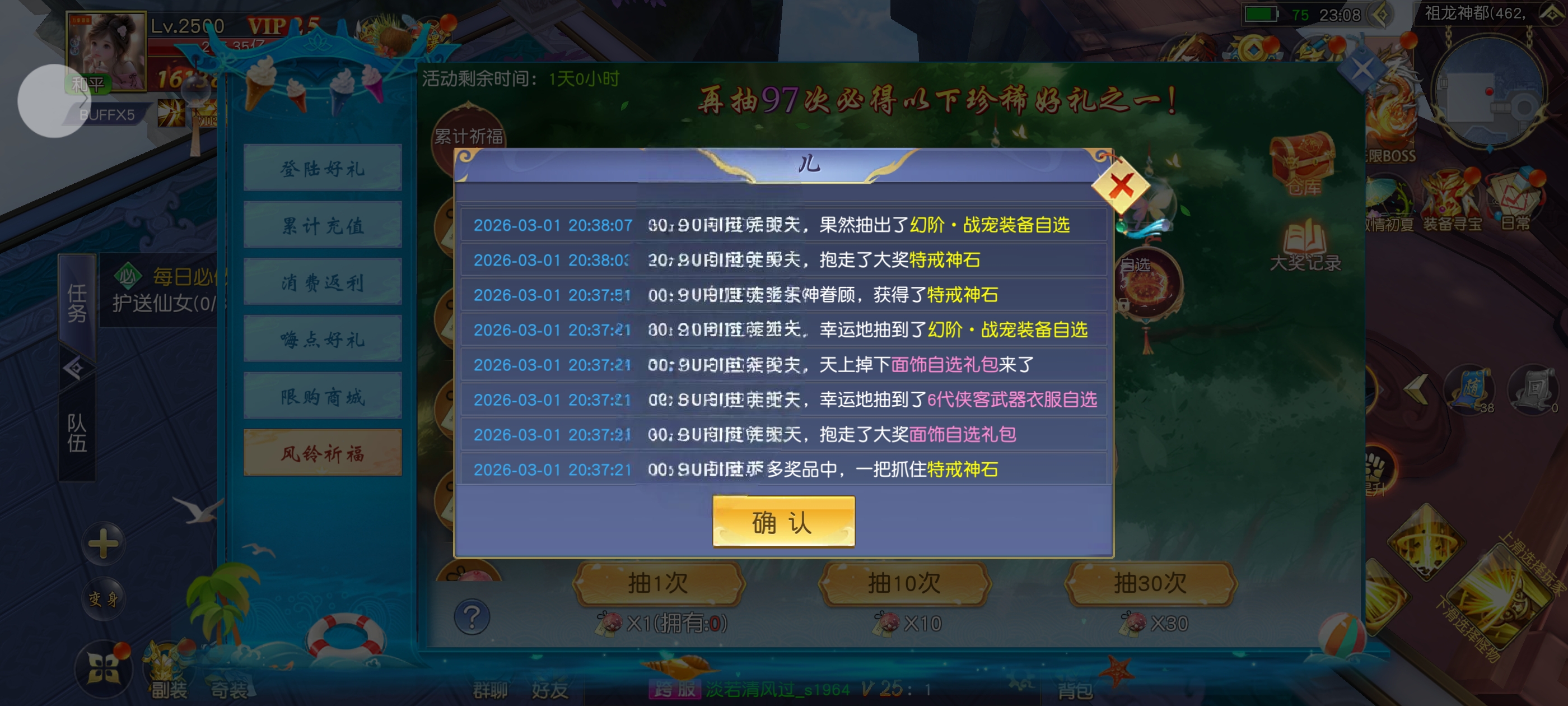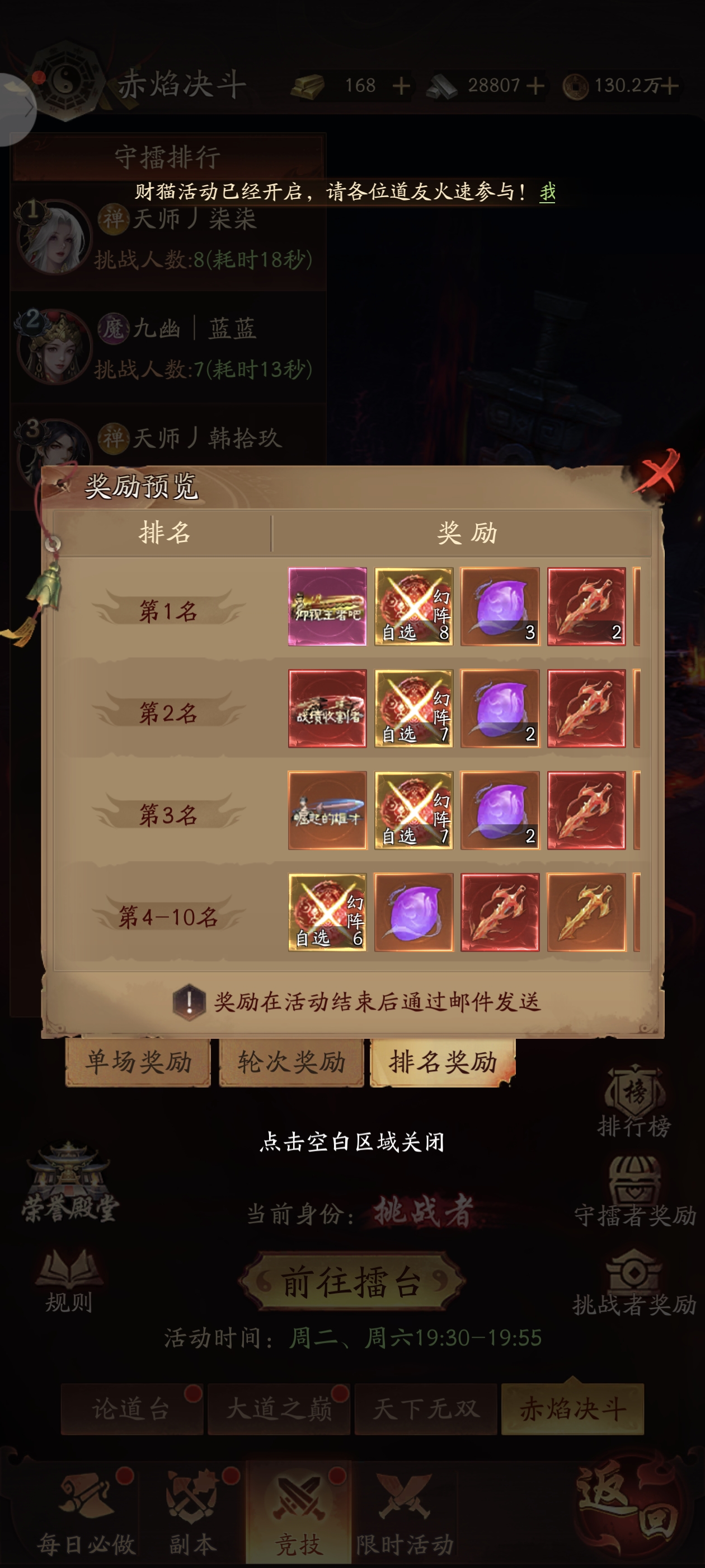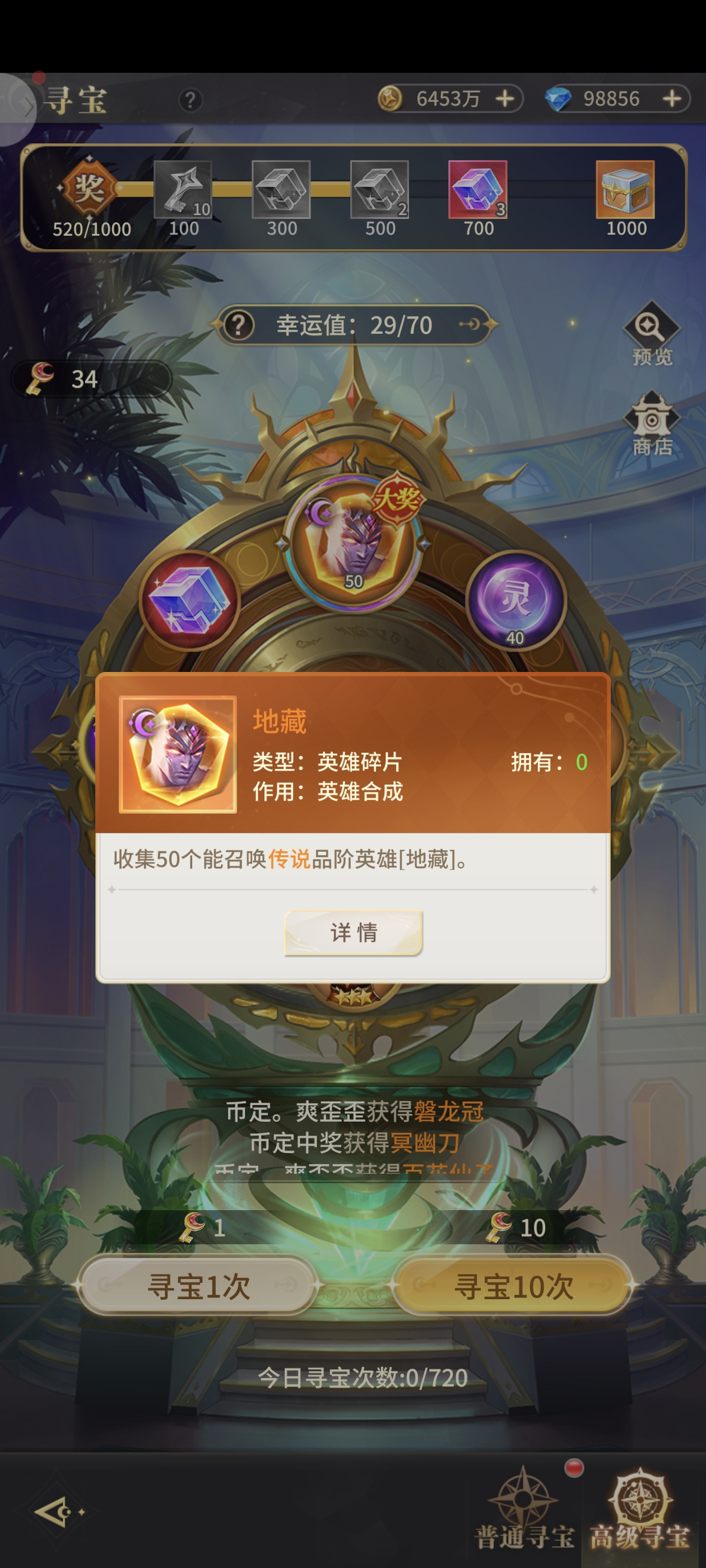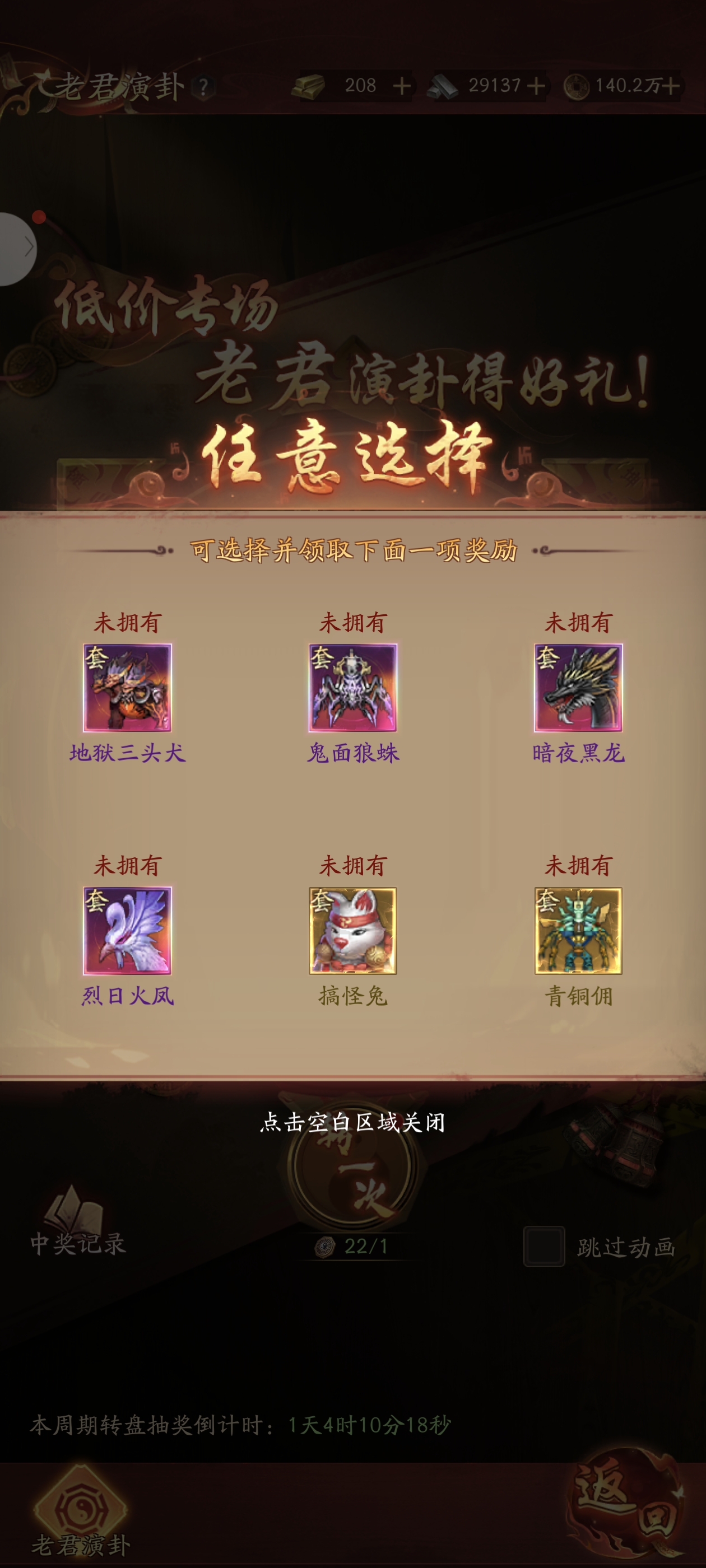 活动期间消耗古龙尊玉佩进行奖励抽取,道具由寻宝特卖获取,道具永久有效。 +奖池数量:界面奖励的数量为本轮奖池的总奖励数量,奖励采取不放回机制,每抽取1次则从奖池中减少1个奖励物品。 +奖池重置:本轮奖池内化形道具全部抽空后(不含隐藏款),奖池所有奖励会进行刷新重置,可继续进行下轮抽取。 +隐藏大奖:每抽均有概率额外获取本期隐藏极品套装奖励!隐藏极品奖励不占用道具抽数,为额外掉落! +奖励概率详见[概率公示]具体界面说明。 +寻宝特卖:每个特卖档位设有限购次数,限购次数为0该档位不可继续购买,特卖活动仅跟随降龙尊宝活动开启。