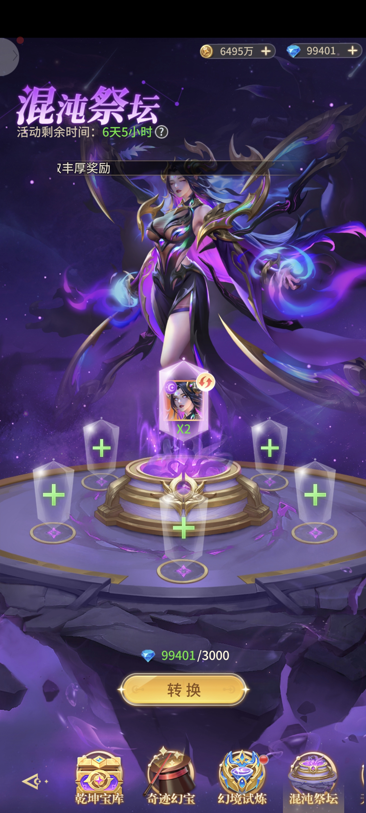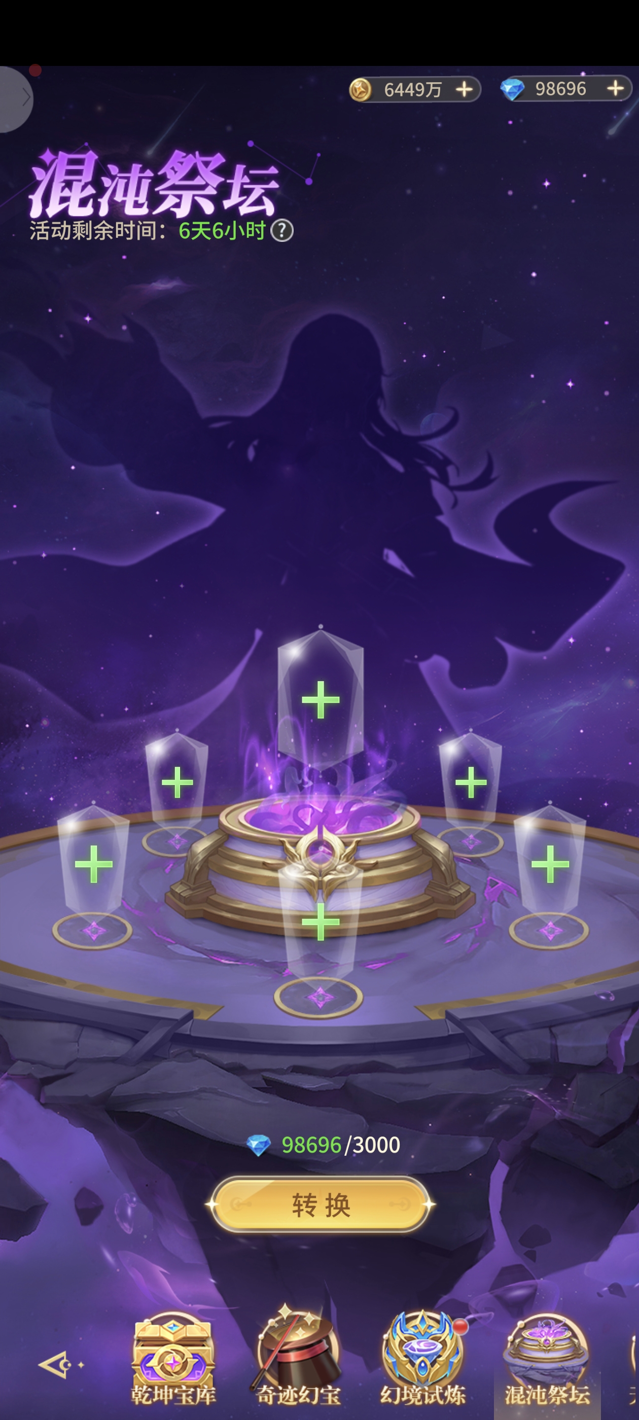 满足以下条件的英雄才能成为置换材料: +背包内该英雄的最高品质为真神且道盘等级为4级+,其余同名的传说品质英雄可参与置换 +英雄置换将返还献祭英雄穿戴的全部装备和100%返还培养消耗的金币,灵力,突破石 +每期活动内,第一次置换消耗3000钻石,第二次置换及之后的置换均需要消耗1个混沌星石。 +能够成为置换材料的英雄有:女娲,剑圣,西王母,白骨夫人,通天教主,牛魔王,铁扇公主,哪吒,羲和,后土,青蛇。白蛇,蜘蛛精,火灵圣女,玄冥,九尾狐和太岁。 +可被置换获得的英雄有:女娲,剑圣,西王母,白骨夫人,通天教主,牛魔王,铁扇公主,哪吒,羲和,后土,青蛇。白蛇,蜘蛛精,火灵圣女,玄冥,九尾狐和太岁