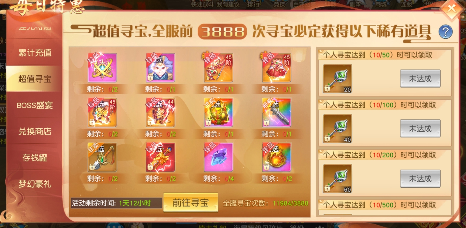 能把寻宝里面那个龙和翅膀的几率提升一下吗,后面好多活动都要氪,神装的几率也是百分之0.02,提高点几率,其他活动好多人参加的