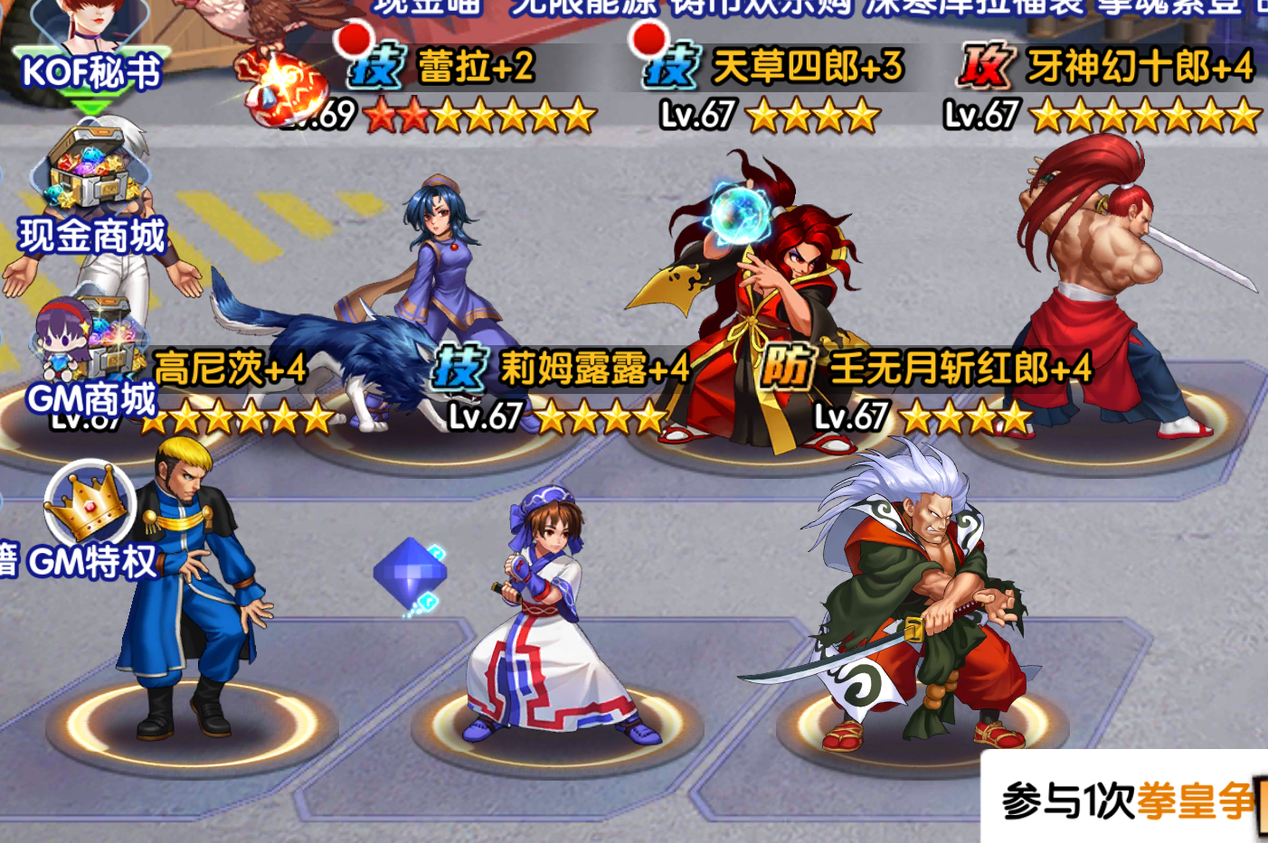 即时战斗,爽快连击,必杀技华丽且可战略打断,区别于传统卡牌回合制。 剧情背景:以三神器家族及大蛇恩怨为背景,侍魂人物穿越,拳皇大赛开启跨时空较量。 养成系统:多样养成线,丰富培养玩法,可自由组建最强战队。 系统融合:SLG玩法与卡牌结合,如抢夺资源、占领城池。
