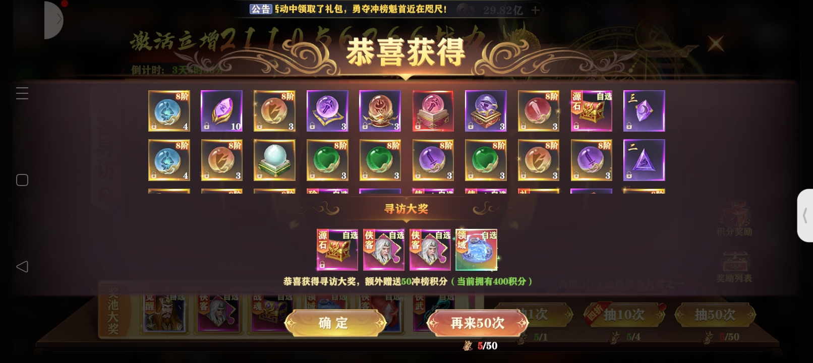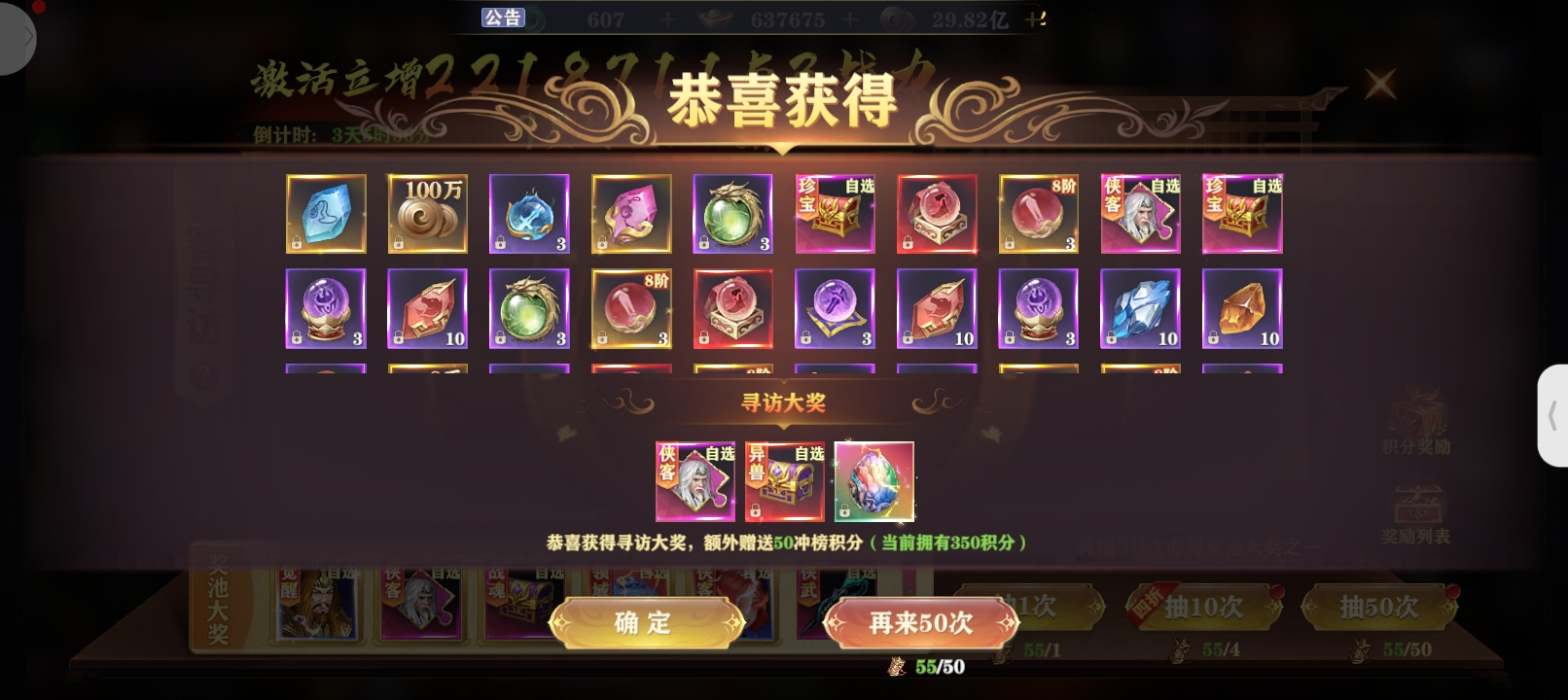 装备寻宝每次购买花费20灵玉,可获得1点寻宝积分以及道具奖励积分可在积分商城中兑换极品装备购买50次可获得更多优惠具体概率请移步概率公示中查看每天限购30000次,请适度娱乐,理性消费。