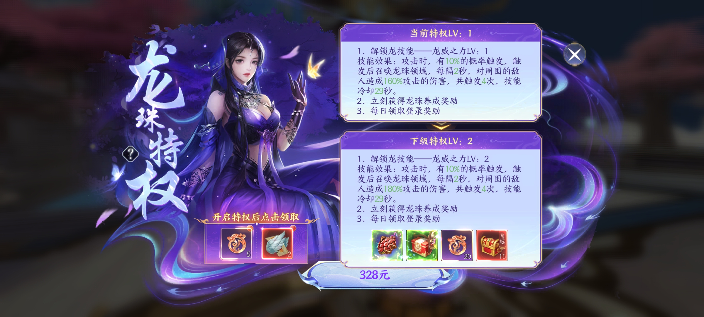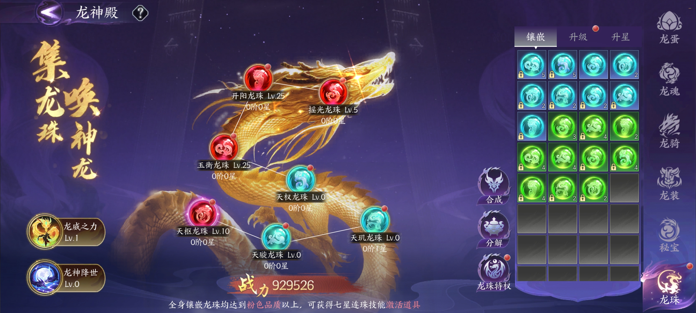 核心规则全解析 + 1. 龙珠镶嵌 -+只能镶嵌比当前部位品质更高的龙珠,龙珠不可手动卸下; -+已升星的龙珠被替换后,会全额返还所有升星消耗,零损耗养成! 2. 龙珠升星 -+升星即可获得龙神装备属性加成,星级越高,属性越强,战力持续暴涨! 3. 七星连珠,神技觉醒 -+全身镶嵌7颗粉色品质以上龙珠,即可解锁七星连珠技能,获得专属道具「神·太古龙鳞」,解锁终极战力! 4. 龙珠合成&分解 -+多余龙珠可合成更高品质,也可分解获得龙珠强化道具,资源循环利用,养成零浪费! 龙珠养成体系 + -+包含天枢、天璇、天玑、天权、玉衡、开阳、摇光七大龙珠,全方位覆盖属性加成; -+支持镶嵌、升级、升星、合成、分解全流程养成,从低阶到高阶,稳步提升,轻松毕业! ⚡+龙珠特权:解锁龙威神技,福利拿到手软 ✅+当前特权LV.1 + 1. 解锁龙技能「龙威之力LV.1」 攻击时10%概率触发,召唤龙珠领域,每隔2秒对周围敌人造成160%攻击伤害,共触发4次,技能冷却仅29秒,清场控场两不误! 2. 立刻获得龙珠养成奖励 解锁即得专属养成材料,快速提升龙珠等级! 3. 每日领取登录奖励 每日登录领福利,持续助力养成! + ✅+下级特权LV.2(升级解锁) + 1. 升级龙技能「龙威之力LV.2」 伤害直接拉满!触发后对敌人造成180%攻击伤害,输出能力大幅提升! 2. 海量养成&自选福利 解锁即得海量龙珠强化材料、自选宝箱,毕业速度直接翻倍! 3. 每日登录奖励升级 每日福利更丰厚,养成资源再也不愁!