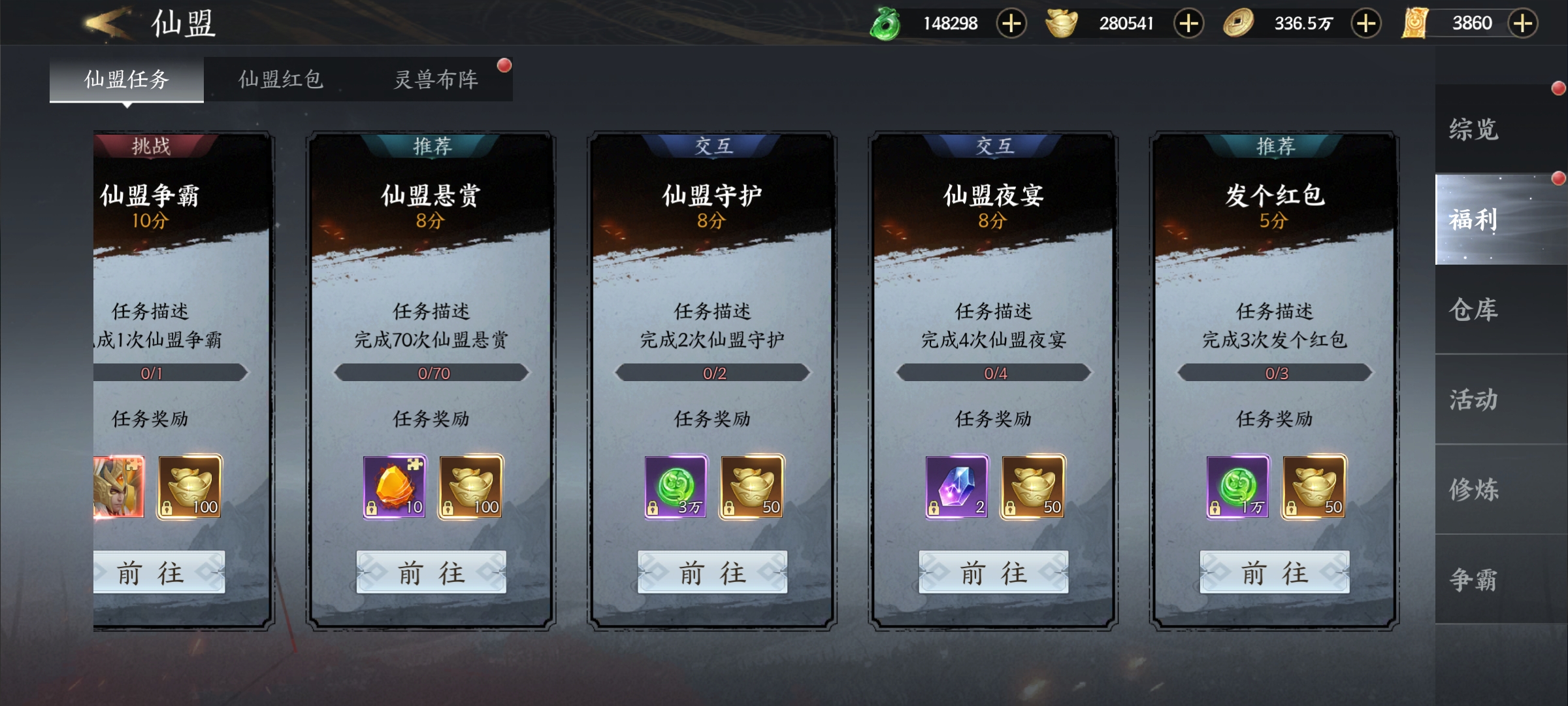 仙盟仓库互助,闲置变宝,仙盟共赢!
