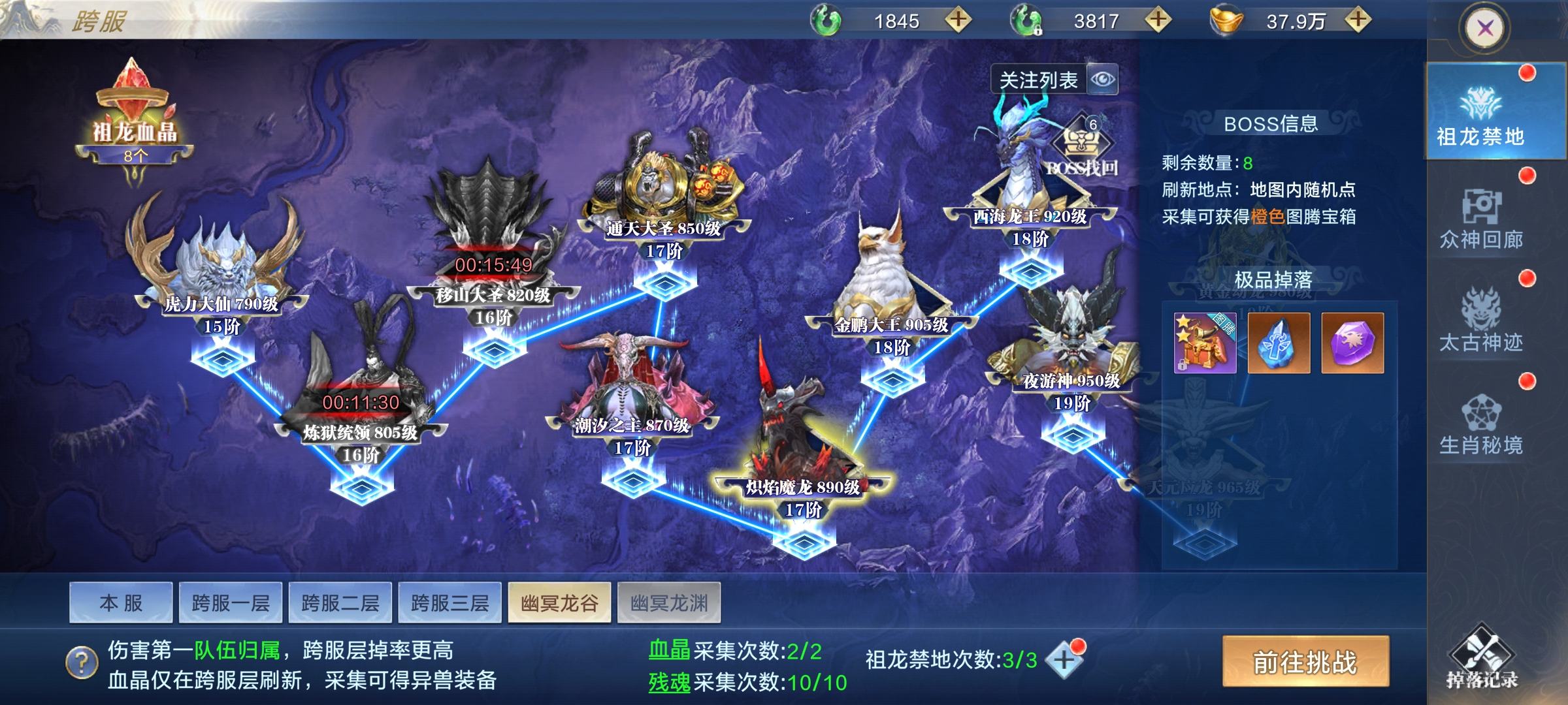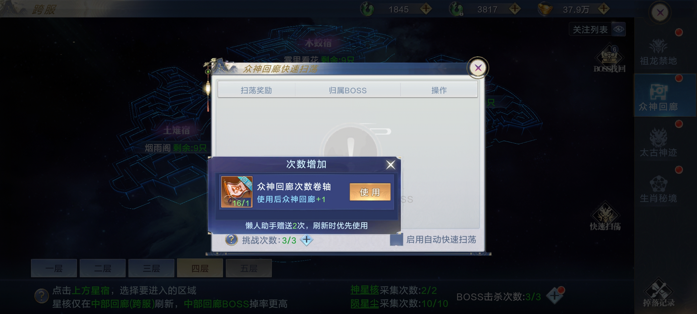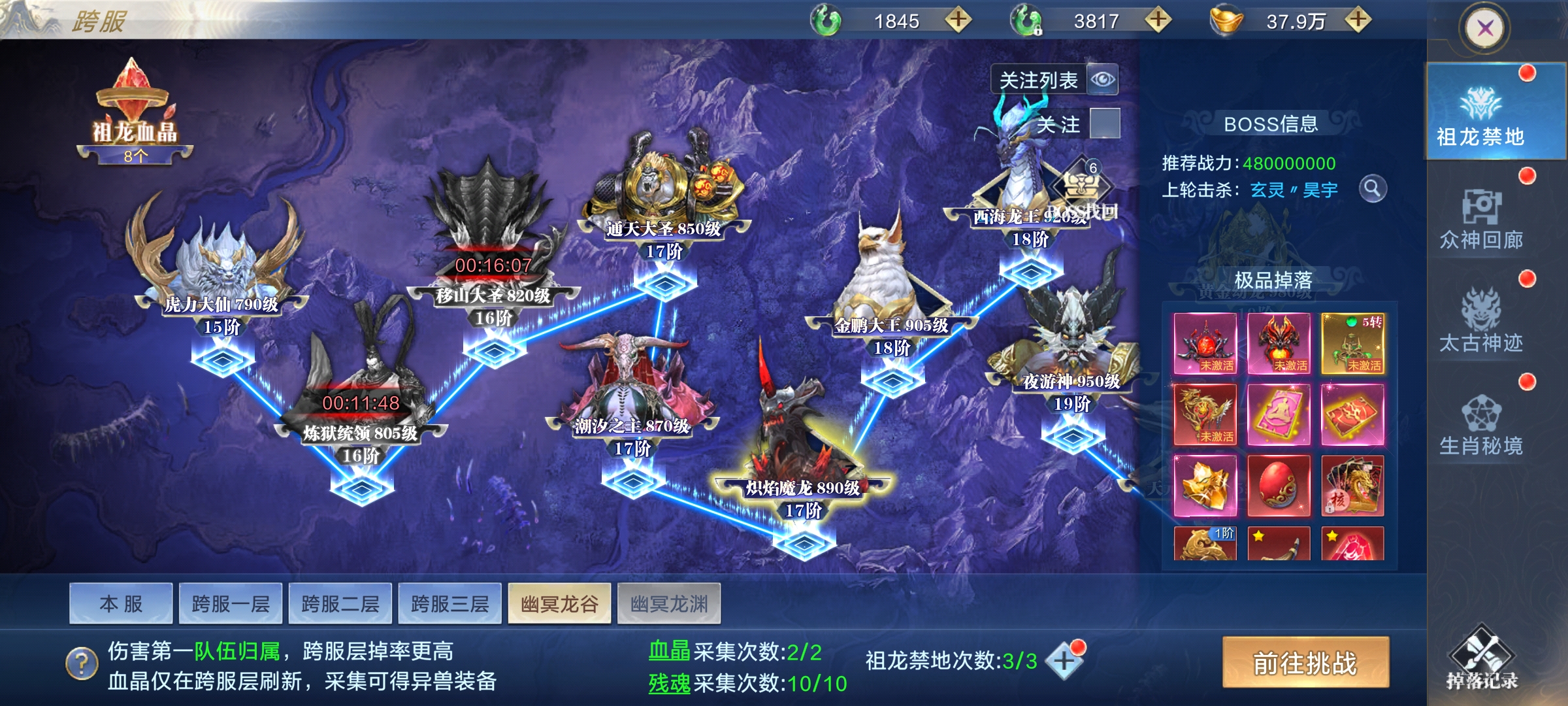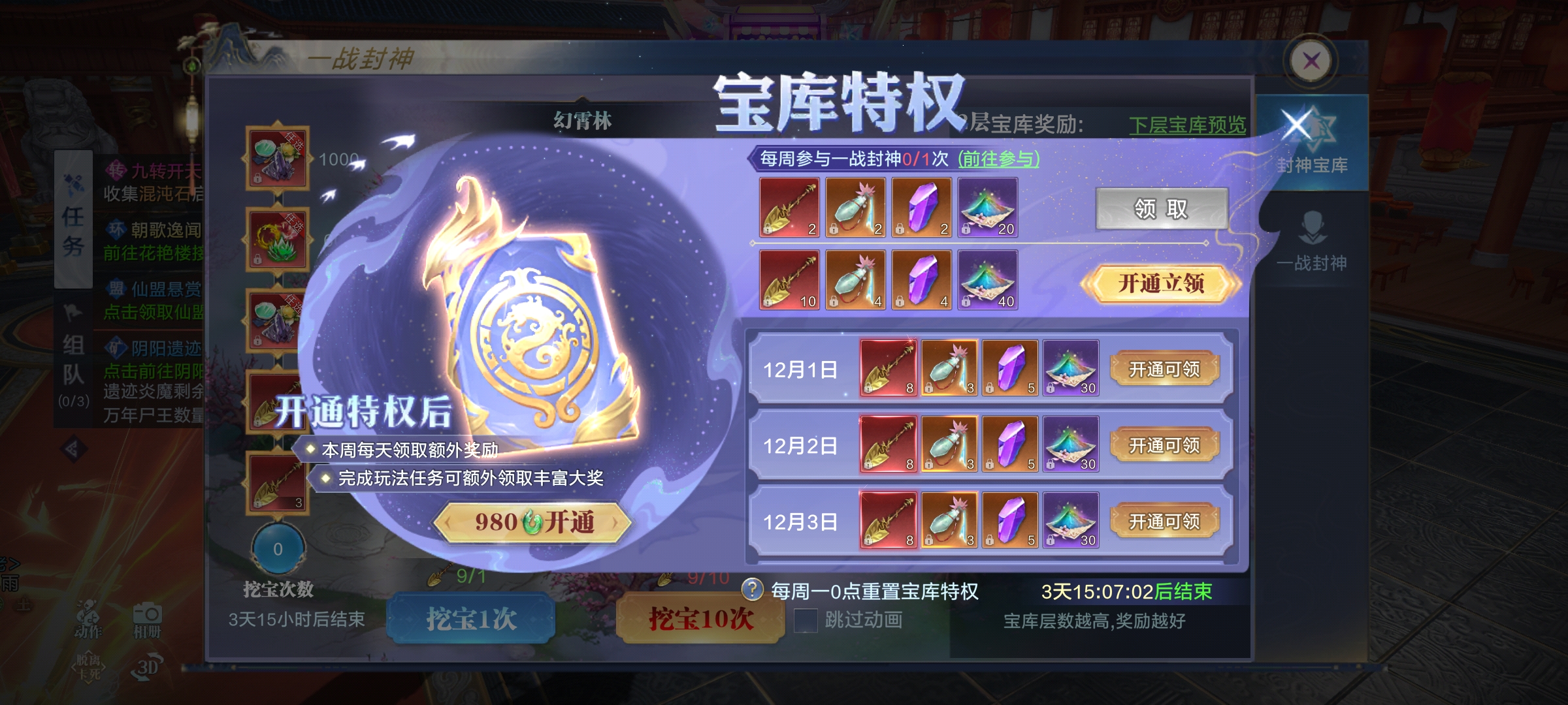 阴阳遗迹是采矿玩法,分为挖矿、掠夺、宝箱/BOSS,遗迹共5层,每层矿物需对应熟练度,靠打造阴阳装备提升;每日10-1点整点刷新矿石,默认每日可挖2次,每次60分钟,开通特权可免费雇佣“卸岭力士”,额外+1次挖矿次数且耗时更短、收益更高;矿工离线也会自动采矿,需领完当前奖励再开下一次。 可挑战其他矿工的雇主来抢夺其产物,每个矿工仅能被抢1次;被掠夺后可自行或请求仙盟成员挑战掠夺者追回奖励,矿工采矿时有概率刷出宝箱,每日可开3次,需自行寻找;采矿结束后可能刷出BOSS,击杀得珍稀材料,每日限10次,建议组队参与,最后一击队伍获得掉落归属。 +