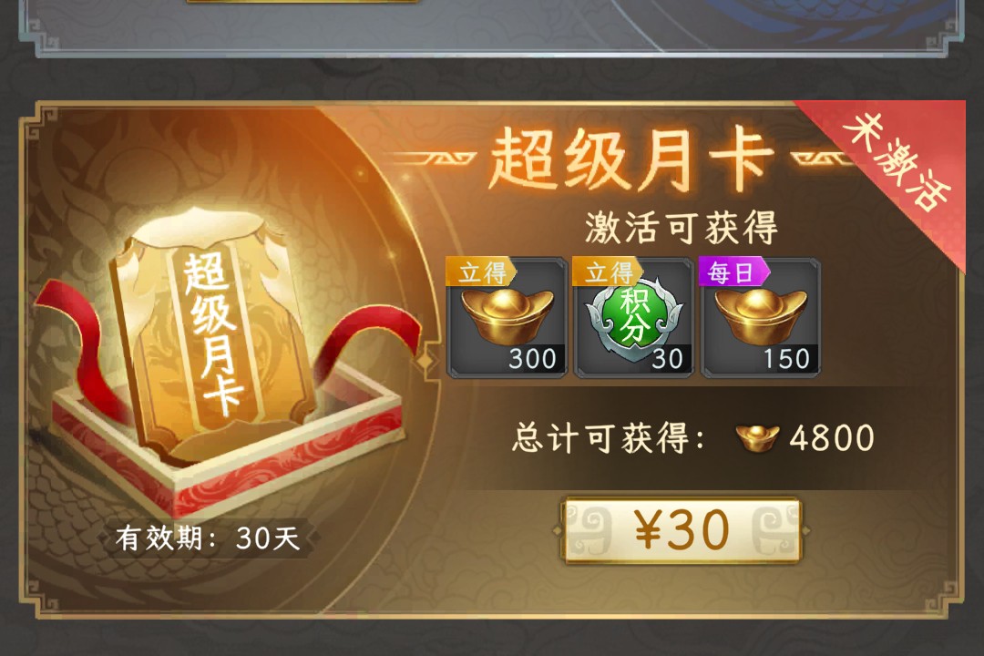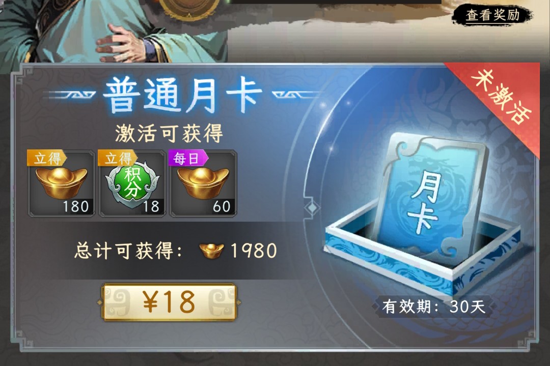 在三国志战旗天下的策略世界里,月卡系统是主公们维系资源、稳步发展的重要保障。界面设计延续了游戏的古风基调,一位身着传统服饰的谋士形象,仿佛在为玩家的霸业规划资源蓝图。月卡体系丰富多样,普通月卡仅需18元,激活后立得180元宝、18积分,每日还可领取60元宝,总计能获得1980元宝,有效期30天,是性价比极高的入门选择;超级月卡30元,立得300元宝、30积分,每日领取150元宝,总计4800元宝,资源获取力度更上一层;季卡98元,立得980元宝、98积分,每日领取300元宝,总计27980元宝,有效期长达90天,为长期征战的主公提供持续资源供给。每充值1元还可获得1积分,积分积累可升级尊位,解锁更多奖励。这些元宝资源可用于招募武将、升级建筑、强化装备等关键环节,助力主公在攻城略地、发展势力的过程中步步为营。同时,系统温馨提示“请适度娱乐,理性消费”,让主公们在合理规划资源的前提下,充分享受游戏乐趣。无论是初入乱世的新手主公,还是意图一统天下的雄主,月卡系统都能为其霸业之路提供稳定的资源支撑,让逐鹿中原的征程更加从容顺畅。