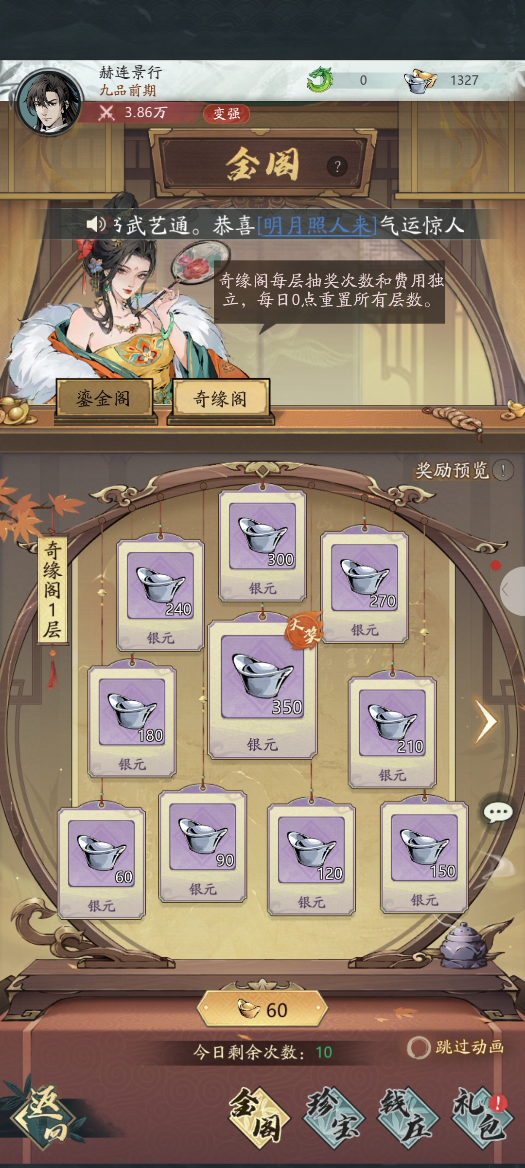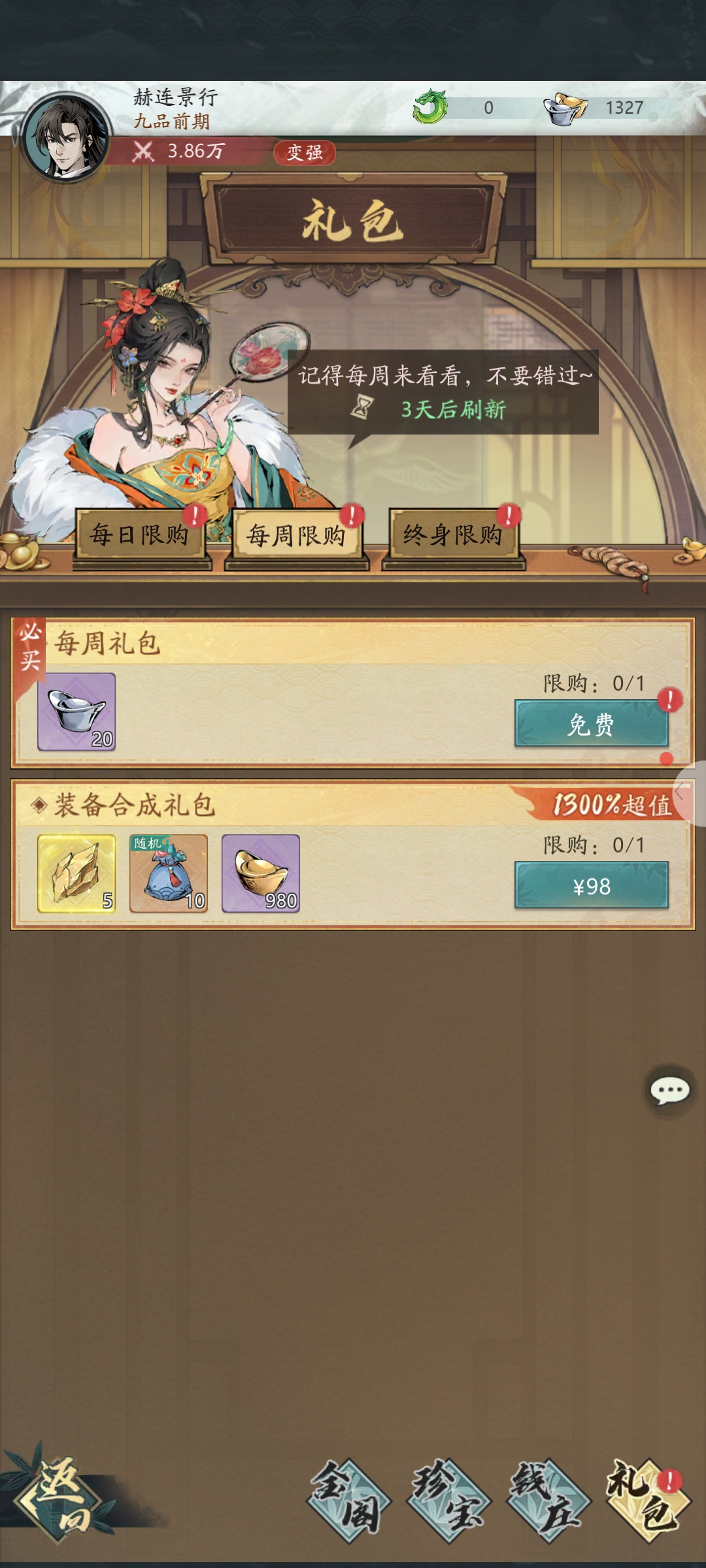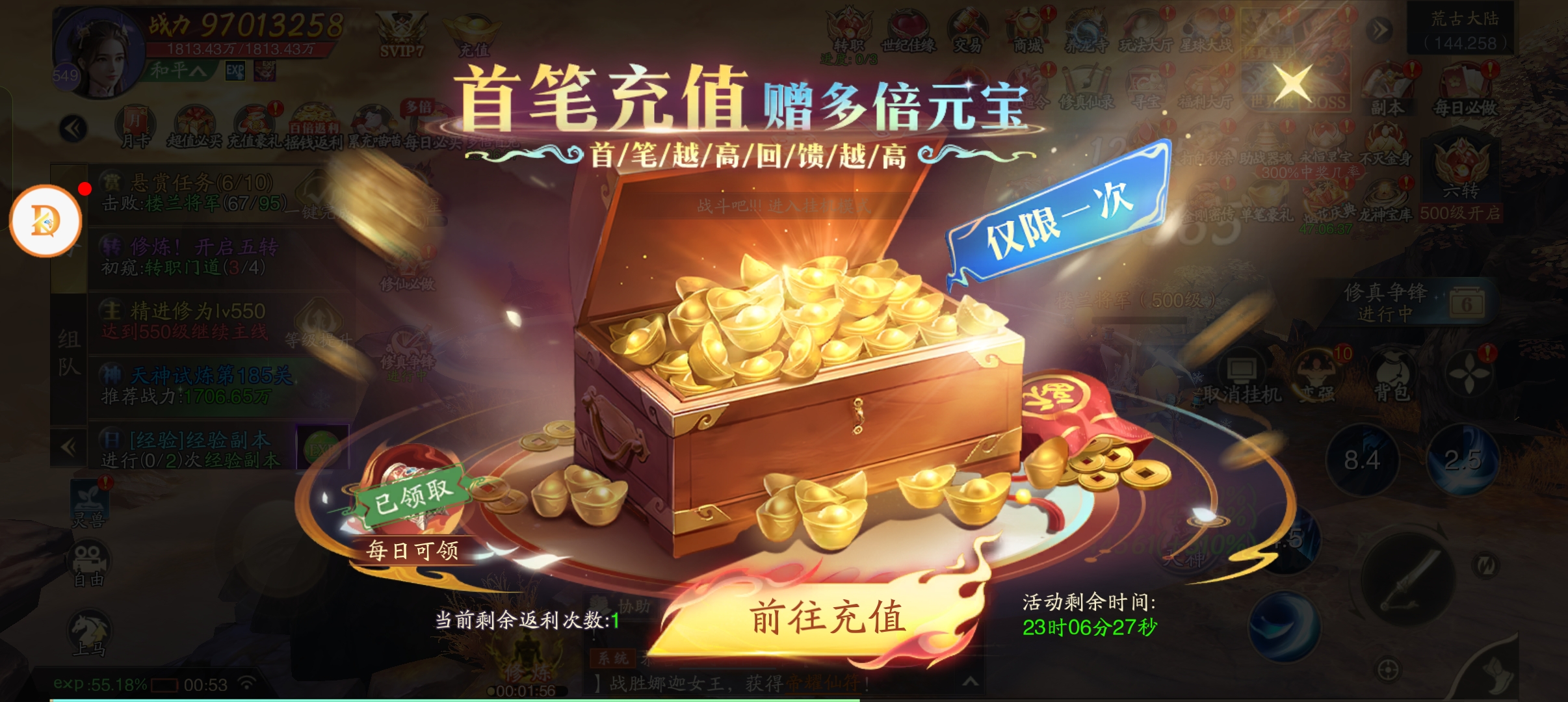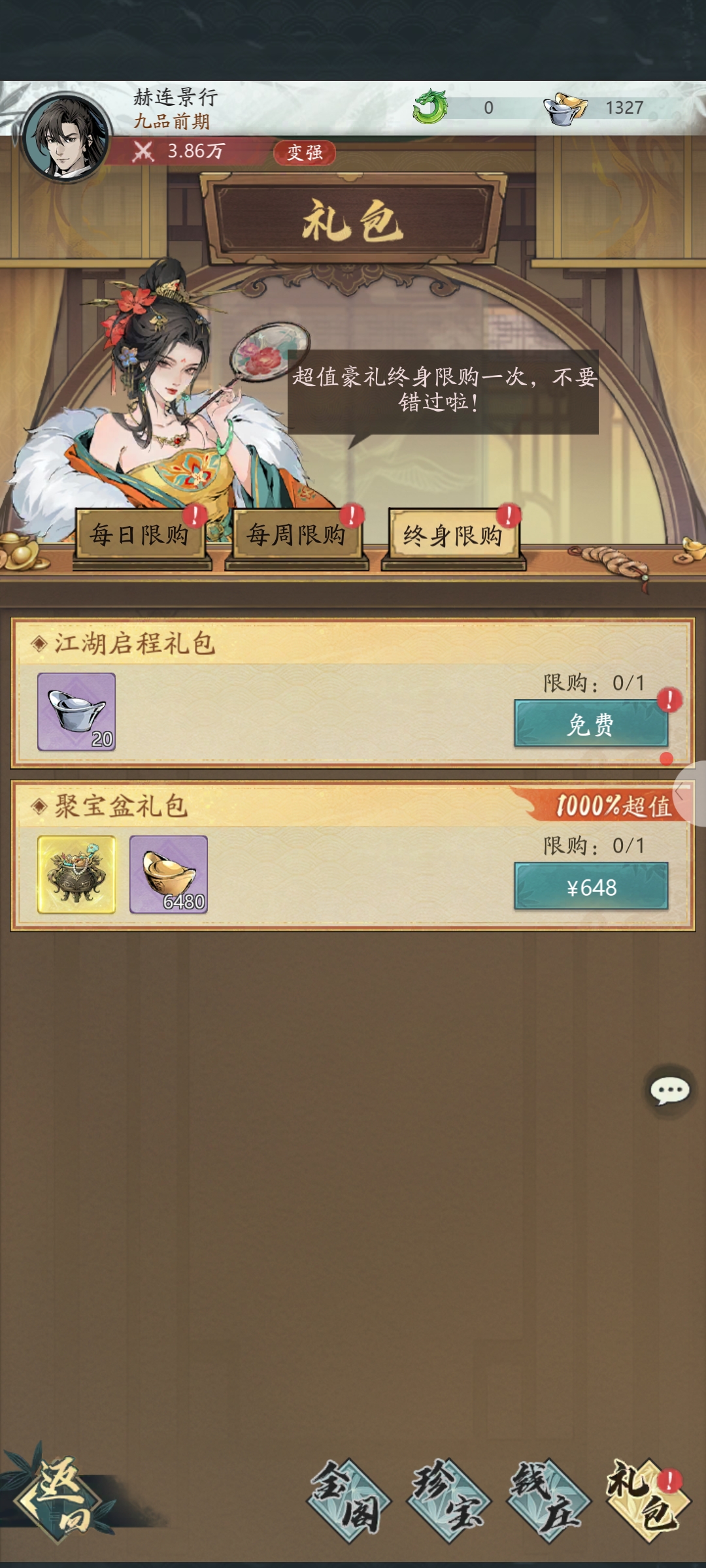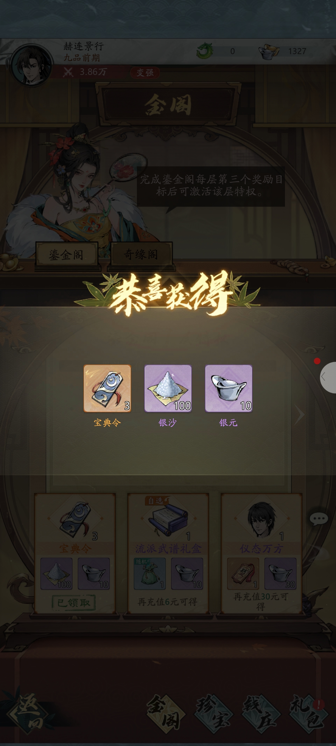 三国志战旗天下的乱世征程中充值系统是主公们获取资源、加速发展的重要途径。界面设计充满古风韵味,一位身着古装的谋士形象立于侧,仿佛在为主公的争霸之路出谋划策,充值选项丰富多样,从免费的10元宝福利,到6元60元宝、18元180元宝等不同档位,更有首充双倍的超值优惠,例如68元可获680元宝(首充双倍后收益倍增),最高648元可拿下6480元宝。每充值1元还可获得1积分,积分积累到一定程度能升级尊位,解锁更多奖励。这些元宝资源可用于招募武将、升级建筑、强化装备等诸多关键环节,助力主公在攻城略地(如攻占阳平关)、发展势力的过程中抢占先机。同时,系统也温馨提示“请适度娱乐,理性消费”,让主公们在享受游戏乐趣的同时,合理规划资源。无论是初入乱世的新手主公,还是意图一统天下的雄主,都能在这充值系统中找到适合自己的资源获取方式,为逐鹿中原、成就霸业奠定坚实基础。