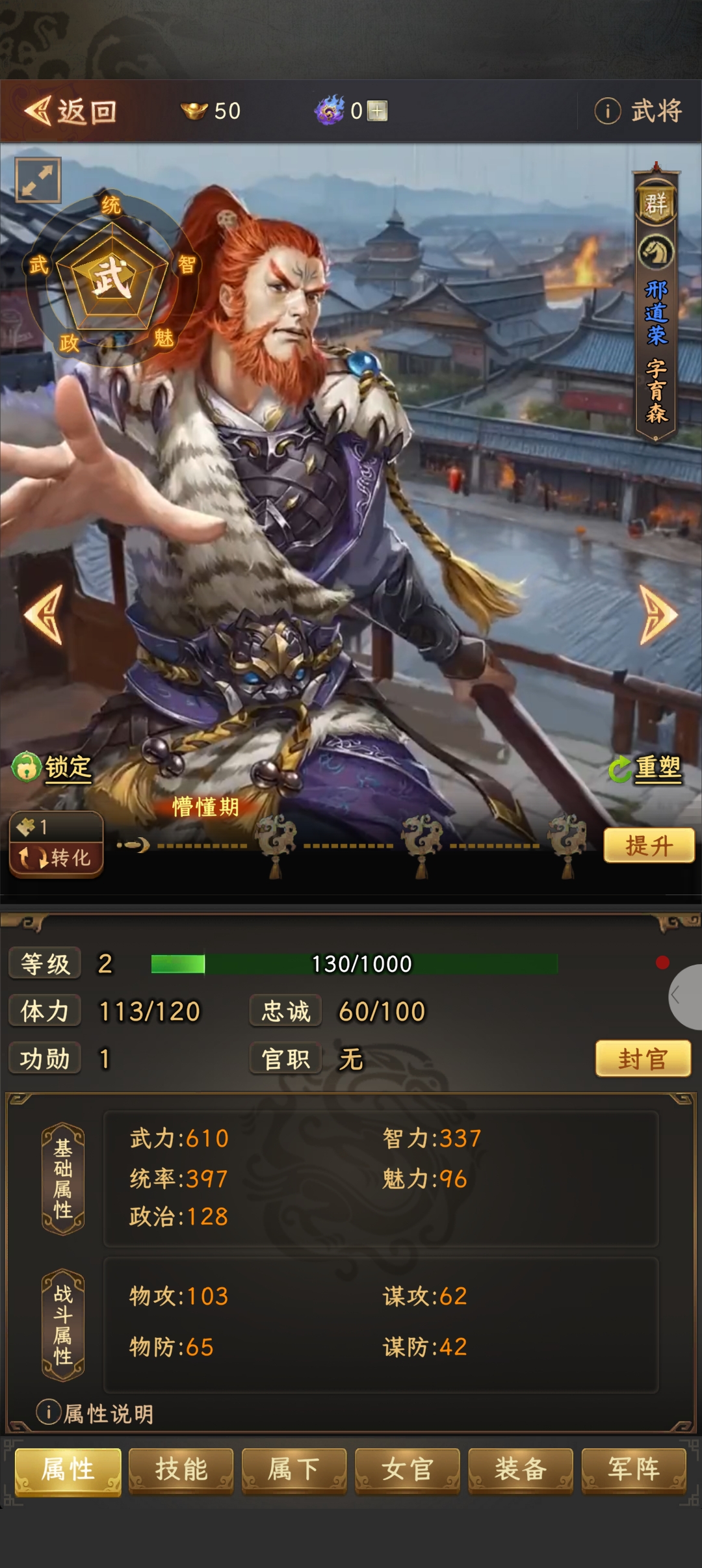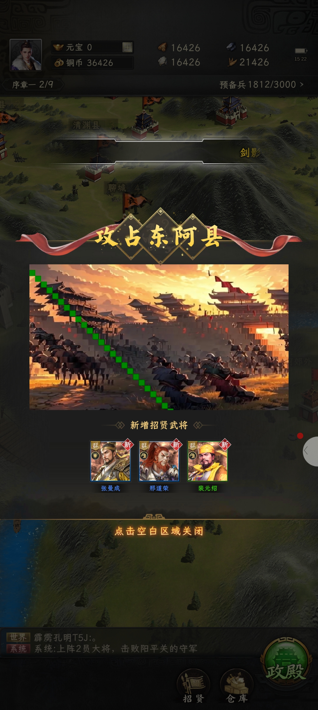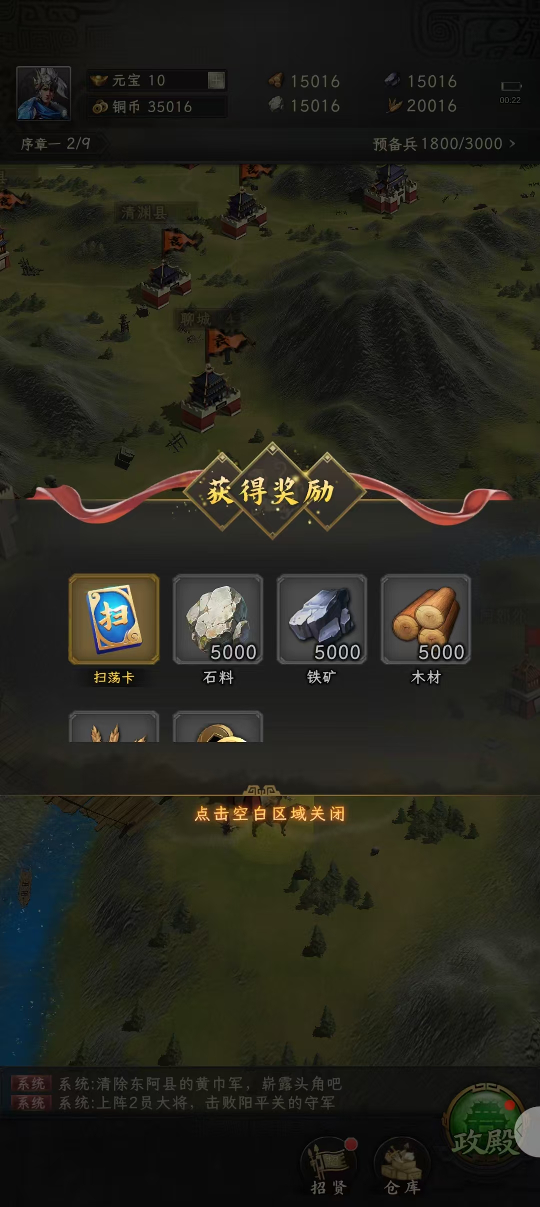 《三国志战旗天下》以其独特的战旗玩法,将三国的权谋与征战浓缩于方寸之间。序章的征程里,清渊县、聊城等地的据点星罗棋布,每一次攻占都是对策略的考验。就像在东阿县击溃黄巾军,不仅收获了邢道荣升级的喜悦,更有扫荡卡、石料、铁矿、木材等资源入账,这些资源是发展势力的基石,无论是建设城池还是招兵买马,都离不开它们。武将系统更是亮点纷呈,邢道荣这般武将的成长,从属性的点点滴滴提升中,能感受到其在战场愈发强悍的战力。而招贤系统仿佛是一扇通往三国名将的大门,谁知道下一个纳入麾下的会是关羽、张飞还是智谋超群的诸葛亮?仓库里积攒的资源,政殿中规划的发展,每一环都紧扣着三国乱世的生存法则。