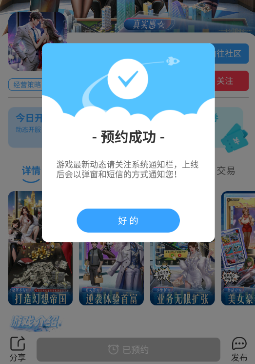 《星痕幻想》将于10月17日10:00上线!游戏简介:告别996,缔造你的商业传奇——在这里,街角煎饼摊也能发展为连锁帝国!你将化身商业拓荒者,从摆摊开始,逐步构建属于自己的财富版图。游戏特色:【资产布局】:打造被动收入流重仓潜力地块,建设商业综合体,引入顶级品牌。看着租金持续入账,实现真正的“躺着赚钱”。【精英集结】:招募SSR级团队汇聚各类行业精英:明星店长、财务专家、供应链高手…打造高效团队,为你24小时创造价值。【商战博弈】 :用智慧碾压对手参与土地竞拍、争夺独家代理权。通过市场预判、供应链控制与资本运作,让竞争对手主动退出战场。【联盟共赢】:携手征服顶级项目加入商会,与盟友共享资源、协同作战。共同承接城市地标工程,分享跨国订单红利。【无限可能】:你的野心决定天花板从零开始,直至掌控城市经济命脉。星痕市的每一盏霓虹,都在等待你来点亮!