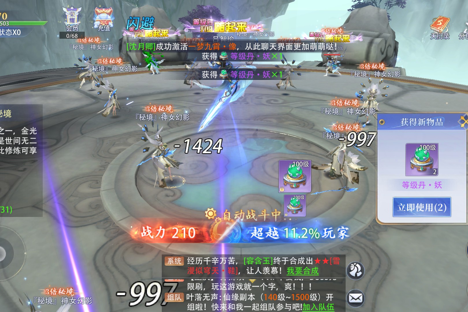 夜黑风高的晚上,打开了这款游戏,看着试玩任务的300级,隐隐有种熟悉的感觉。 打开游戏后,建模还可以耶,本以为是那些仙侠游戏的套路模板,结果选了角色进去,没超过2分钟,5倍练功房!好家伙!玩过梦回仙域的一定很熟悉吧,没有错,一样的东西😂😂,可算明白为什么是300级了,不氪金第一天一般轻易到不了,第二天轻轻松松。看着试玩结束倒计时,只恨自己为什么要加班错过了时间,最后也是293级遗憾收场。 多么令人熟悉的模式😂玩梦回的盆友们,你们一定可以很快上手哒。 升级快!打怪也比梦回快!还需要合装备!复杂一点点,初体验反正还可以😂😂
