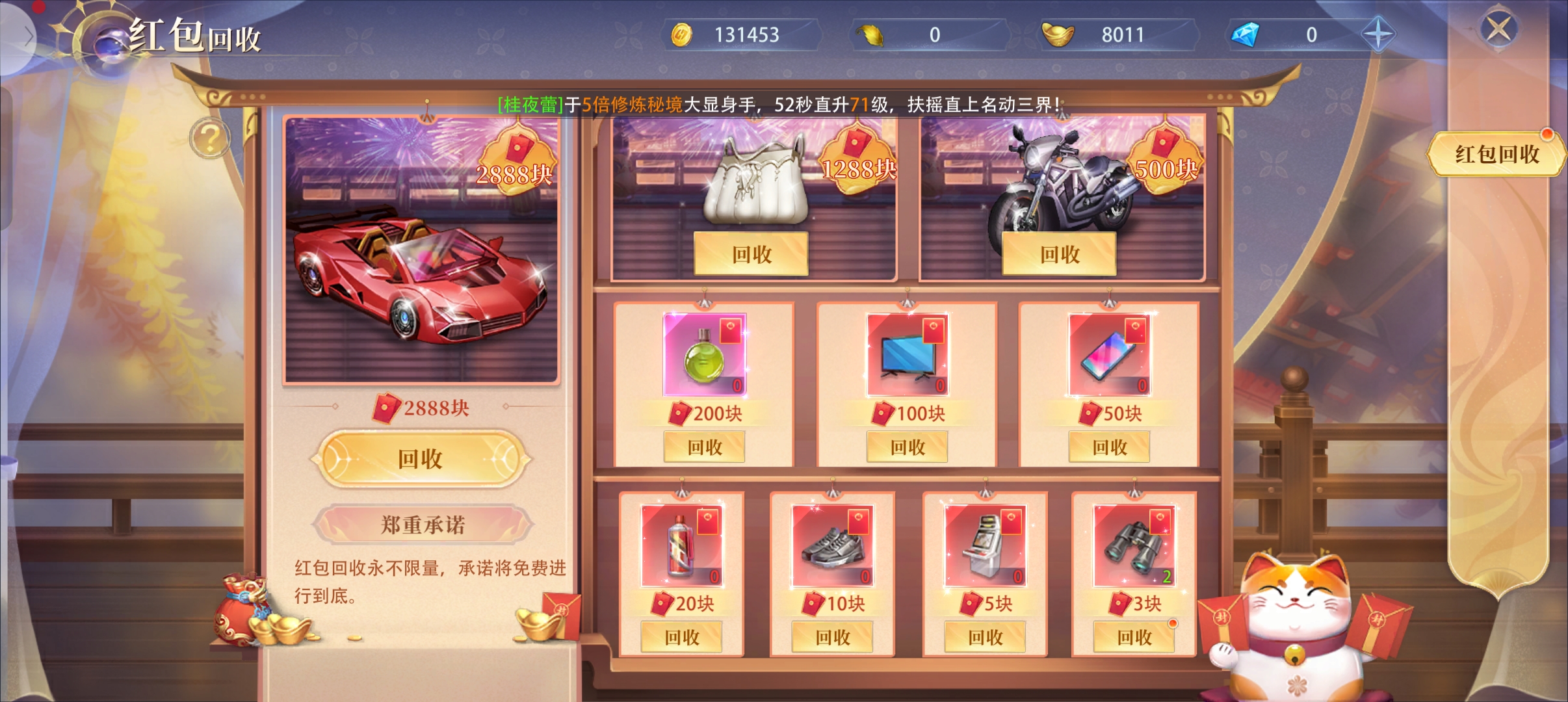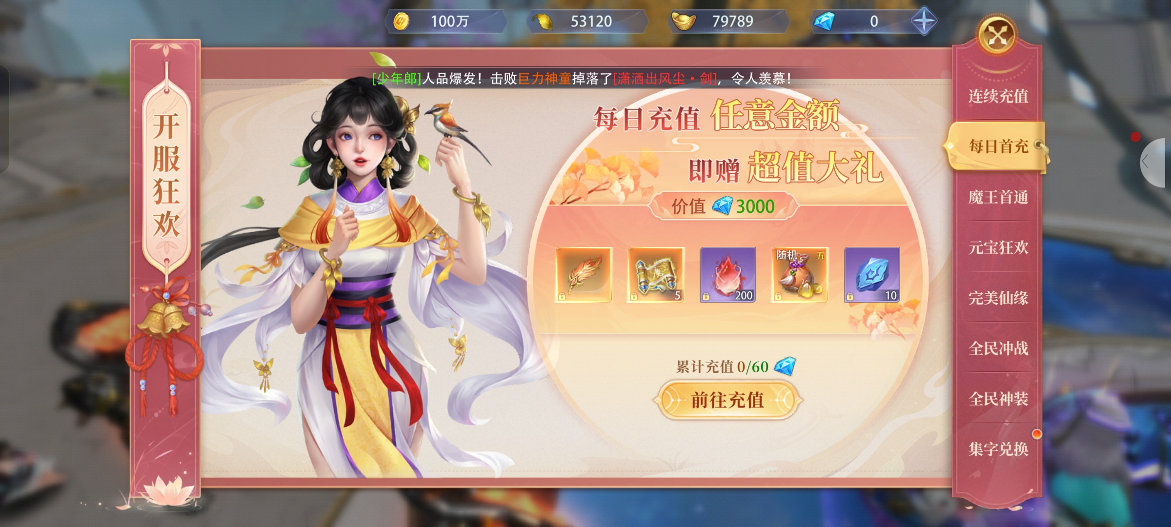 侠者风华录游戏里钻石主要流通货币,前无古人的福利+永久充值1:100”,从6元得600钻的起步福利,到1048元斩获104800钻的豪华馈赠,每一档充值都藏着战力跃迁的密码。首次充值的额外钻石奖励,更是为初入仙途的侠者铺就了第一级台阶——6元的钻石能兑换稀缺道具,30元的额度可解锁入门外观,而高额度充值带来的海量钻石,足以让侠者在秘境中快人一步,抢购限量资源、进阶强力装备。这些钻石不仅是货币,更是仙途上的“加速符”:它们能让你在坊市中秒抢绝版时装,在炼丹炉前速购珍稀药材,在演武场里解锁额外挑战次数。当你指尖点击充值按钮,便握住了缩短修仙周期的密钥——绛红仙子的笑靥仿佛在说,仙途漫漫,有钻石相伴,每一步都能踏出风华正茂的模样。从微氪尝鲜到重氪深耕,每一档充值都是对仙途体验的升级。