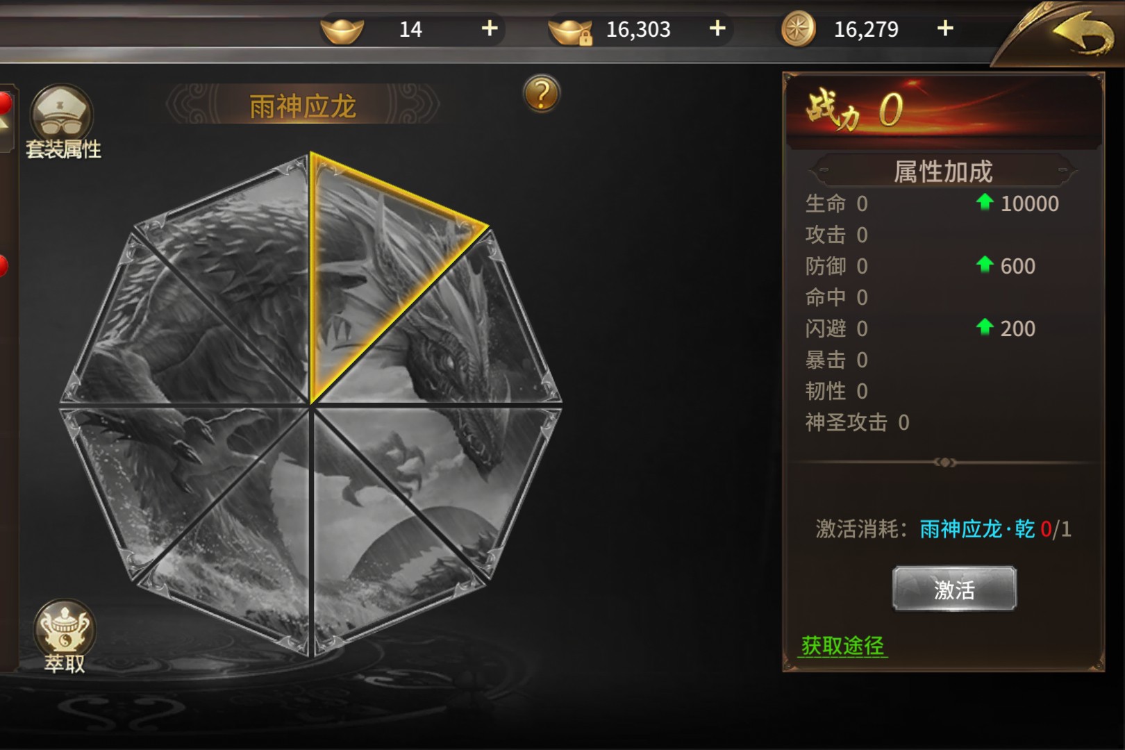 助战河图界面里上古凶兽系列的雨神应龙赫然在列,作为战力提升的重要拼图,它虽仅激活0/8的进度,却已展露不俗的属性潜力。激活后能带来生命+10000、防御+600、闪避+200的加成,每一块应龙碎片的收集,都能为角色筑牢生存防线。想要解锁雨神应龙,需获取“雨神应龙·乾”“雨神应龙·震”等专属道具,这些道具仅能从300级及以上的恶人谷副本获取,高等级副本的挑战也意味着更高的获取门槛。在凶兽列表中,镇世重明已激活5/8,风神飞廉激活1/8,唯有应龙还未开启收集之路。接下来要朝着300级恶人谷进发,一步步攒齐应龙碎片,让这尊上古雨神凶兽加入助战阵容。待集齐8块碎片激活全部属性,这尊上古神兽定能成为征战游戏的强力助力,让战力再上一个台阶!