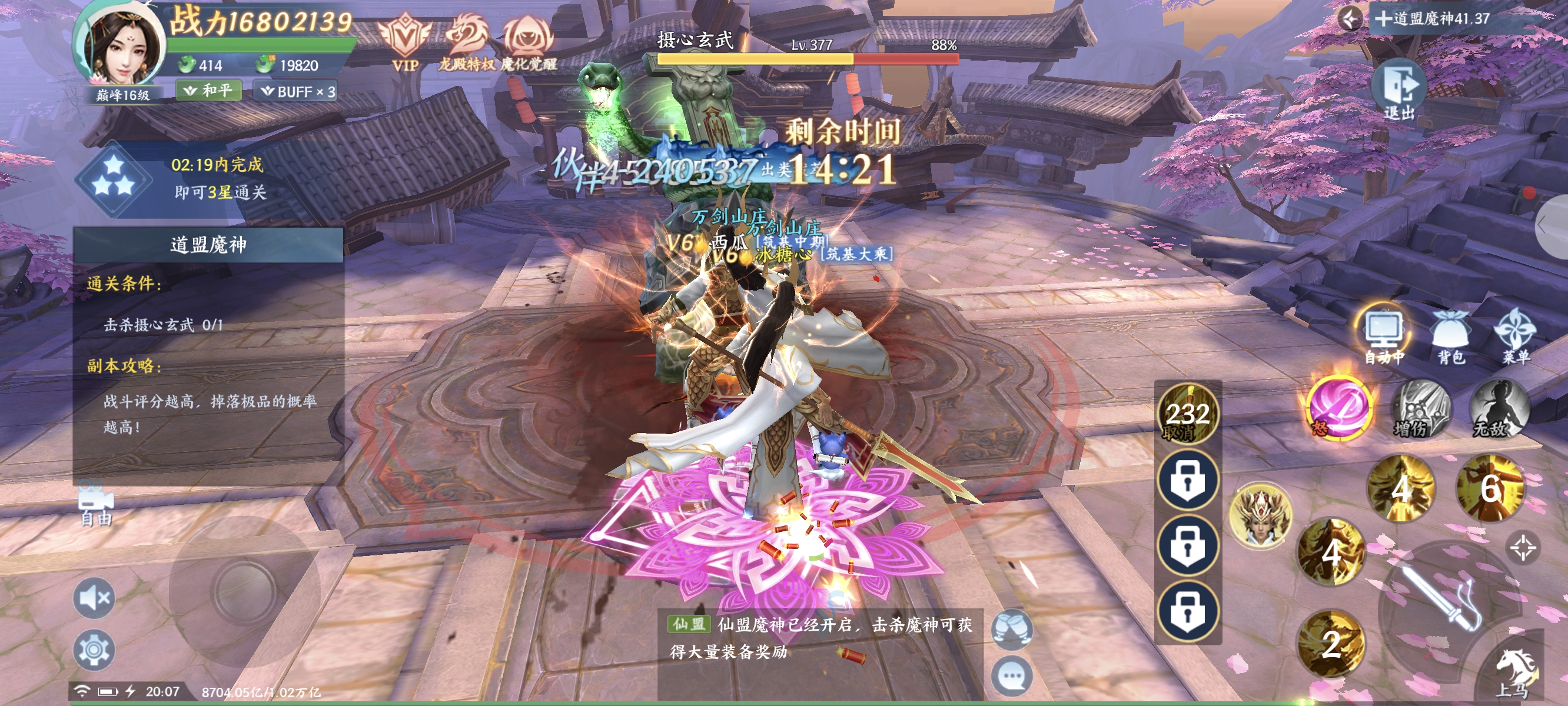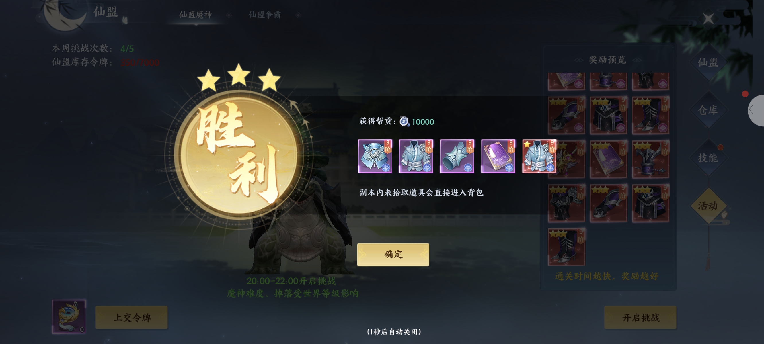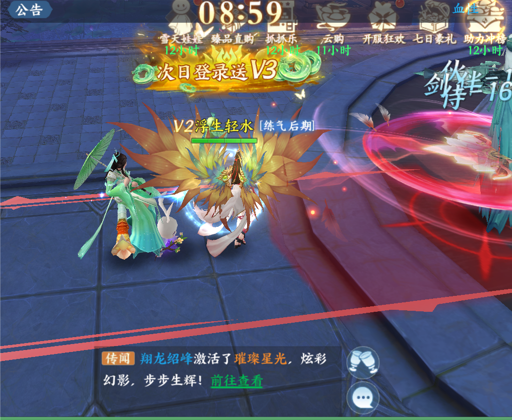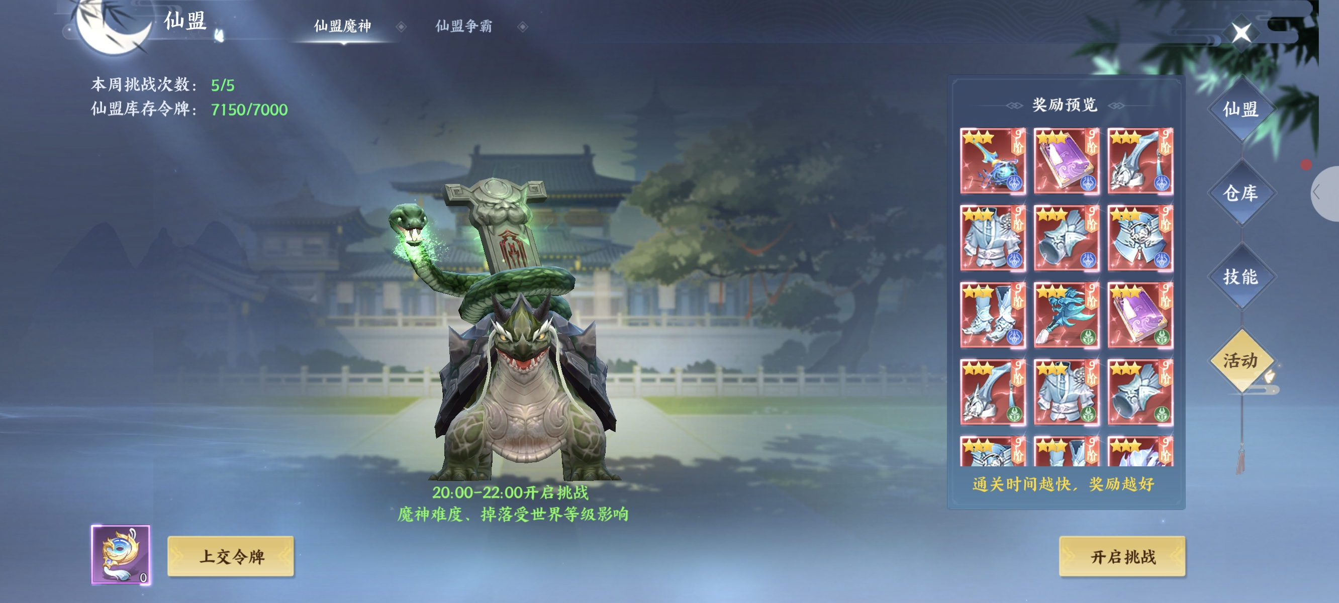 每天19点~19:25开启天机洞府,击败玩家和怪物获得积分,达到要求可以开启去往下一层的道路,最高成为和平区域,可以采集宝箱和奖励