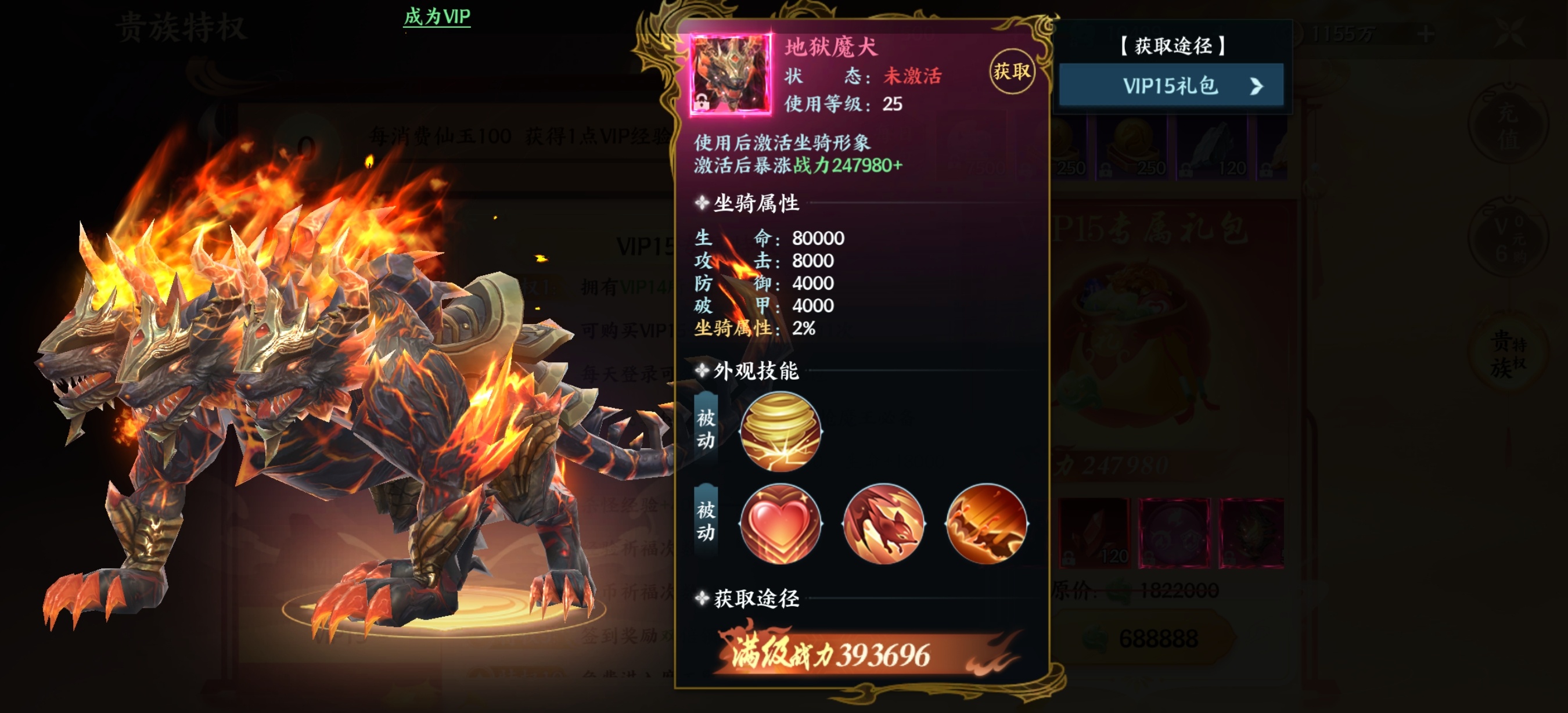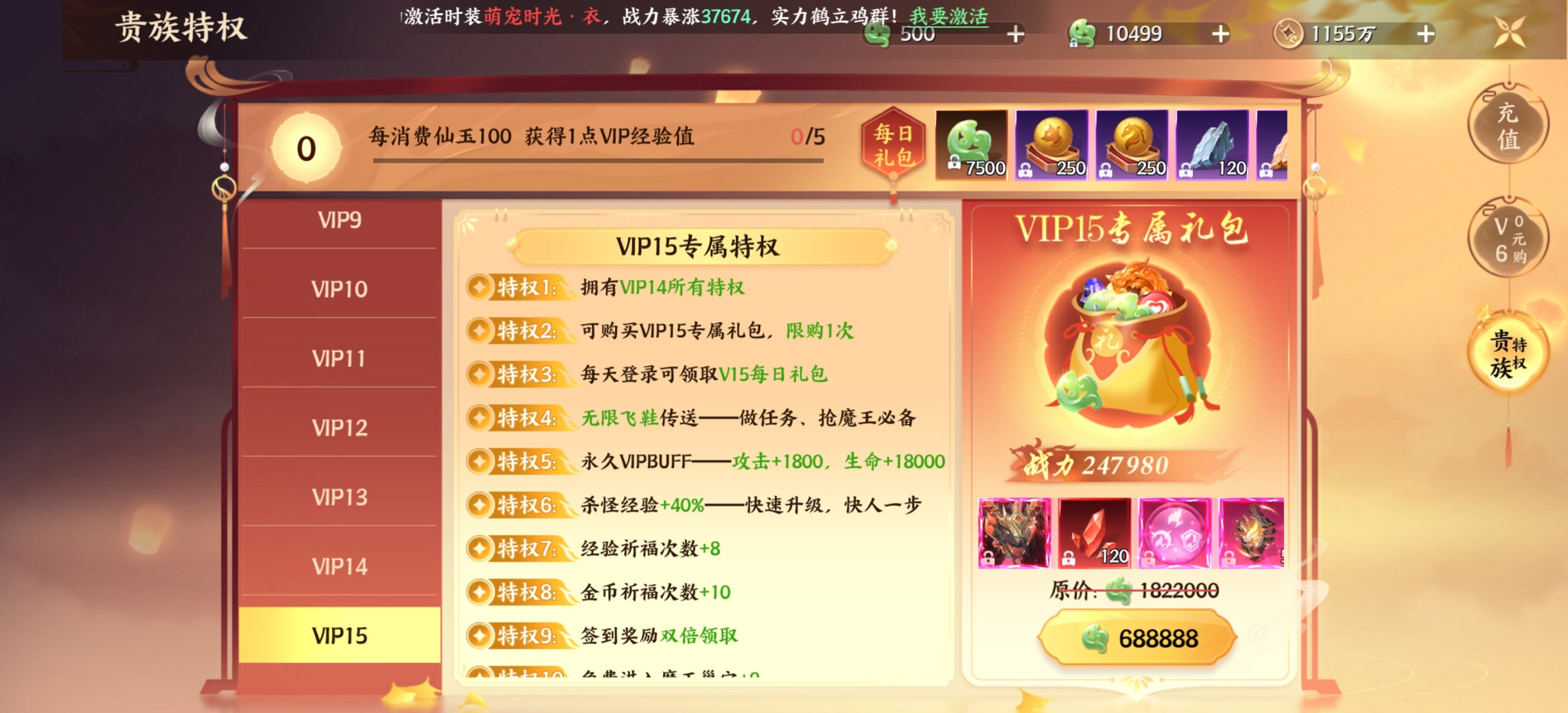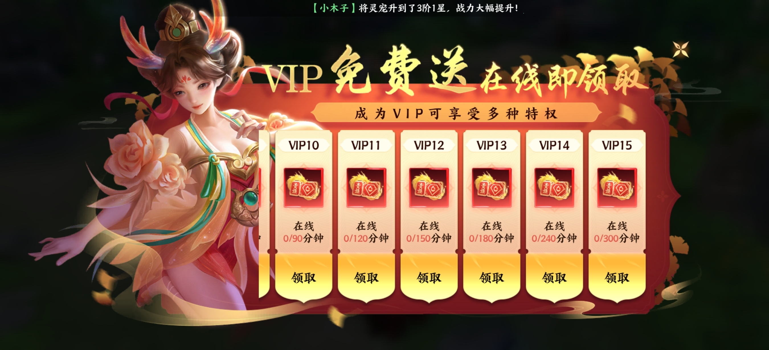 0氪修仙,免费充值,福利拉满!上线即送代金券、豪华礼包与丰厚仙玉,不花一分钱也能畅玩仙途。VIP等级免费送,在线即可领取,从VIP0到VIP15,累计在线时长达标,一键解锁全部高阶VIP特权,轻松登顶贵族之巅。 VIP15尊享九大特权,无限飞鞋传送、永久属性BUFF、杀怪经验加成、祈福次数翻倍、签到奖励双倍,战力与效率全面拉满。专属礼包更含绝版地狱魔犬坐骑,激活即暴涨战力247980+,满级战力高达393696,生命、攻击、防御属性全面碾压,专属被动技能助你纵横三界。 从平民到仙尊,无需氪金,在线即享顶级福利,坐骑、特权、资源一键全拿,轻松开启零氪畅爽修仙,战力狂飙,称霸仙域!