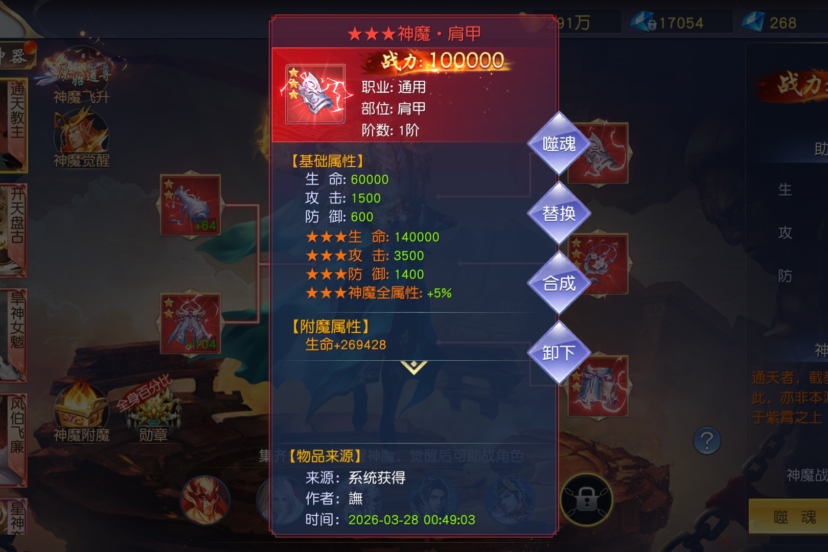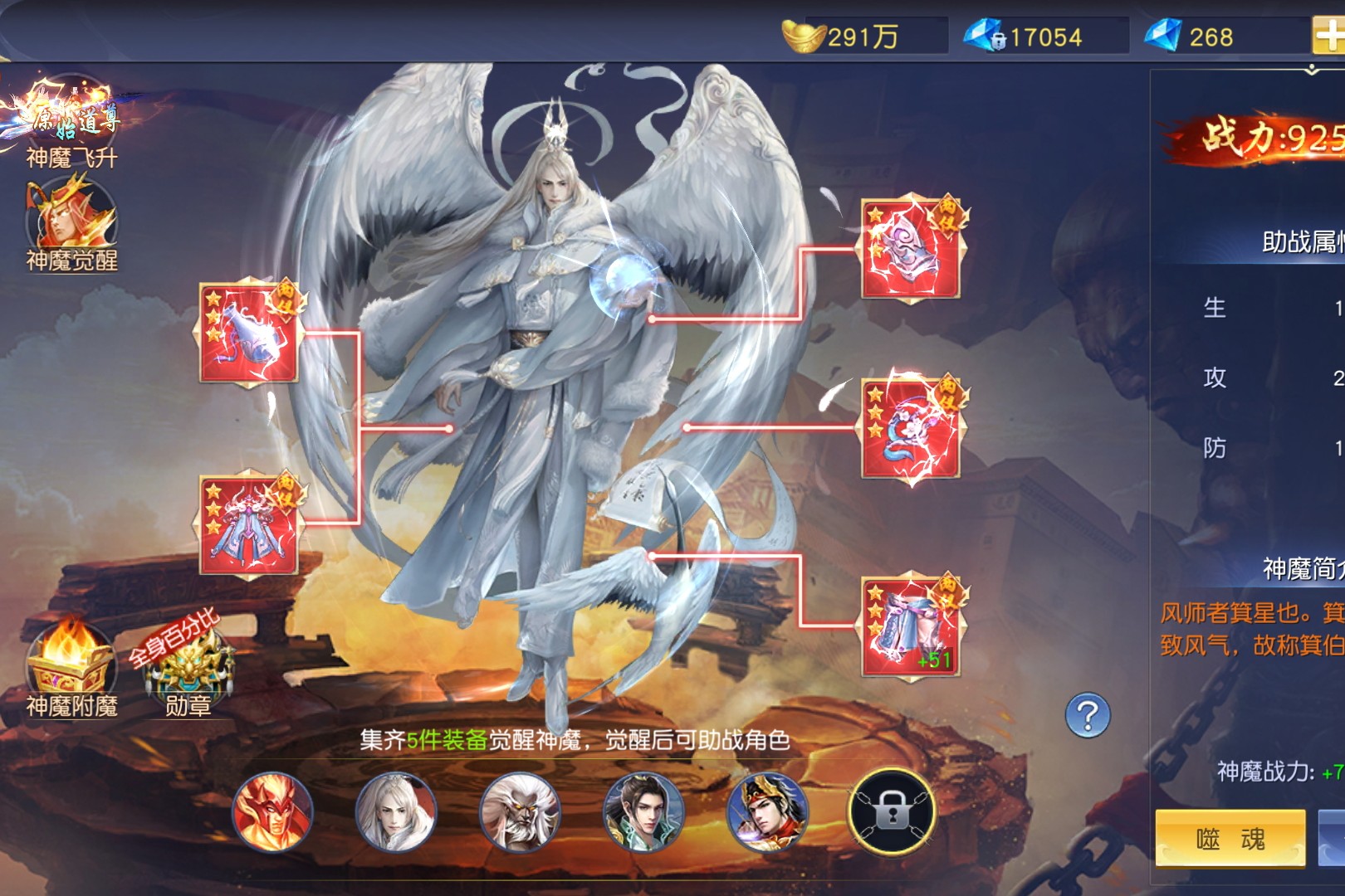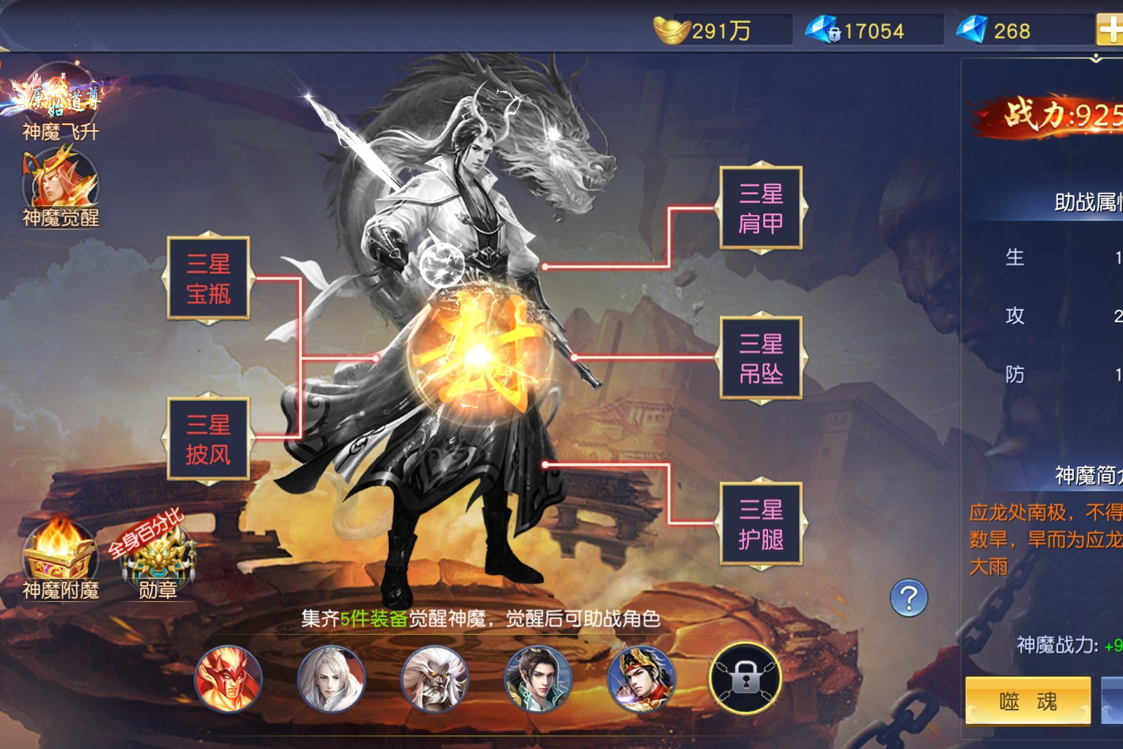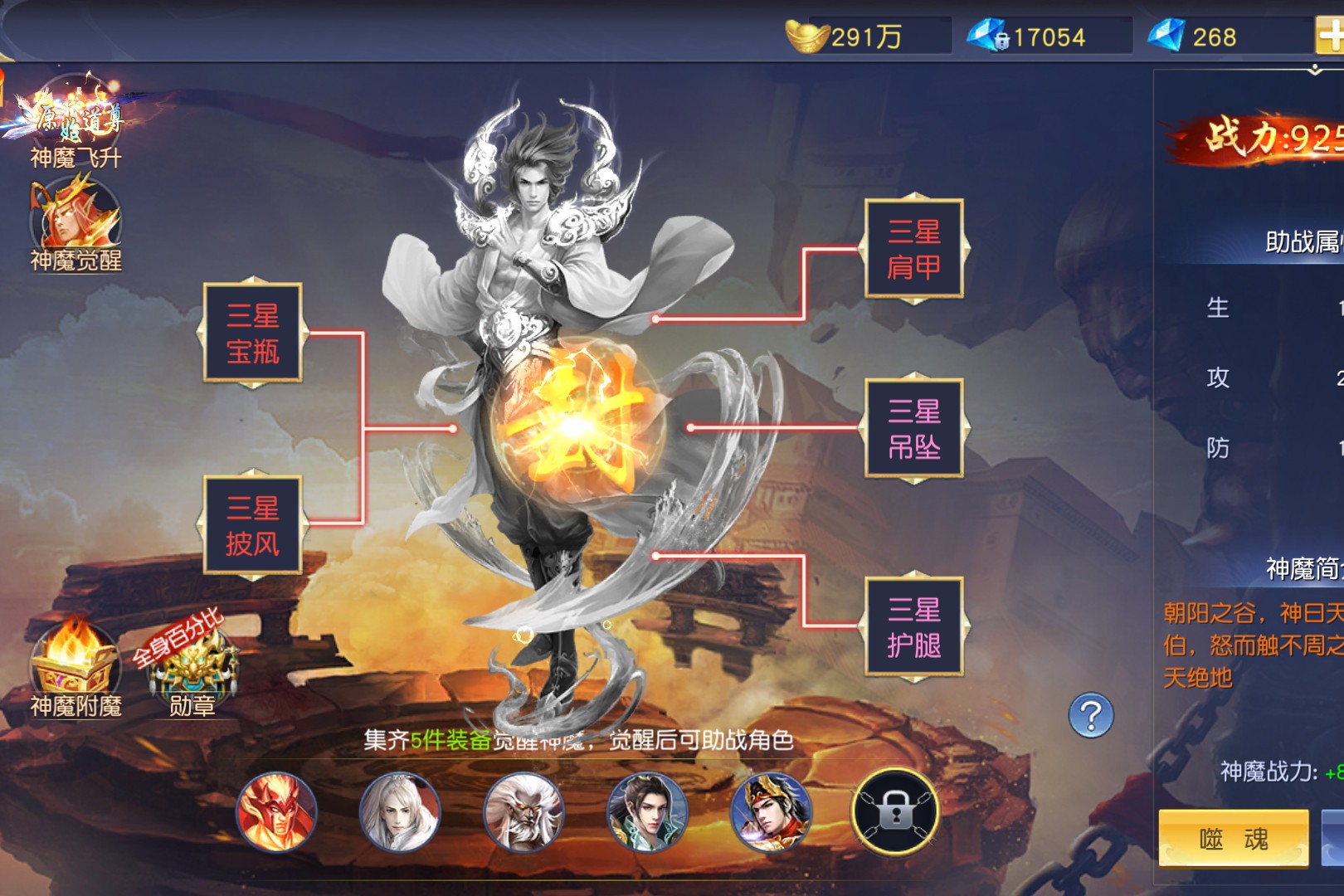 在山海经神魔系统中开天盘古绝对是战力天花板级存在!肌肉虬结的创世之神造型霸气无双,掌间烈焰燃尽混沌,气场直接拉满,妥妥的颜值与实力双绝。他的战力加成更是炸裂:神魔战力+676976,助战属性全面爆发生命超1100万、攻击近28万,攻防属性直接拉满总战力飙升至9256621。装备豪华顶配全套红色神魔装备拉满,两仪三星肩甲单装备就提供10万战力,满星解锁神魔全属性+5%,附魔属性再添高额命中加成,战力持续飙升。集齐5件装备即可觉醒,神魔附魔、勋章系统还能解锁全身百分比加成,不管是PVE推图还是PVP竞技,都是绝对的核心助力,冲榜提战必备神级伙伴!