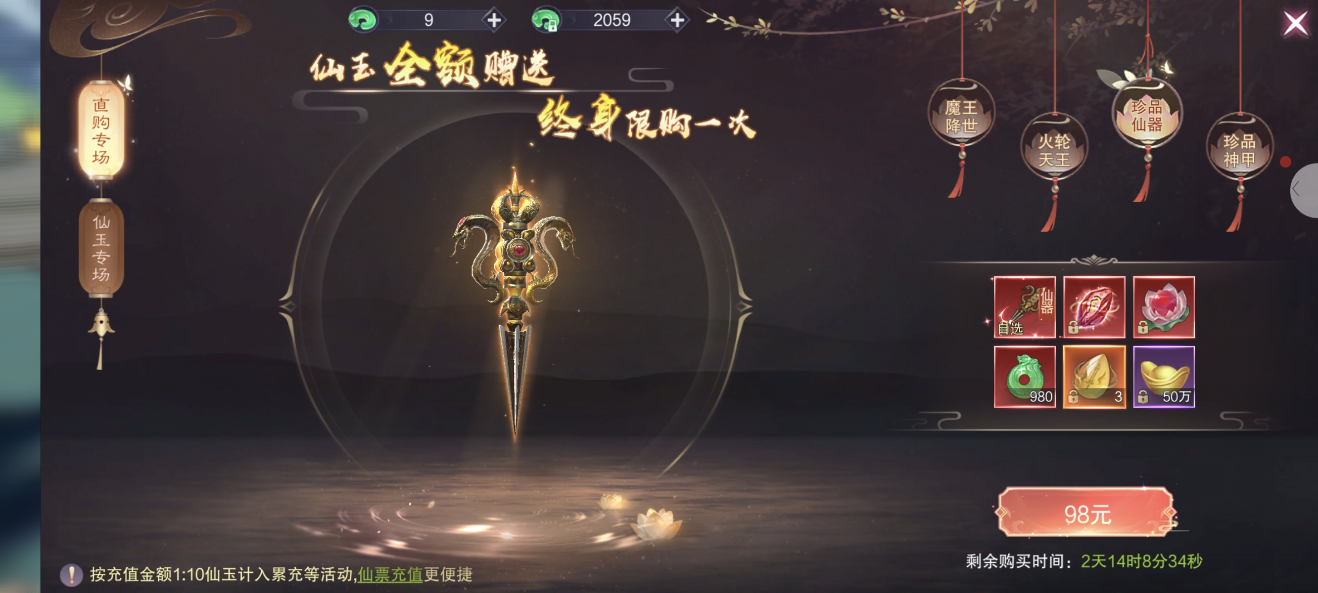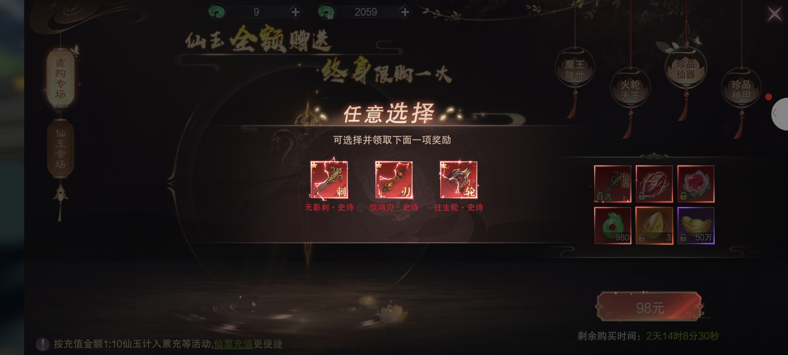 珍品仙器自选|98元全额返玉,史诗仙器三选一