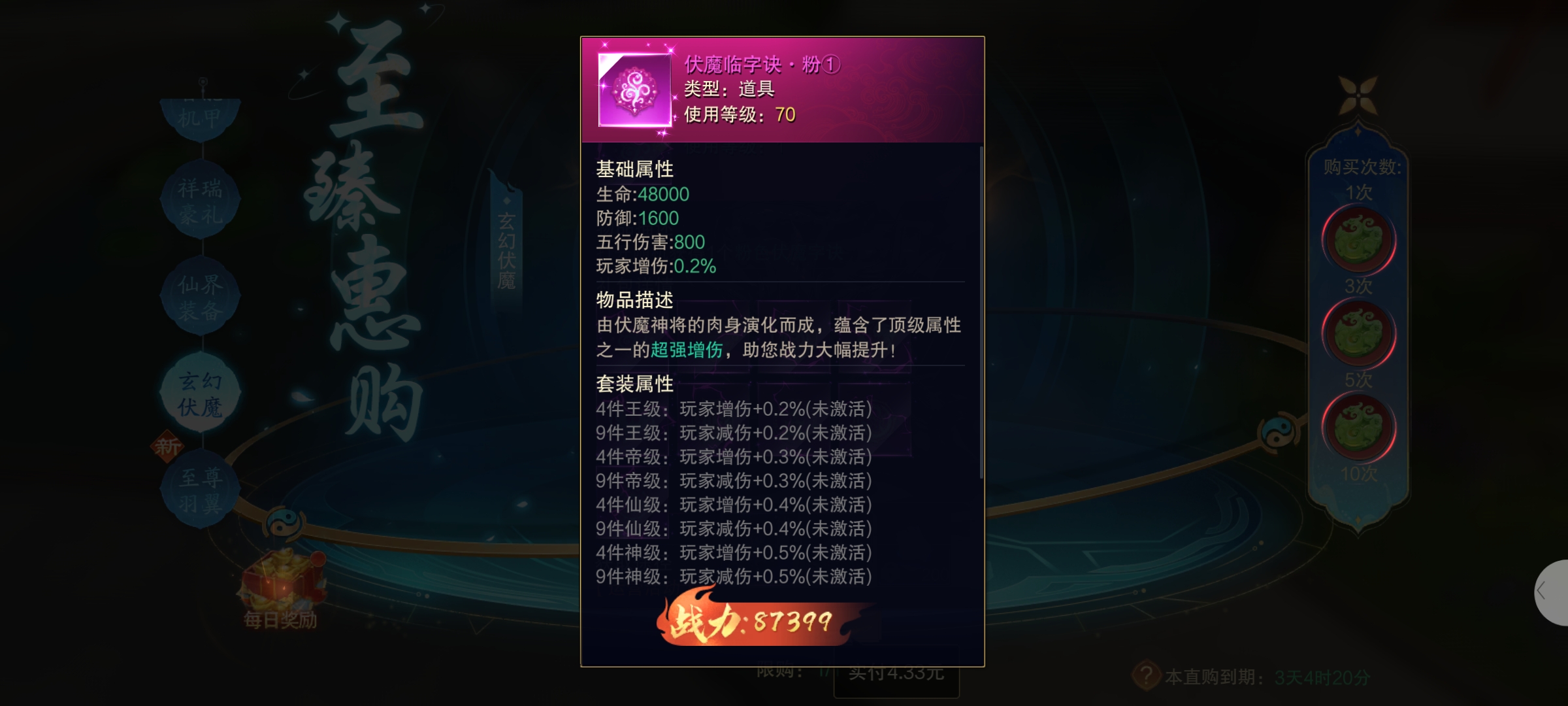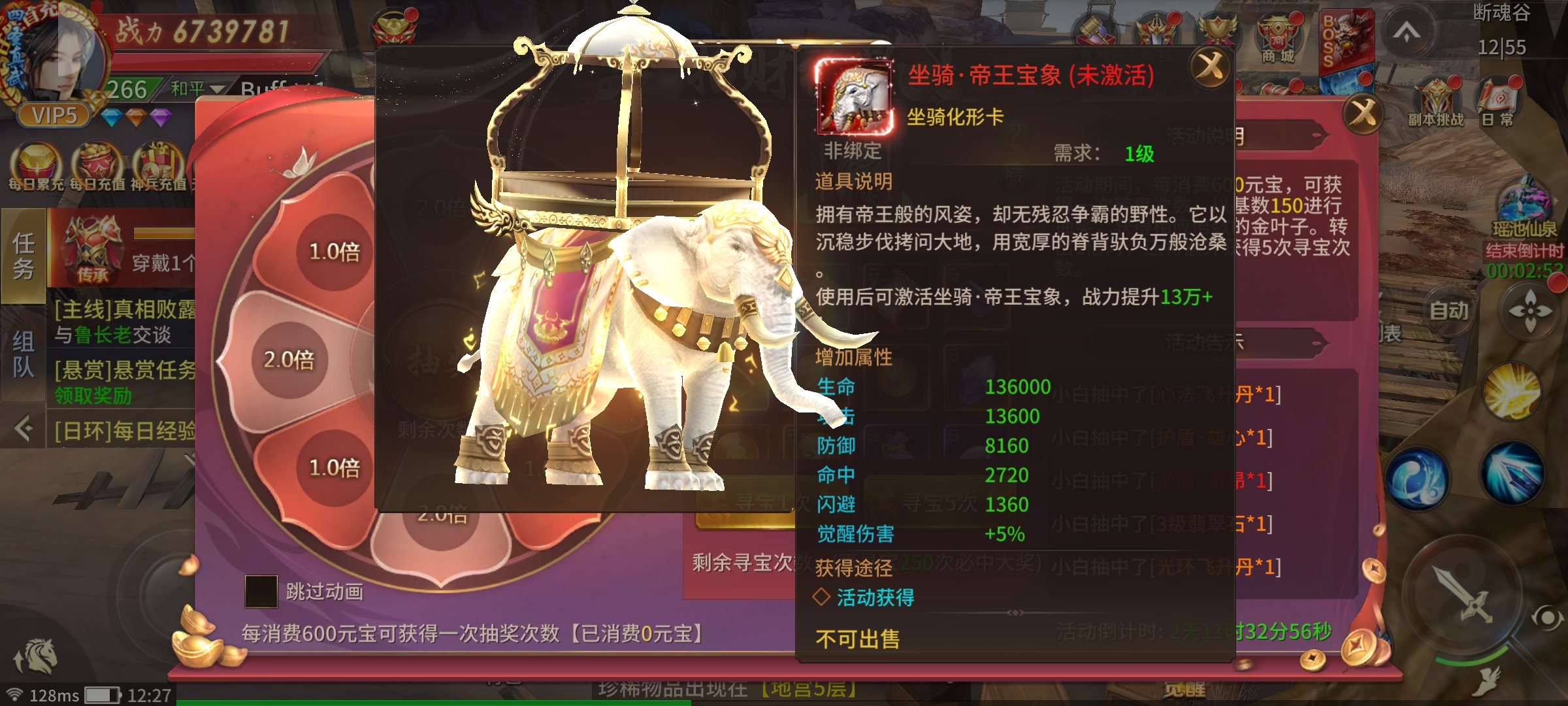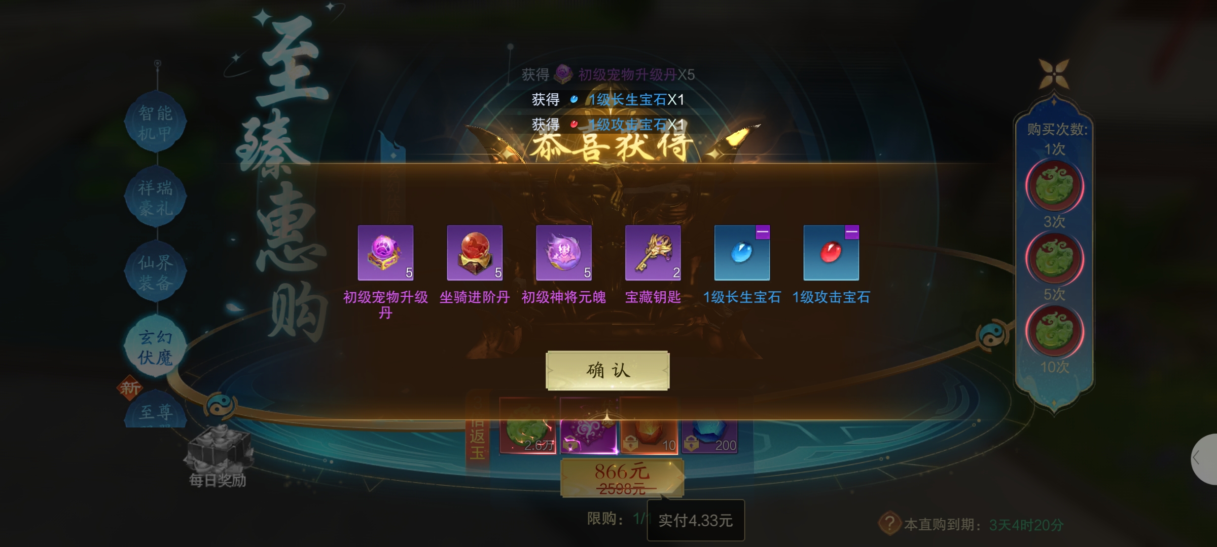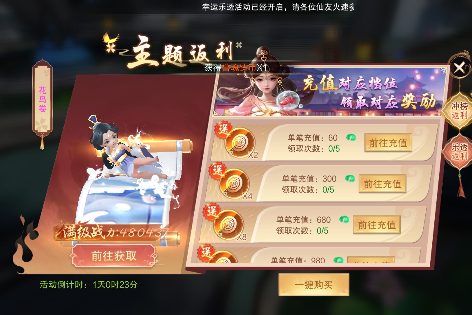 这个一折超低价98元购买福猫🐱财运到,购买立得1288元宝+100000战力,击杀boss掉落极品装备概率+10%,累计完成悬赏任务可获得相应元宝,共累计1000和悬赏任务,完成后累计可获得8888元宝,真的是超级划算值得拥有!