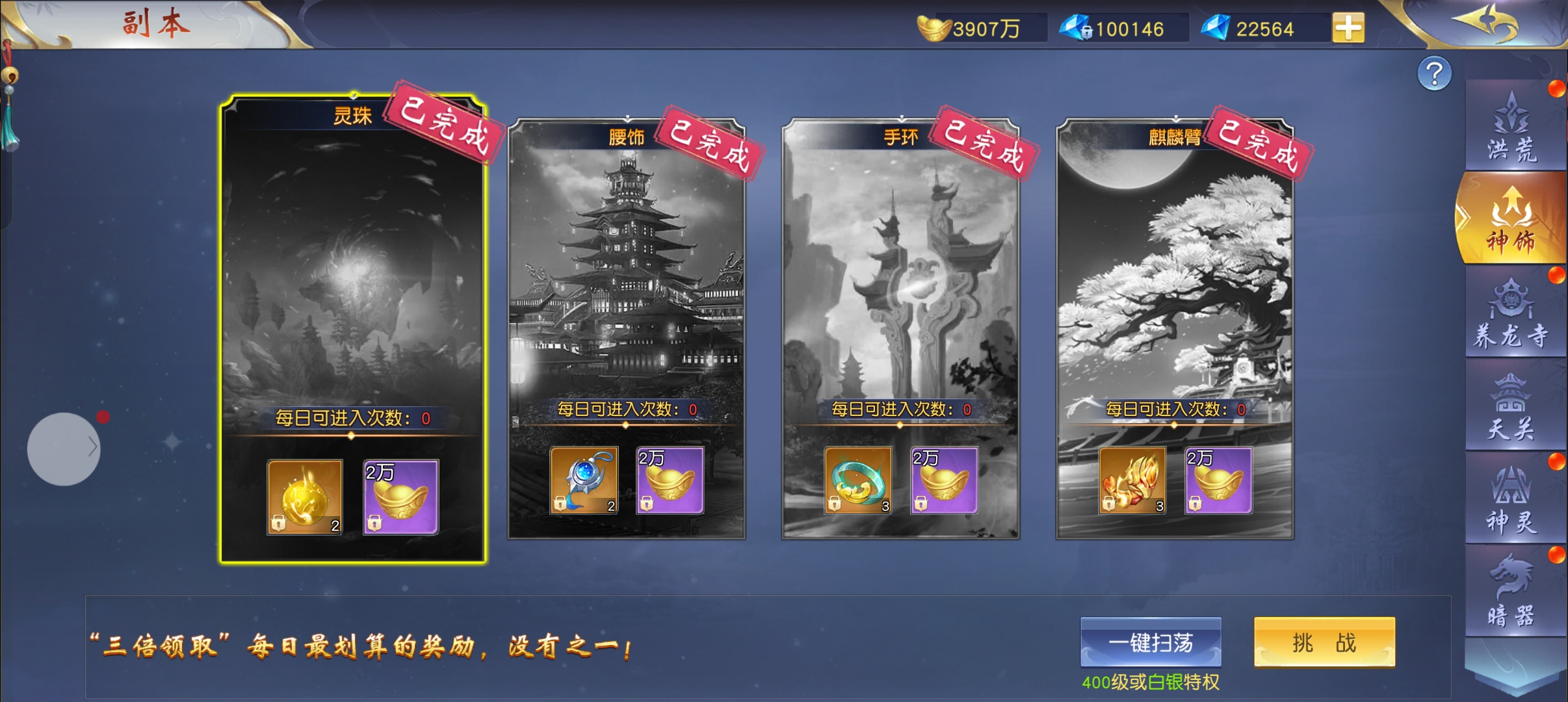 灵力副本挑战次数每天凌晨五点将进行刷新,通关前置关卡才能挑战下一个难度关卡,提升贵族可以获得额外购买次数,如果当天未使用的挑战次数累计到第二天,最多只能累计四次,命运之殿通关550层后才能开启日常副本的一键战斗功能。