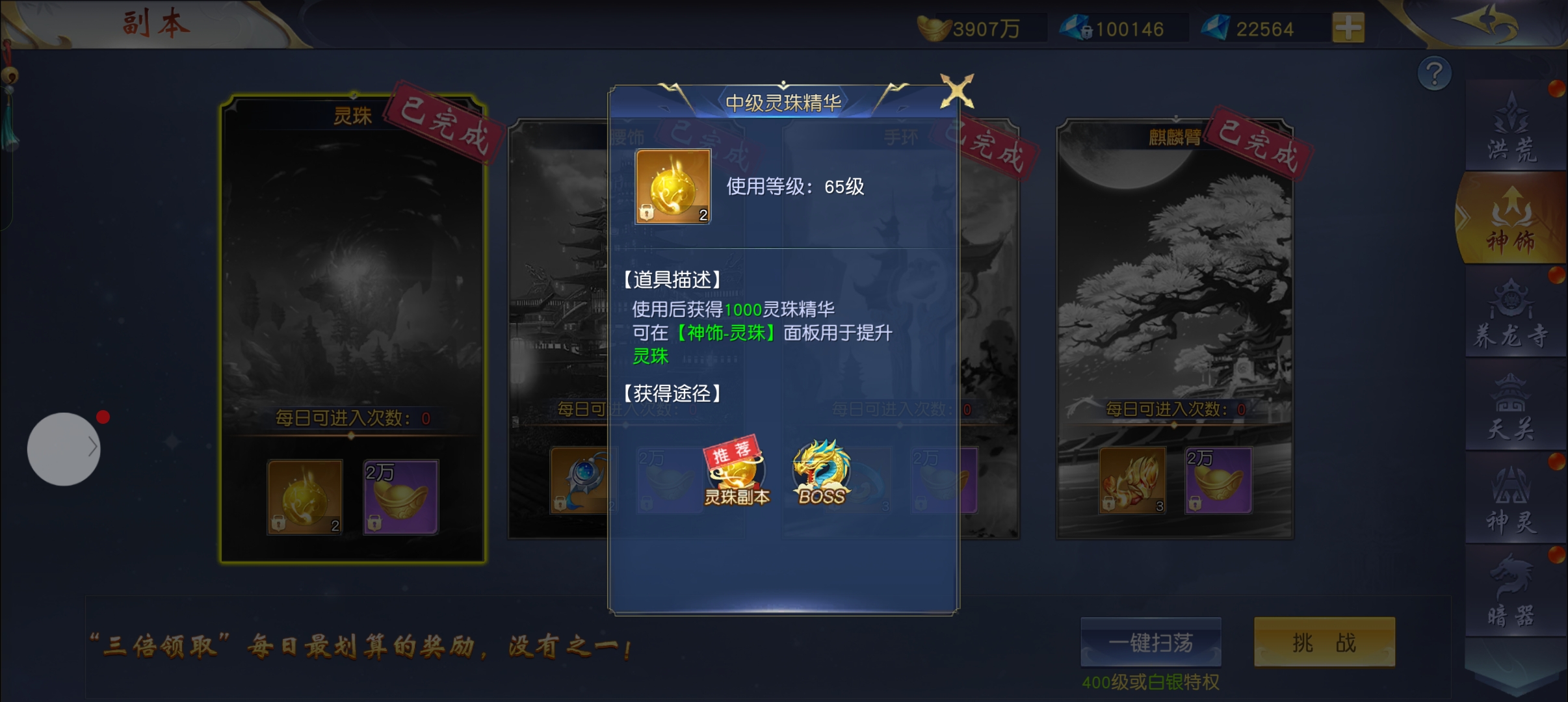 圣物觉醒需要消耗圣物灵液,每个阶段使用圣物灵液数量不一致,等级越高使用越多,可以从祖龙遗迹和四象神炼中获得,还是需要多多参加活动才可以获取,装备觉醒可增加四象圣物百分比属性!