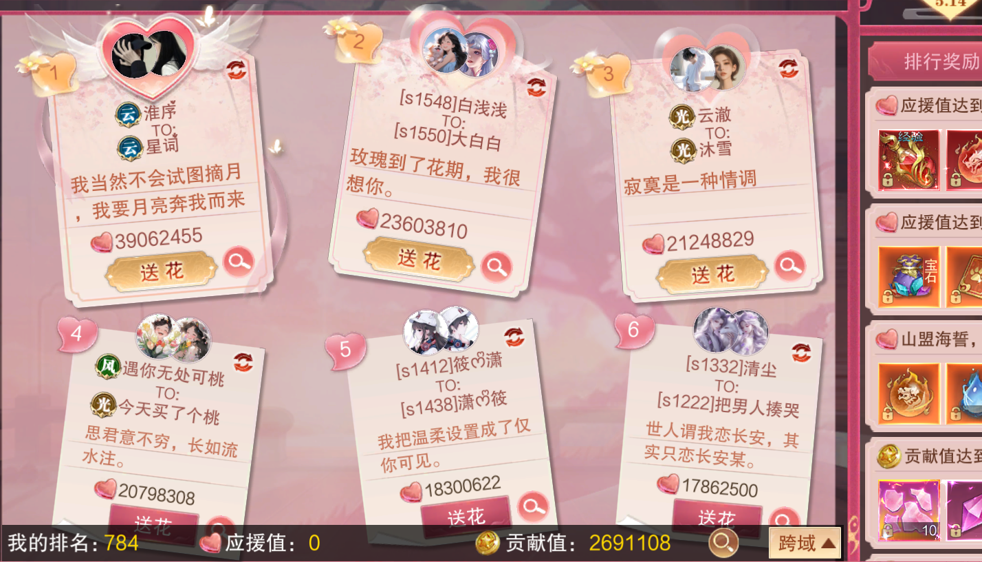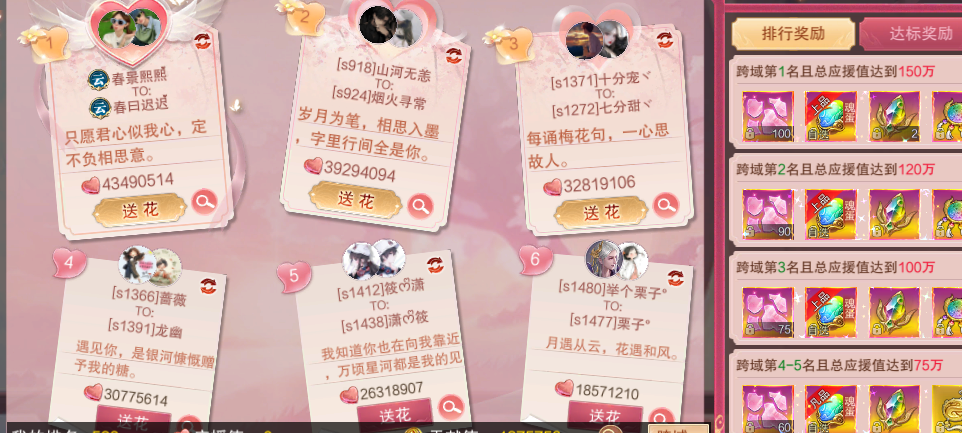 我是夜猫子,经常半夜上线,他也是,看到他骑了一个我没见过的坐骑,随口问了一句哪来的,也算是认识了吧,后来他结缘没玩了,找上了我帮忙开他号,那之后我们就熟悉了,从此以后我和他的号一起副本、挖图、开着机甲载着对方号打活动,干啥两个号都凑一块儿,他玩游戏还可以,我号不会的东西基本上他会帮我弄一弄,特别是鉴宝,他会帮我赚赚玉,后来我们在仙缘系统里结了金兰,看着彼此头顶“鹿子野的金兰”“路子野的金兰”的标识,就觉得在这游戏里,有这么个搭档,玩游戏都有意思多了,我们喜欢存玉抽摇蛋,每次抽完还会比比谁比较黑,可气的是基本上每次都我最黑,劲头足的时候,我们一起弄花榜,改各种各样的cp名,在我们共同努力下拿下了一年左右的花榜前三,还挺有成就感的,又一个年头马上过去了,到了说再见的时候啦,以后这个江湖没有你了,再见鹿子野,再见路子野!