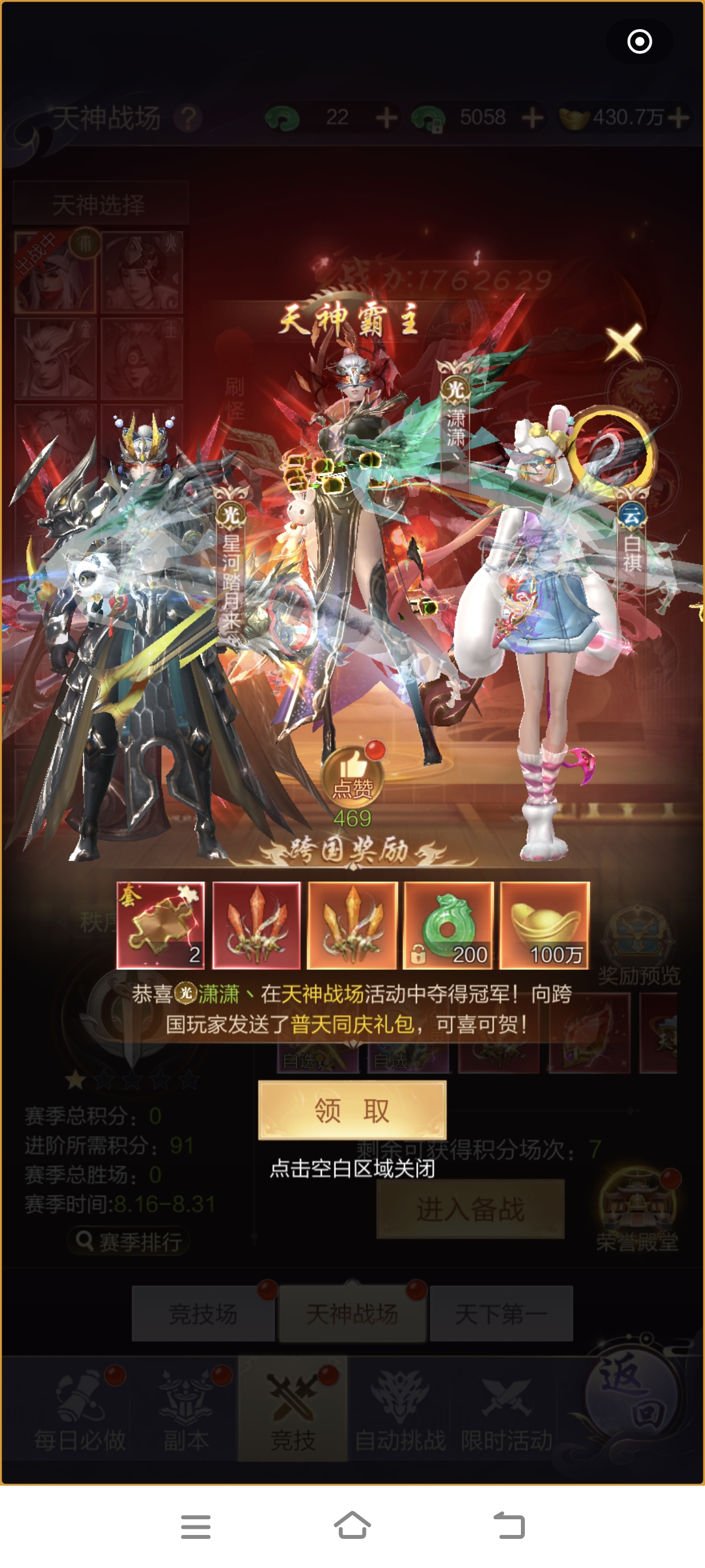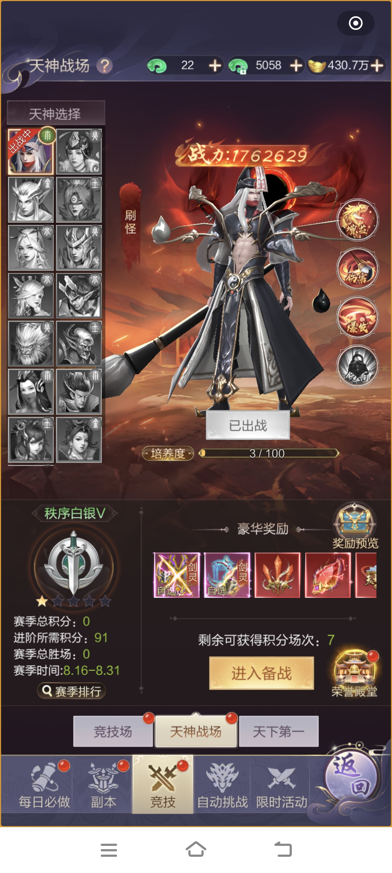 天神PK为3v3团战玩法,玩家需先挑选培养的天神出战,输出、防御、治疗类天神的阵容搭配是取胜关键。战场核心为占领灵碑,通过持续掌控灵碑积累积分,先达1000分或时间结束时积分更高的一方获胜。 + 战斗中可激活天神神通与技能连携,打出高额伤害或控制效果。每场结束后根据表现调整段位,赛季末依排名发放丰厚奖励,满级天神与合理战术是登顶关键。