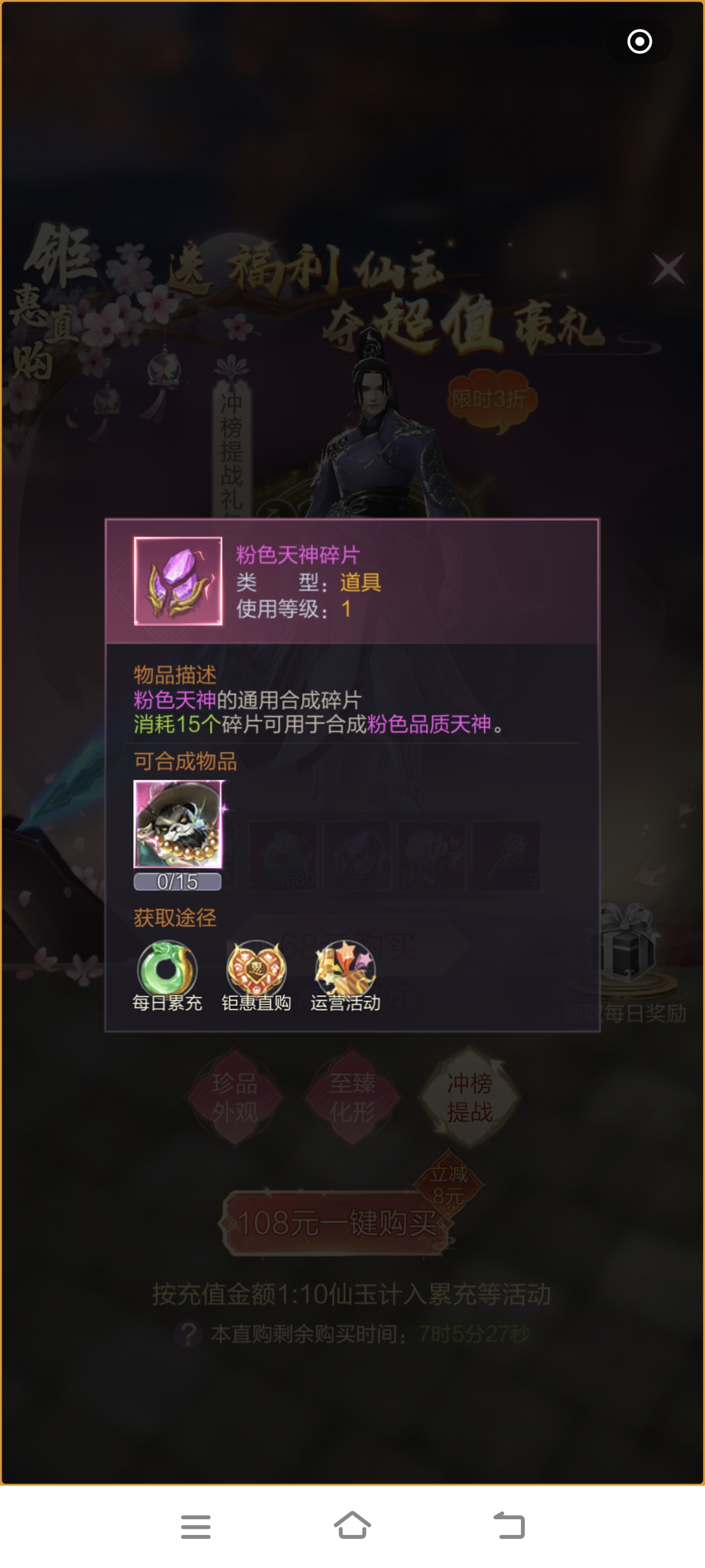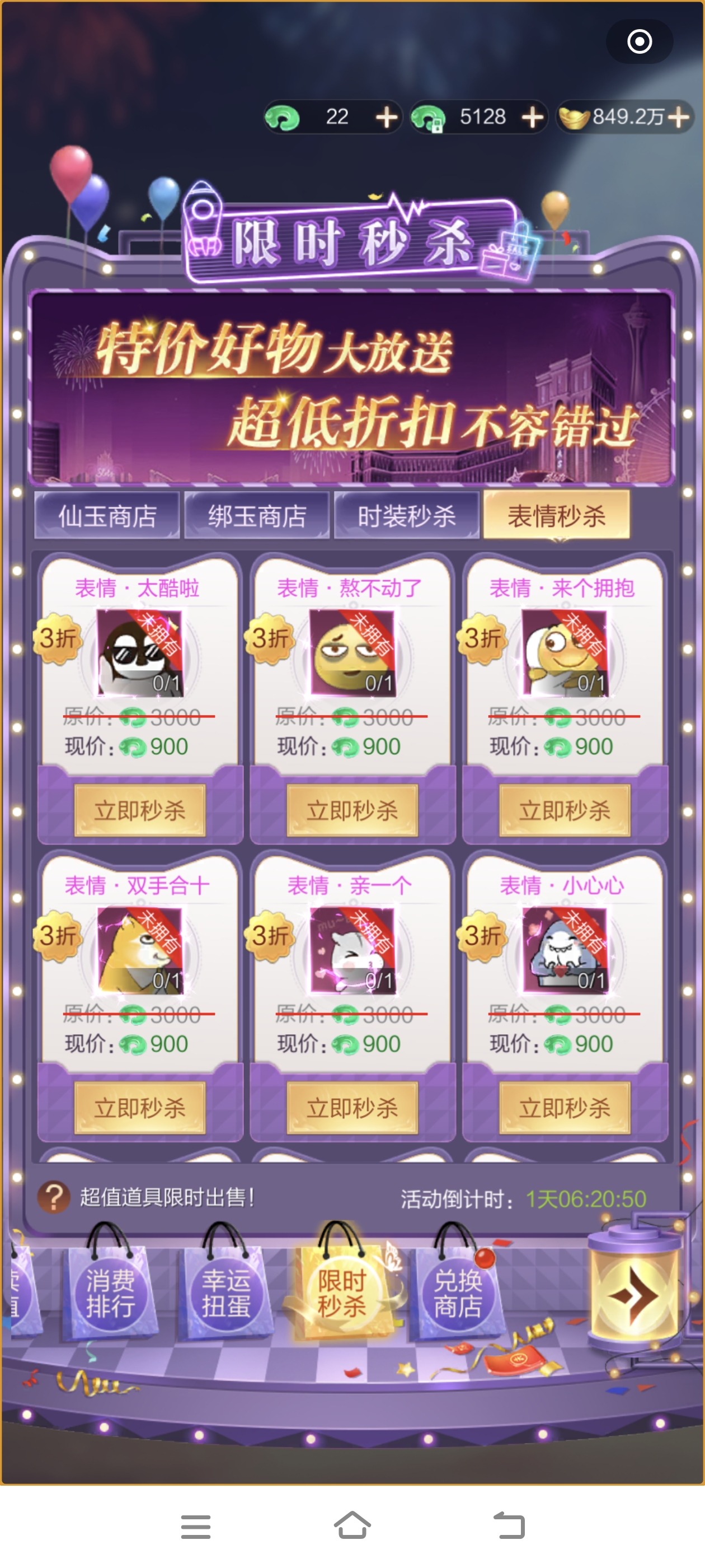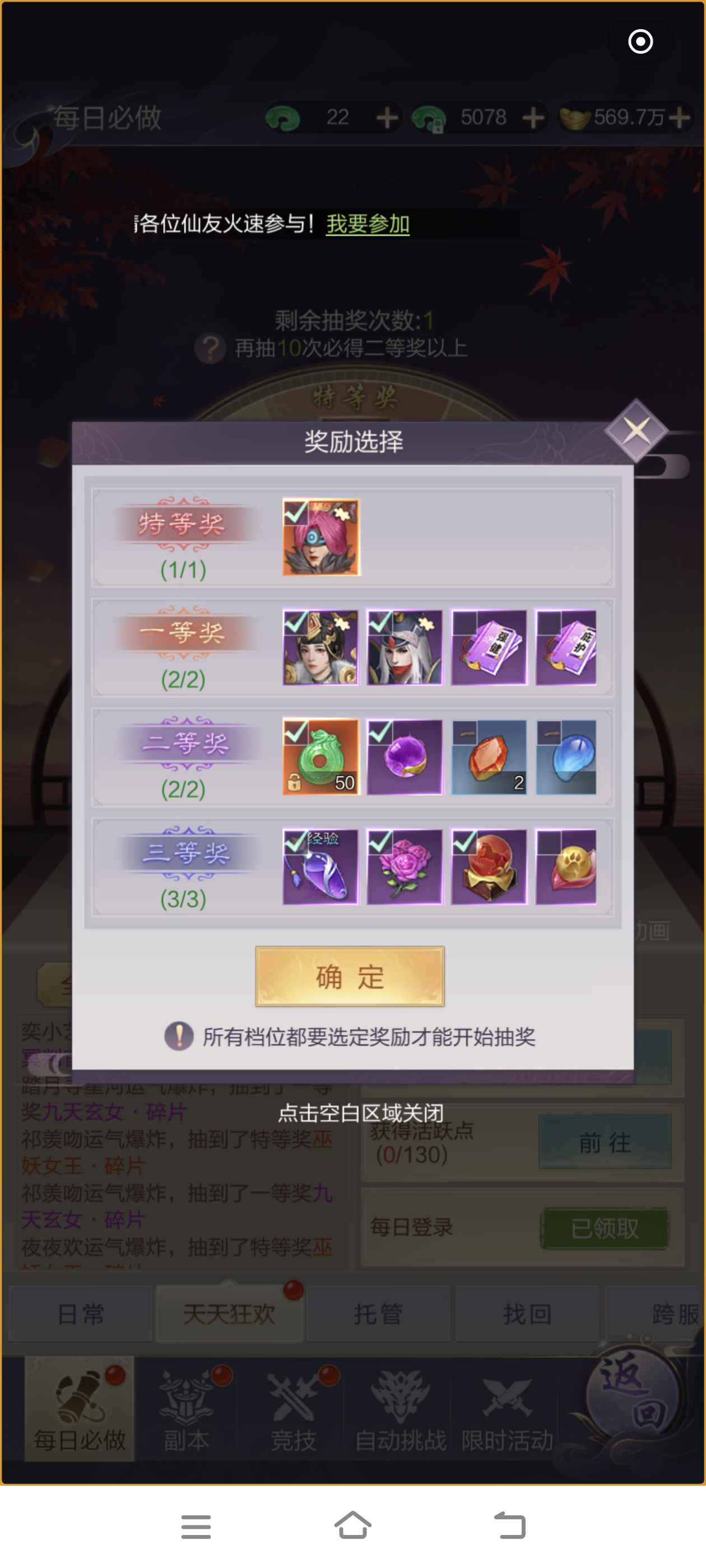 全民夺宝活动开启仙途狂欢,玩家消耗指定道具即可购买宝物份额,争夺珍稀奖励。奖池涵盖高阶装备材料、稀有坐骑碎片等重磅好物,更有幻彩级道具暗藏其中。 + 当宝物份额满额便进入开奖倒计时,系统随机抽取幸运者发放大奖,未中奖者也能获对应参与奖励。每日固定时段还会对未填满份额的宝物补全开奖,神秘人兜底让获奖机会不落空,全民皆可参与这场寻宝盛宴。