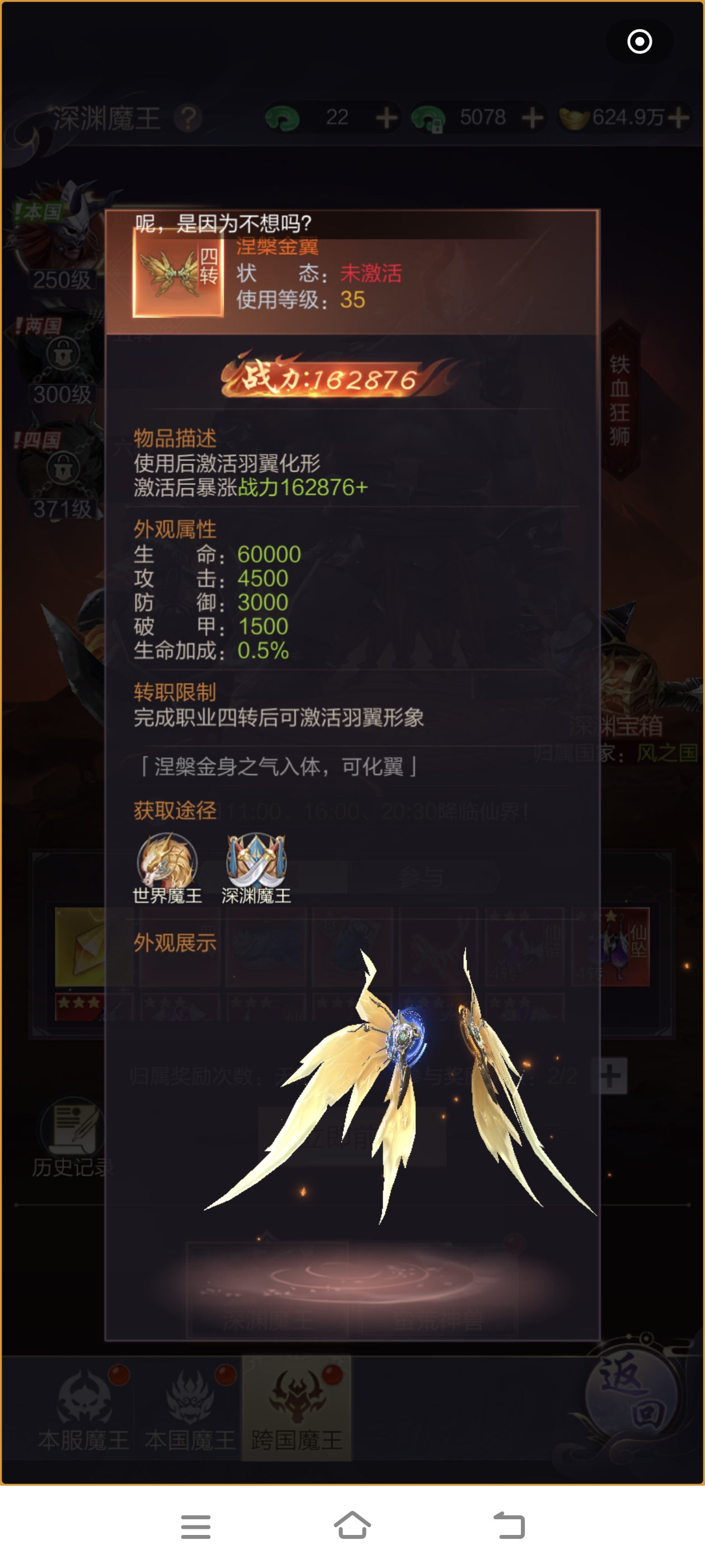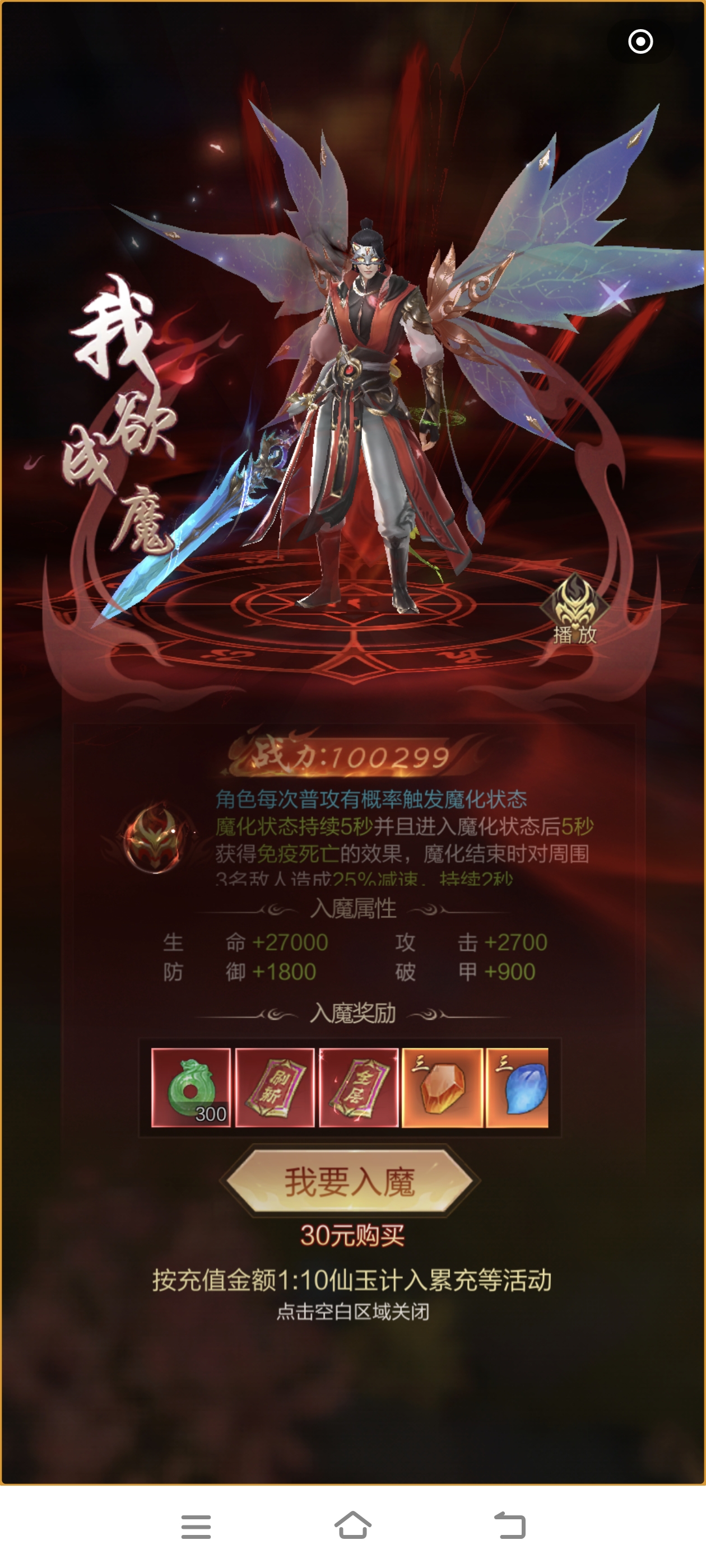入魔是游戏核心战力突破玩法,分天神入魔与职业入魔两大方向。天神入魔需先激活天神并解锁其神器,完成专属任务后可解锁入魔技能,获得变身增伤、五行伤害加成,升星后加成还会叠加,战力提升显著。 + 部分职业如地藏可解锁隐藏入魔形态,完成“大圣归来”等特殊任务后,能切换佛、魔双形态,魔形态下有大威天龙等强力神技。玩家可通过击败怪物积累魔意值,分配后强化心魔效果,进一步放大属性与技能优势,是高阶战力提升的关键路径。
