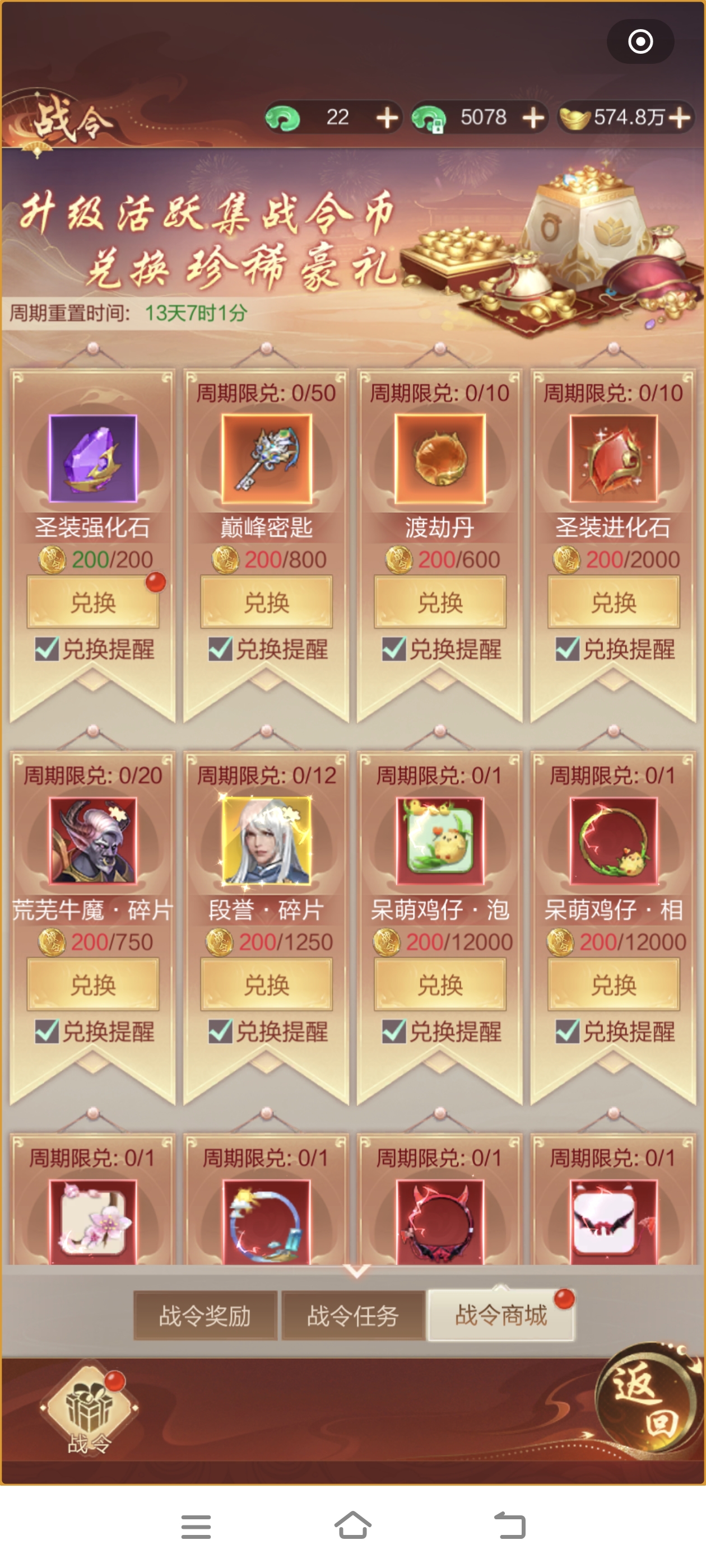 战令币兑换是战令系统的核心福利出口,币值需通过完成日常任务、副本挑战提升战令等级获取,追求效率的玩家也可直接购买等级加速积累。 + 兑换入口设在专属战令商店,核心价值在于“跨期复用”——当期用不完的战令币可留存兑换过往轮次的主题套装,如牛魔王、地精、武魂兔子等外观与属性兼具的奖励。此外,商店还提供武魂碎片、侠客碎片、巅峰密钥等养成道具,是兼顾战力与外观提升的关键渠道。