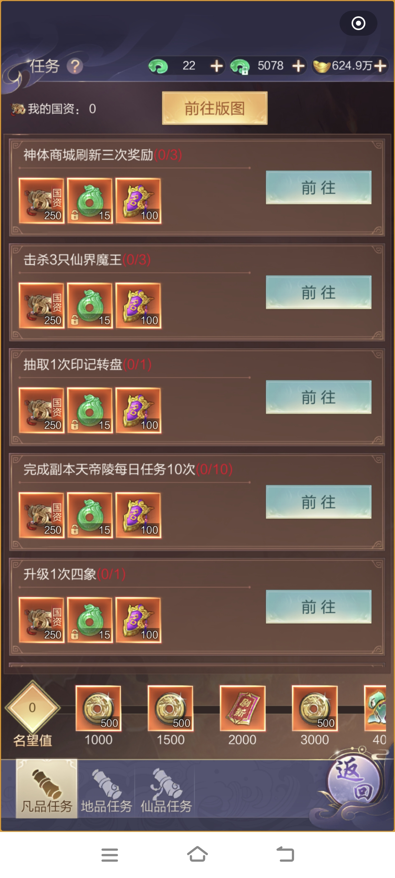 版图凡品任务是贴合版图玩法的基础日常,是低阶玩家积累资源的核心途径。任务多围绕版图核心玩法设计,比如完成指定次数的世界魔王挑战,或是参与城池攻防相关的基础操作。 任务难度不高,完成后可领取国家物资、经验等实用奖励,国家物资还能用于挑战城池老板兑换积分。作为版图玩法的入门引导,凡品任务既能帮助玩家熟悉版图规则,也为后续解锁高阶任务与玩法打下基础,是修仙初期的必做内容。