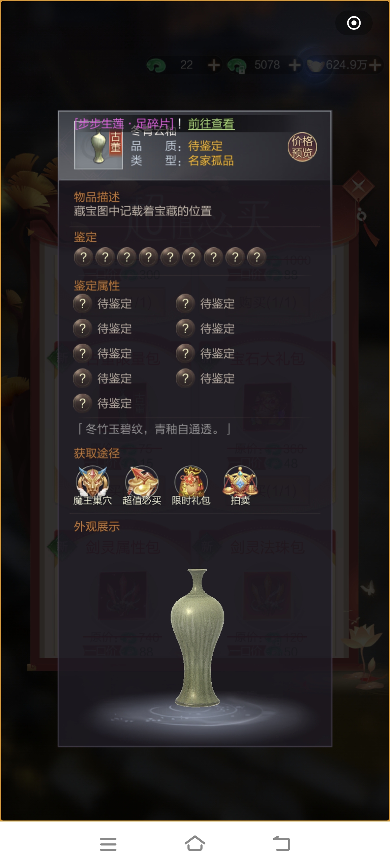 檀木礼盒启封自带温润包浆,「山林童戏」等珍品古董静卧其中,釉色流转间藏着江湖往事。更附赠10次免费鉴定机会与足量普通宝石,助你精准识别印章等涨价标识,轻松规避赝品陷阱。 鉴定后上架展览,可激活攻击、防御等属性加成,品质越高战力增幅越惊人。搭配宝藏钥匙等道具,无论是解锁隐藏剧情还是交易获利,都能让你在仙途之路更添优势。