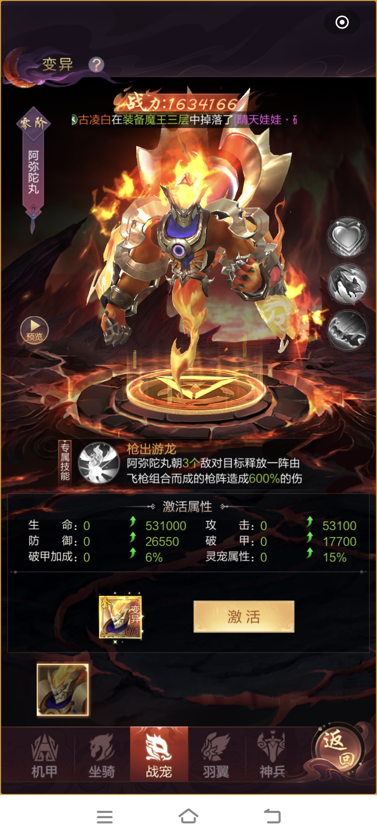 《心剑奇缘》的变异灵宠是仙途至强助力,由普通灵宠经涤尘甘露洗髓变异而生,概率极低却价值千金。其外观自带流光特效,或覆七彩鳞甲,或燃幽冥鬼火,辨识度拉满。 资质远超普通灵宠,生命、攻防等属性全面飙升,更额外解锁1个随机强力技能——如干将莫邪的“万剑归宗”、死神的“安魂吟唱”,伤害与控场兼备。 + 装配后战力暴涨,无论是单刷画妖秘境,还是组队挑战魍兽入侵,都能成为扭转战局的关键,堪称跨服竞技的必胜底牌。