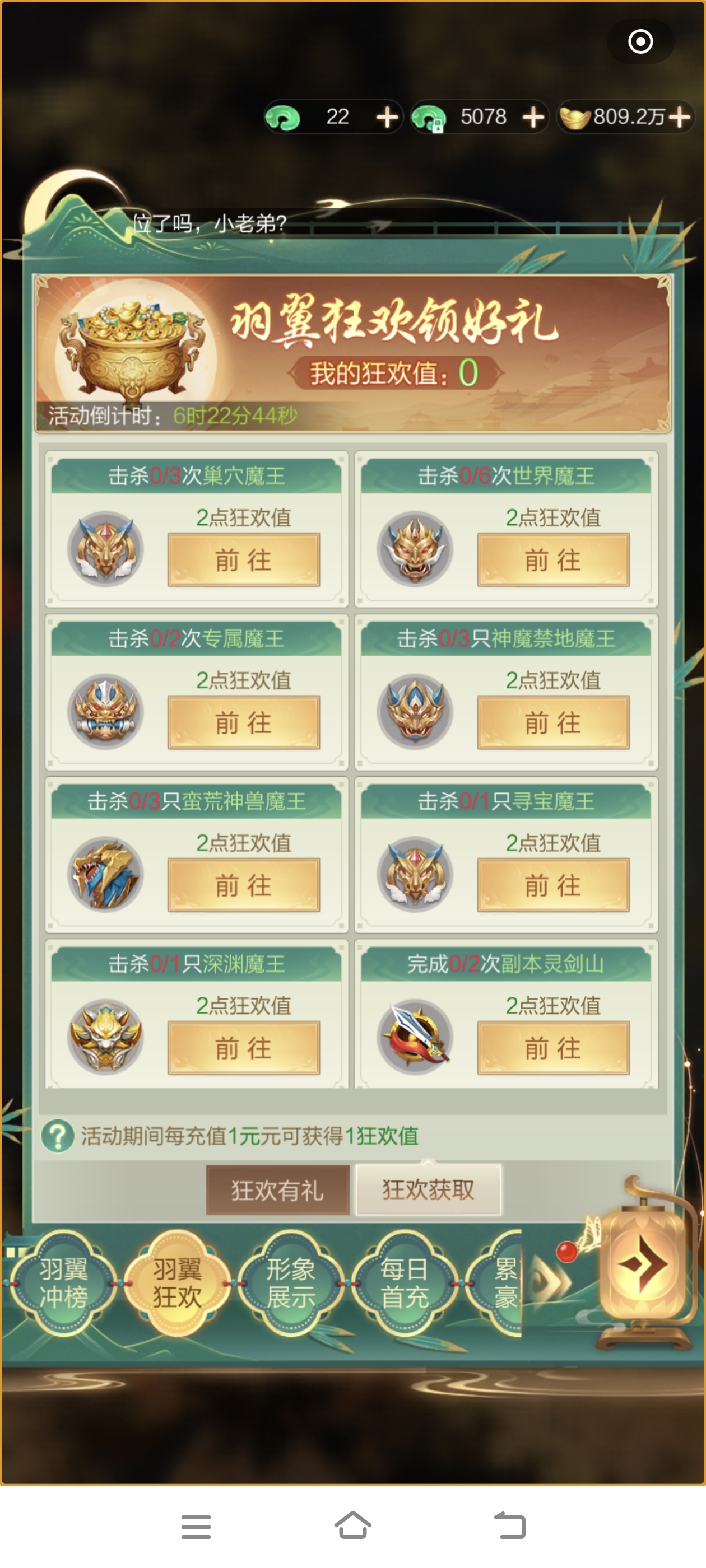 羽翼狂欢是限时福利盛宴,活动期间完成指定任务即可解锁丰厚奖励。每日登录可领羽翼精华丹,通关佛光圣境副本能额外获取进阶石与升星宝石,累计活跃度还能兑换白银宝箱。 + 消耗翎羽进阶羽翼,每提升一阶都能领取阶段礼包,内含强化石与绑定元宝。进阶至指定等级,更有「珍品仙翼宝箱」可开,有机会解锁限定羽翼幻化形象,激活后叠加属性战力,助力玩家快速提升实力,轻松闯荡仙侠世界。