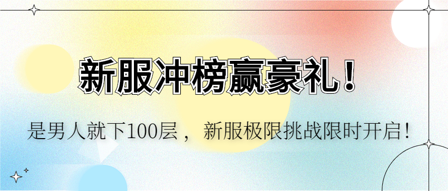 是男人就下100层 ,新服极限挑战限时开启!在神迹大陆之上,玩家等级到达满级可不是游戏的终极目标,提升实力突破关卡才是《魔神战纪2》的魅力所在。“战力竞速赛”极限挑战-冰雪长廊惊艳亮相,尽情提升实力挑战你的关卡吧!【活动时间】4月27日-5月3日【活动区服】区服:荣耀567区【开服时间】开服时间:4月27号 00:10【活动内容】1、在活动期间内,荣耀567区用户根据战力情况排行;2、服务器于2023年5月3日23:59结算在活动期间战力榜排行;3、参与活动的玩家,战力需达到1000W且进入前三名才可获得奖励。【排名奖励】1、战力榜一奖励:华为p60art 512GB(价值9000元)、服务器冠名、拉斐尔之翼*12、战力榜二奖励:拉斐尔之翼*13、战力榜三奖励:加百列之翼*1【冠名区服说明】1、服务器冠名即为区服命名,不可带色情暴力,谩骂,诋毁,攻击内容。为了维护游戏健康生态,有权根据具体情况,对内容进行修改或驳回。2、玩家自服务器命名当日起,满30天后,如没有其他玩家满足命名条件,服务器仍继续保留玩家指定名称。3、如果有其他玩家在已命名服务器达标充值奖励命名条件,可获得该玩家满30天后的服务器冠名权,重新冠名。