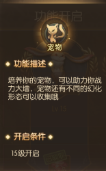 宠物系统是很重要培养点,是提高战力的重要手段之一。大伙达到达到15级就可以获取到自己的初始宠物。前期宠物吞噬提供装备回收途径,解决大家对于不需要的装备,而且吞噬大量装备能提高宠物的属性,提供大量战力。获取新的宠物化形也可以给玩家提供很多战力,而且获取重复的化形也可以重复升星,获取更多战力,而且每个化形进行提升还能获取更多属性;每个化形拥有自己的属性、可以释放普攻。一些特殊的宠物化形还可以激活套装属性,激活的套装属性越多,提升的战力越高。那么怎样获取宠物化形呢?开服前七天可以在福利商店获取剑客阿宝和泰瑞尔;开服第二天晚上7点有全服秒杀可以获取机器人。还有更多活动可以获取更多珍稀化形,要多多关注哦。