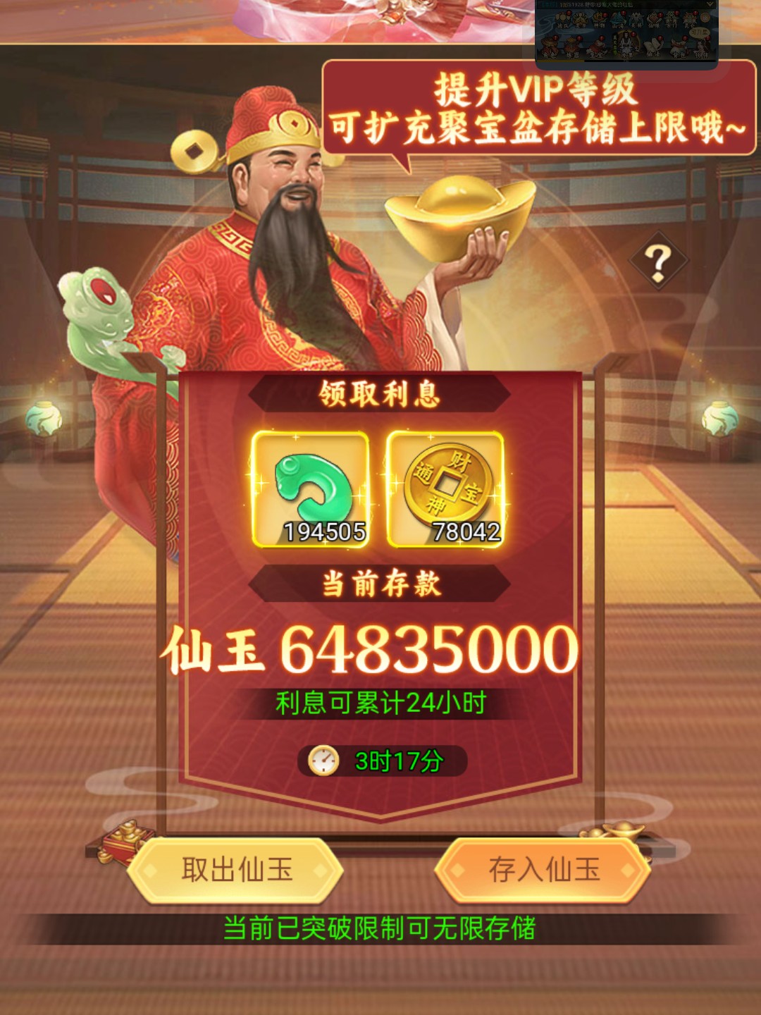 一、开启条件1100级(仙人一转地仙)进入仙域,前面帖子介绍经验获得,就是为了比其他仙友等级升得快,这样能赶早一步获得UTR提升战力。 二、仙域概况: 1.分九幽深狱、天陨火境、酆都鬼城、水云之涧、星宿雷海、天域圣殿、荒古神域几个区域。 三、通关获得UTR: 1.九幽深狱,通关获得阴伙伴UTR魔.烛阴(12亿战力通关,这个伙伴5000万战力); 2.天陨火境,通关获得UTR仙宝黄龙之心; 3.酆都鬼域,通关获得UTR仙宝青龙之心; 4.水云之涧,通关获得UTR仙宝七彩神石; 5.星宿雷海,通关获得UTE仙宝仙帝玉玺; 三、荒古神迹: 1.打装备的地方,分遗迹外围、遗迹一层、遗迹二次、遗迹三层,达到仙人不同的等级可以解锁相应的层数获得装备,装备用在荒古吉光,激活后可以附体。 四、仙殿圣域: 1.抽令的地方(仙域圣殿令): 2.共有五层每有仙宝、子女、伙伴,规则看图哈。 3.每层奖励UTR不同,第二次UTR为阳神女娲第一个阳神(目前我也没拿到😂)。 3.充值福利以单日充值计算。 4.抽奖次数奖励,三天为一个周期,三天内抽奖次数累计。共3000次氪金的小伙伴可以考虑入手,白嫖党微氪可以抽100-600抽这样,买点礼包也挺OK。 5.个人建议: 1.抽奖该怎么抽,我建议最好是100次抽一回,等仙域宝藏更新后最上面三个显示用玉可以买。那么你就可以抽,这样可以多出来很多令牌,这个令牌是可以存,可以放心存不过期。 2.仙域宝藏每天都参与了累充活动,所以无论是微氪还是大佬,别忘记领累充奖励。 最后小伙伴们早日拿到UTR😂,有写的不对的地方谅解哈😊