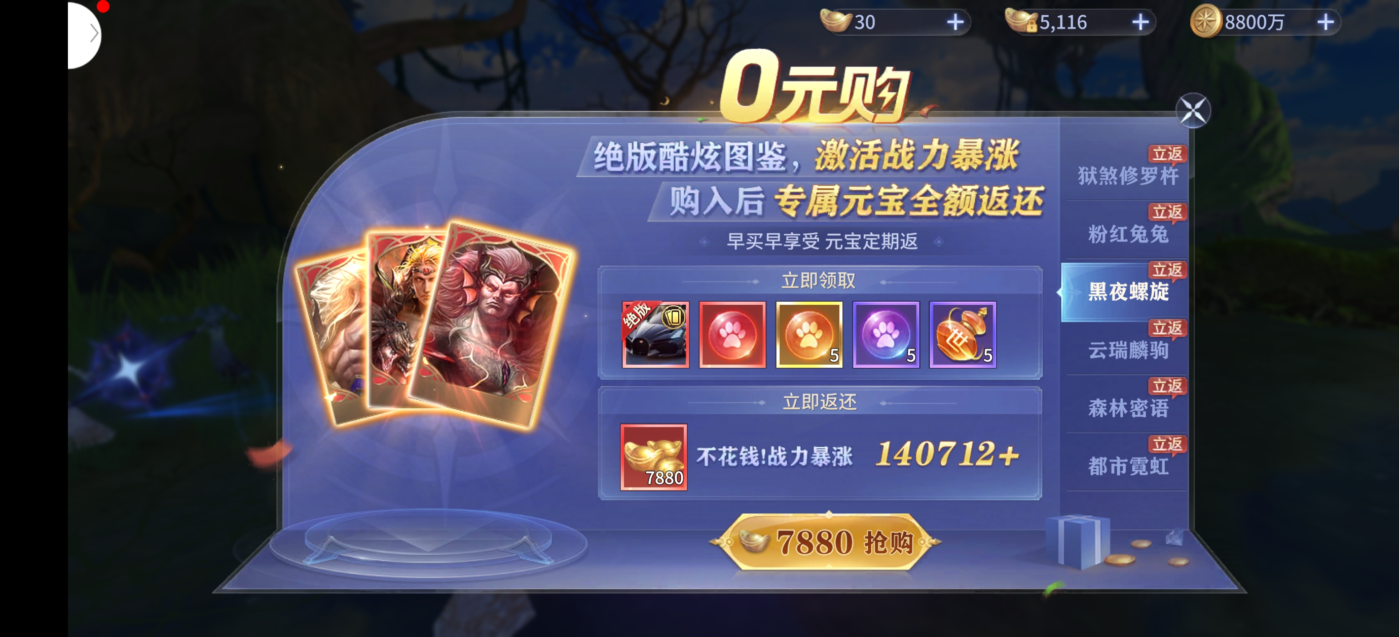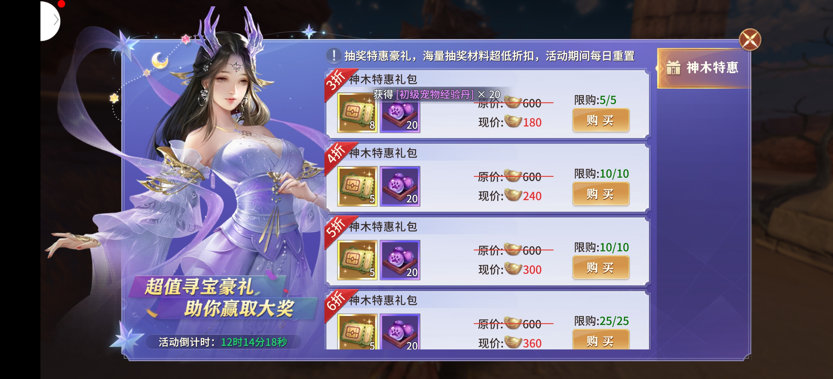 首先映入眼帘的就是超值好礼,充值68送的粉色的玄黄兽经,宠物前中,后排天赋空位全部习得高级天赋后,可消耗玄黄兽经随机将一个前,中,后排高级天赋提升至神级天赋