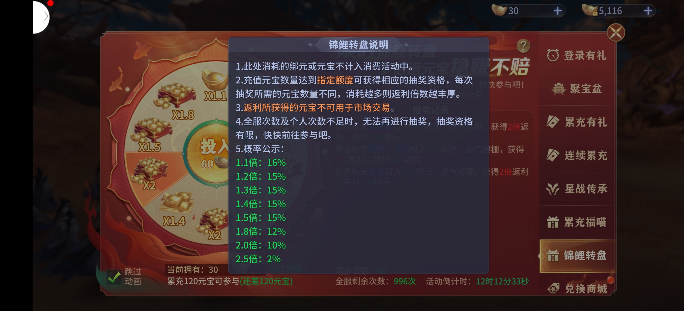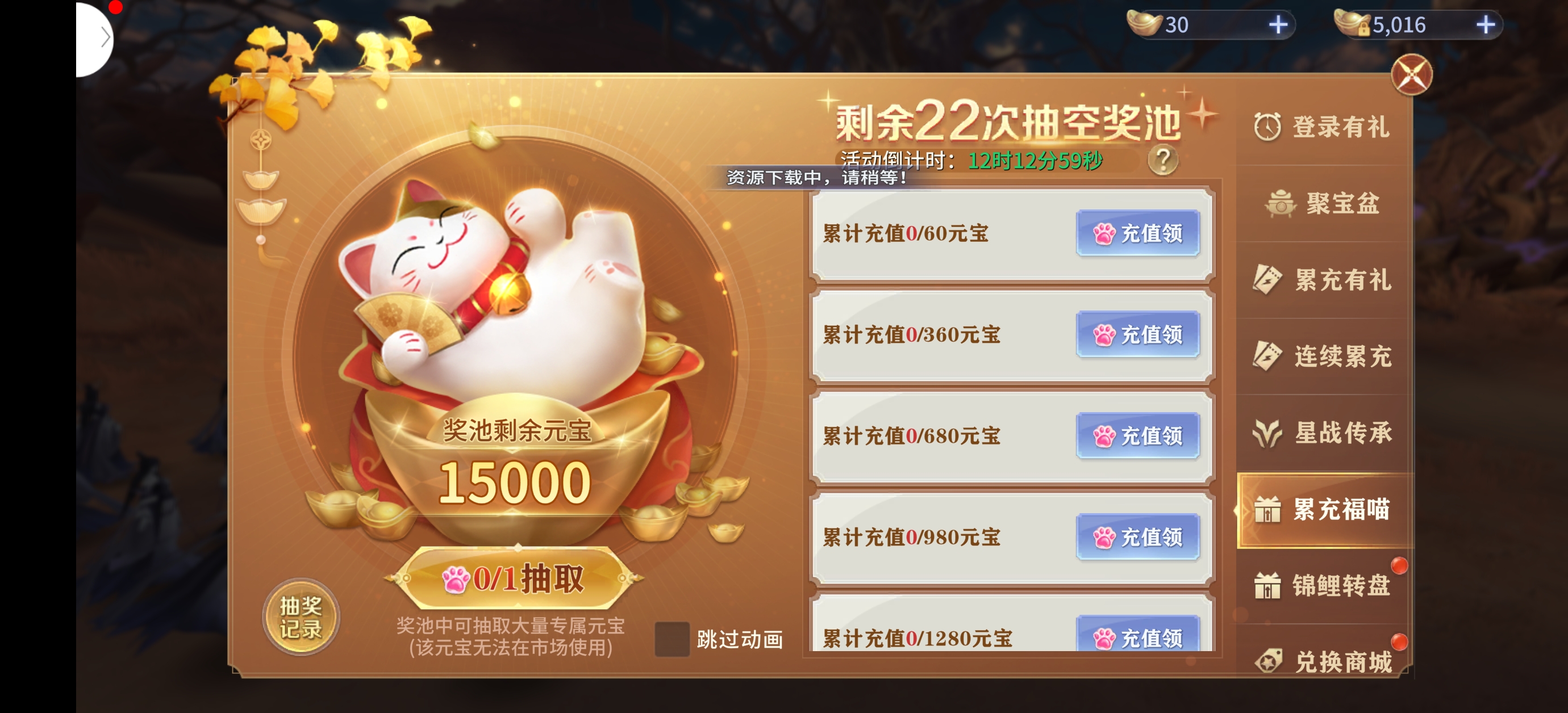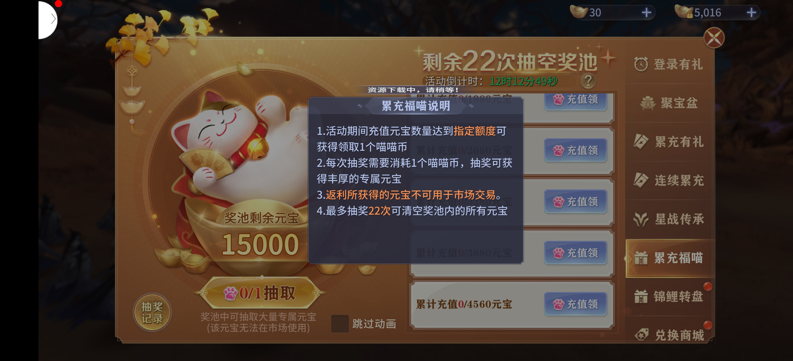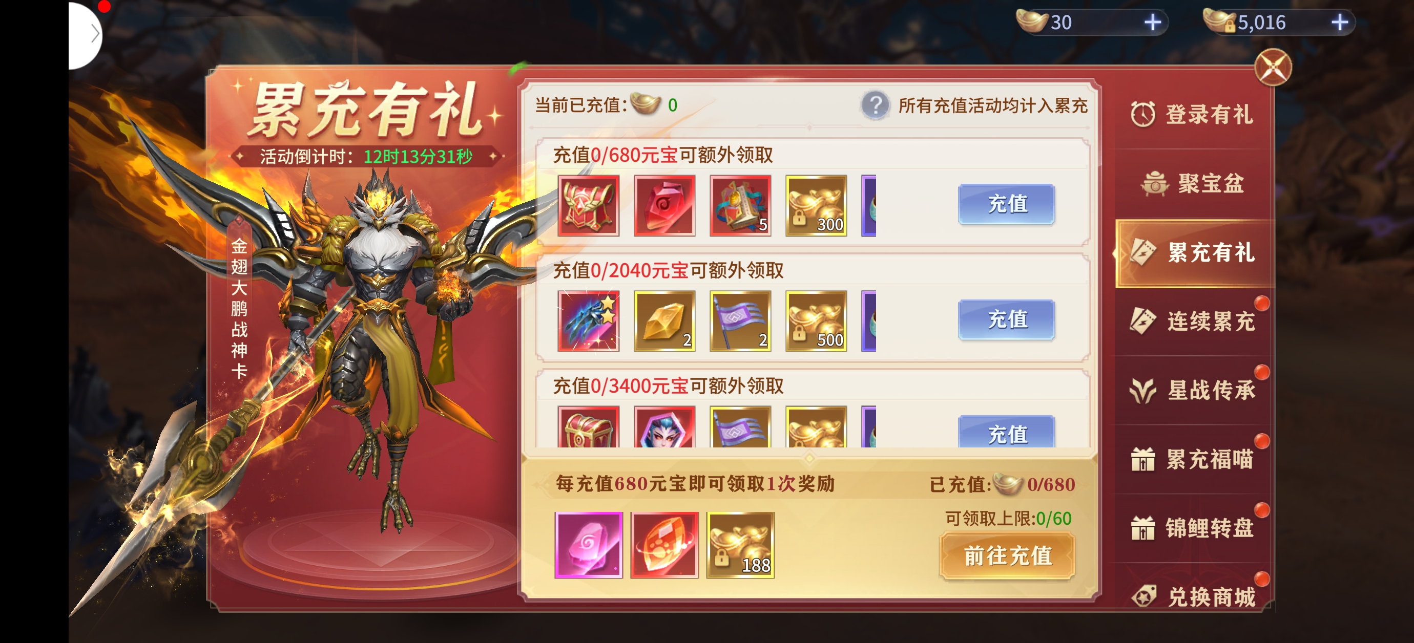 每日充值达到一定额度后可领取对应累冲档位的奖励,你充额度每天0点重置,奖励档位也每天充值,另外和充值有礼,充值豪礼活动叠加
