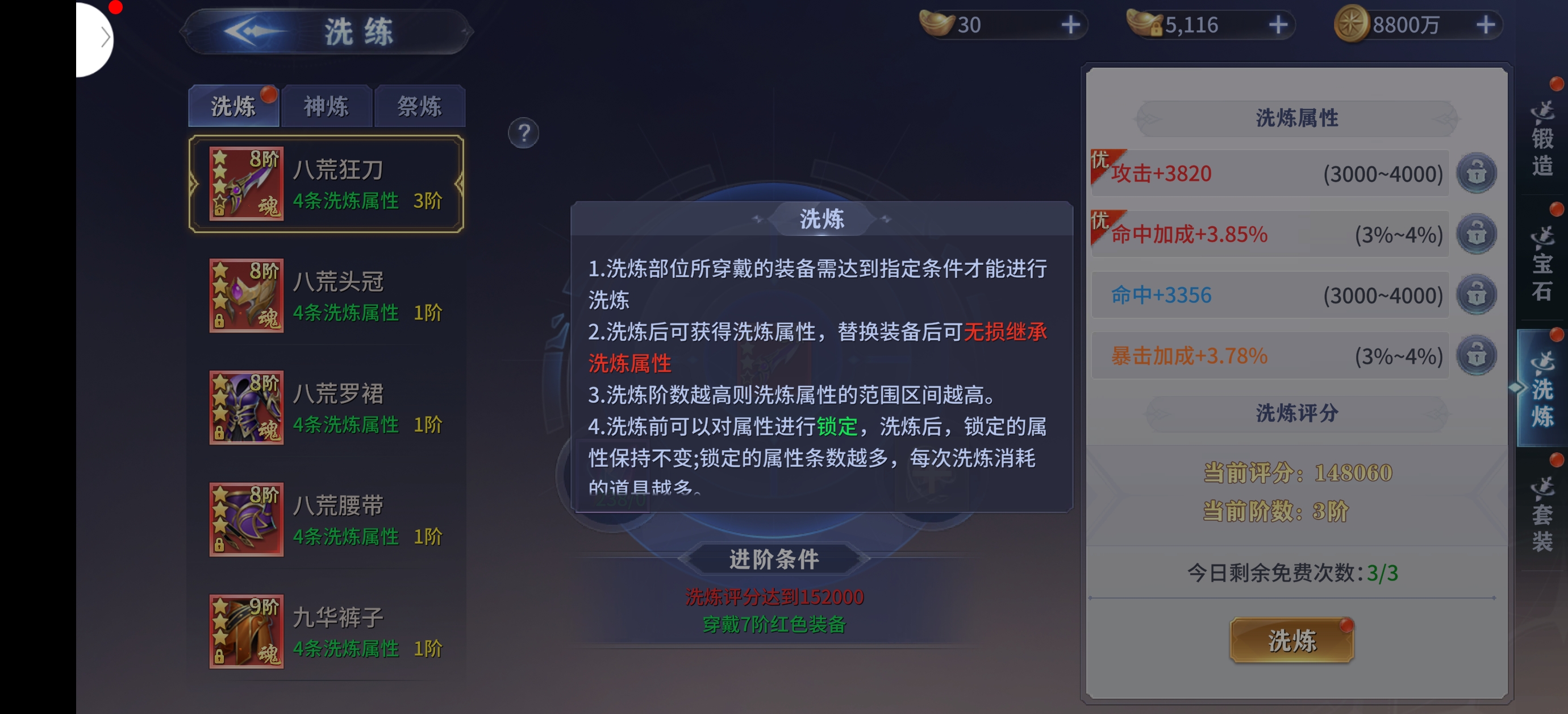 为什么我非要打八转的装备?因为这是转职的必要条件,只有穿四件八转三星的装备才可以继续完成下面的任务,如果没有四件八转三星装备就只能卡在这个地方升不了等级,也转不了职,不过皇天不负有心人,终于给我打够了