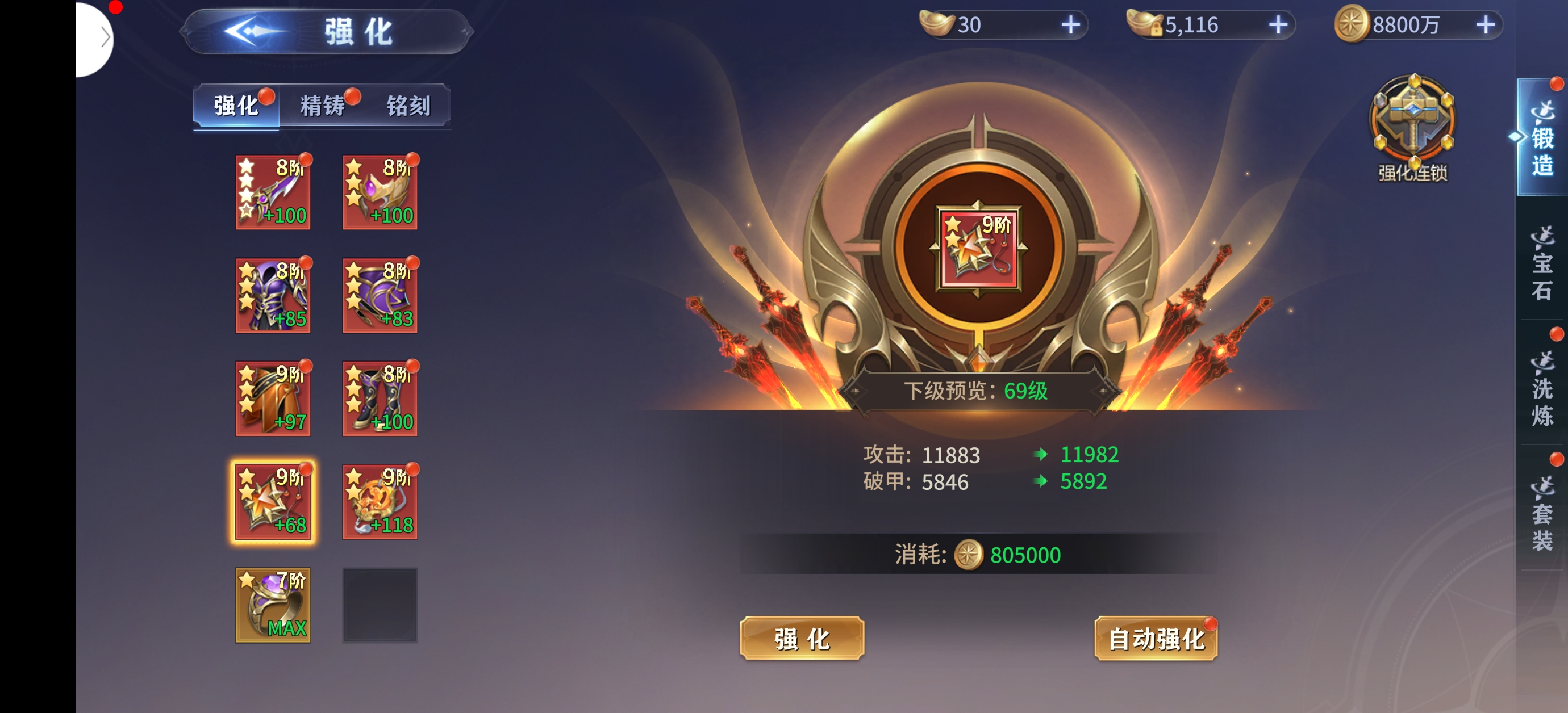 很久之前我就缺八阶装备,现在还是缺八阶装备,战盟仓库里面多余出来的装备都是十转,十一转,别人的战力以亿起步,咱以千起步😌😌