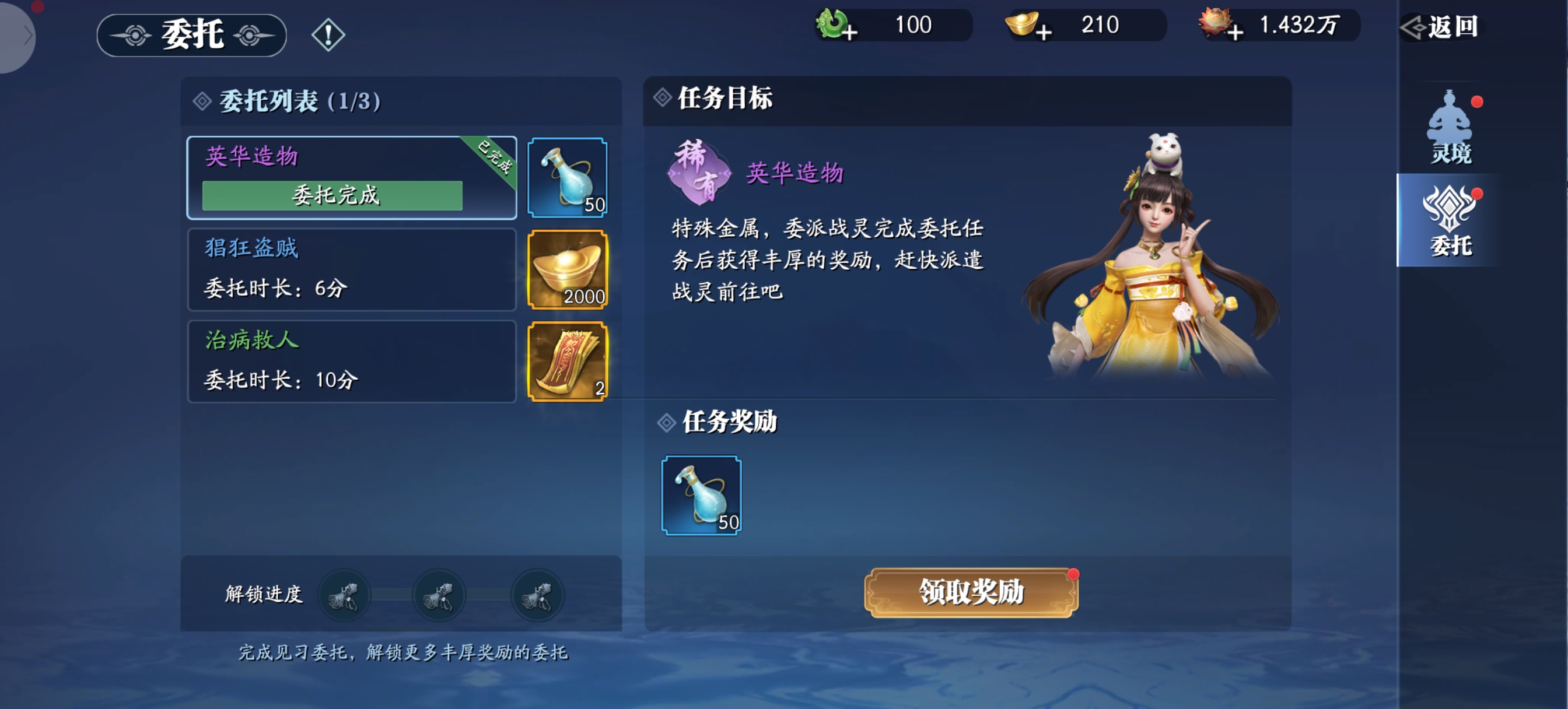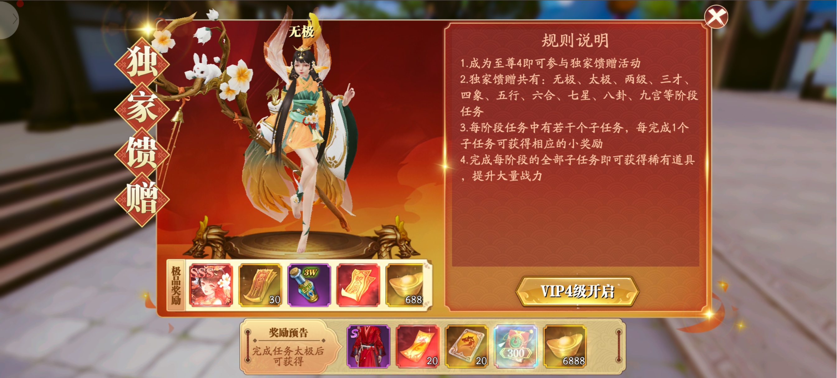 开局就送直充卡,升到10级开启邮件,一键领取,背包里使用,然后就是漫长的主线任务,升到60级,点开右上角福利找许愿树,用仙玉只接升到100级以上。试玩任务也就完成了。