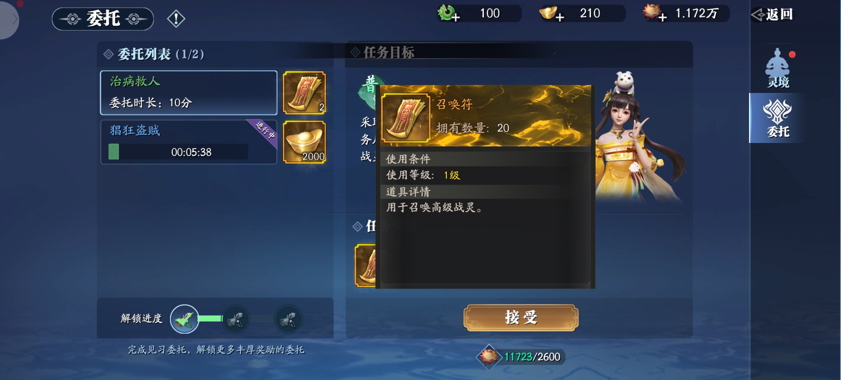 战灵召唤【普通召唤】战灵召唤1)+战灵召唤:SS级战灵概率为3%,S级战灵概率为14%,A级及以下战灵概率为83%,首次十连抽取必获得SS级战灵2)+战灵保底:30次抽取保底SS级战灵(当前29抽没有获得SS级战灵时,+第30抽必会获得SS级战灵)【心愿召唤】1)战灵获取:SS级战灵概率为1.15%,S级战灵概率为10.83%,A级及以下战灵概率为23.05%2)SP级级战灵获取:+SP级级碎片或整卡获取概率为54.55%3)+战灵保底:100抽必得SP级级战灵(SP级碎片*50)4)+其他获取:初级技能书概率为6.44%,中级技能书概率为3.2%,高级技能书概率为0.78%