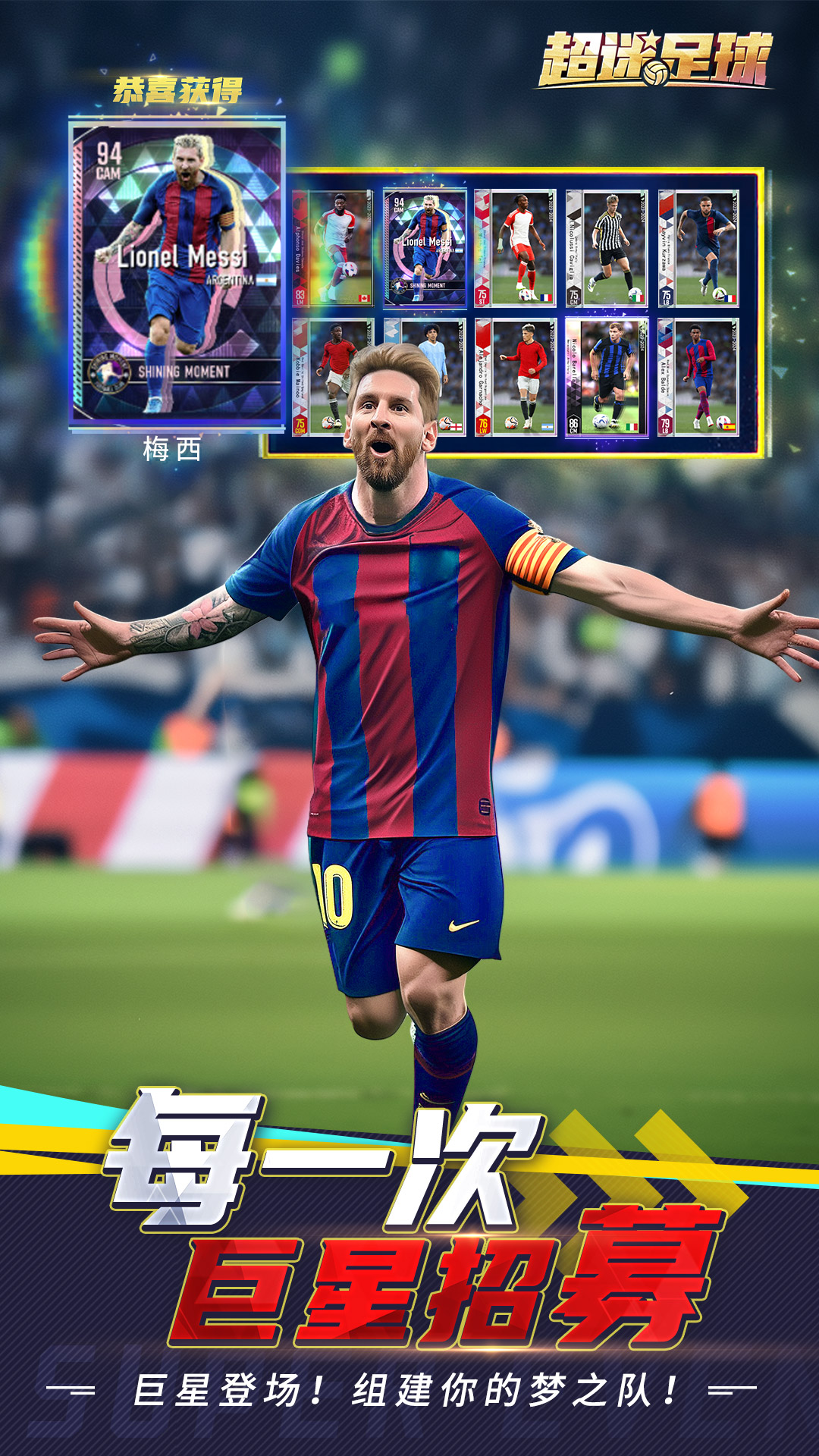 采用顶尖引擎渲染,球员面容、汗水、草皮细节极致还原!梅西、C罗、哈兰德等万千巨星任你招募,组建你的梦幻银河战舰!