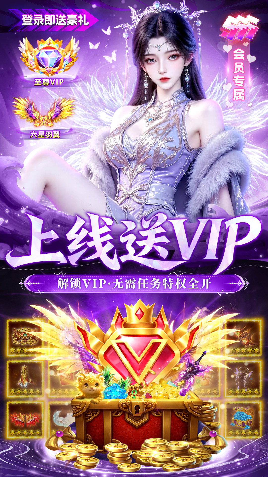 VIP特权上线直接领取! 游戏内各项VIP特权,从属性加成到专属玩法,全部解锁,真正实现“零氪享受顶级待遇”!