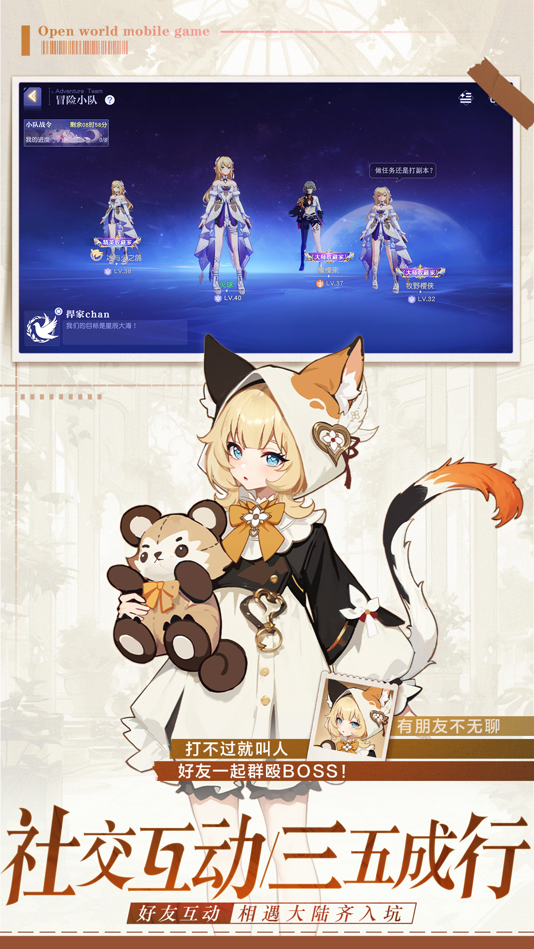 组建 8 人星旅团挑战副本,参与80人 GVG 城战争夺主城,交易行互通有无,更能借好友角色助力冒险。