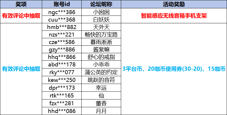 感谢咖友们的积极参与,让我们来看看是谁中奖了~恭喜以上获奖的咖友啦,社区奖励将在7个工作日内发放,获得实物奖励的咖友,请在2025年12月13日前联系客服登记领奖,逾期则无法登记,请及时联系。——分割
