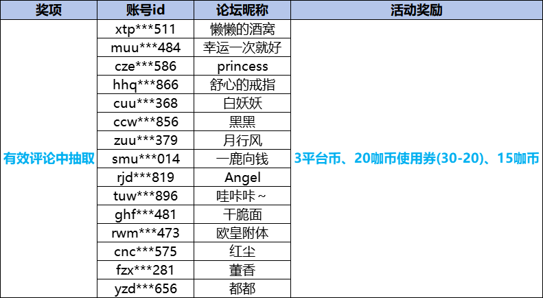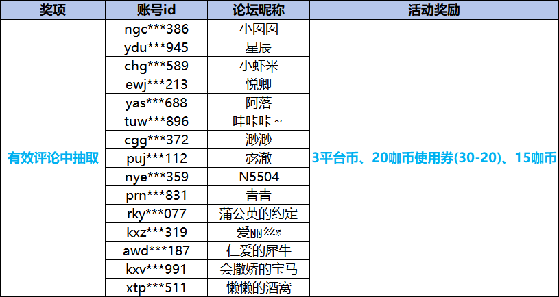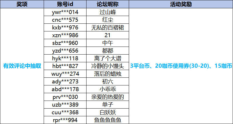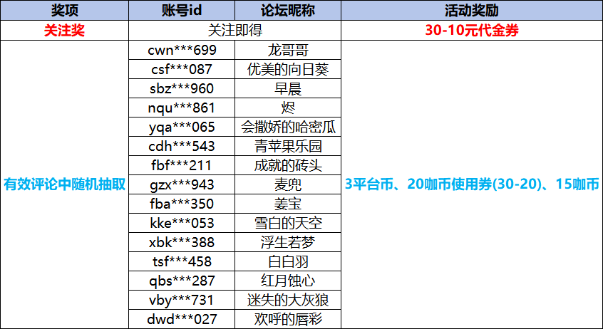 感谢咖友们的积极参与,让我们来看看是谁中奖了~恭喜以上获奖的咖友啦,社区奖励将在7个工作日内发放,获得实物奖励的咖友,请在2026年2月1日前联系客服登记领奖,逾期则无法登记,请及时联系。——分割线—